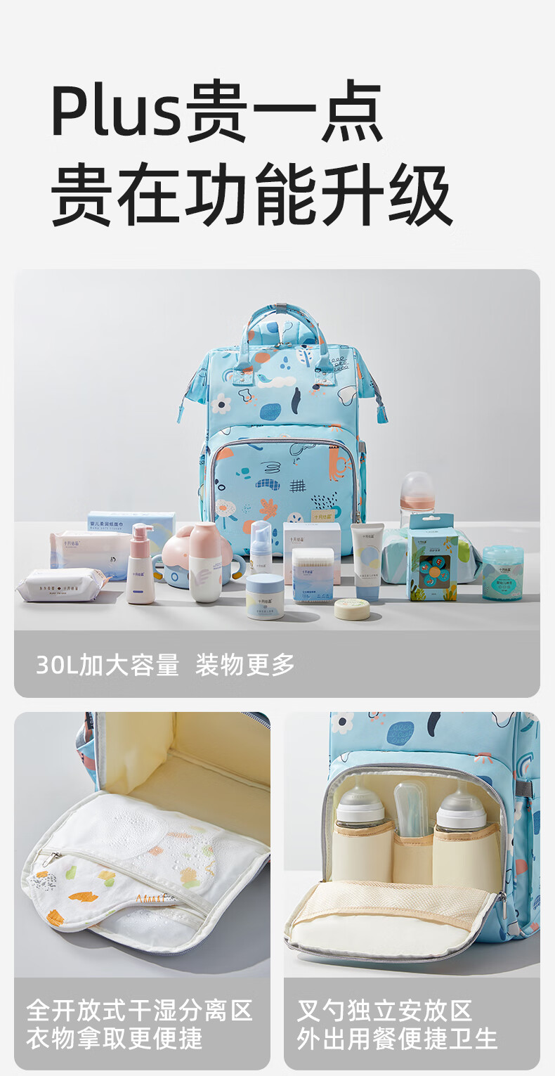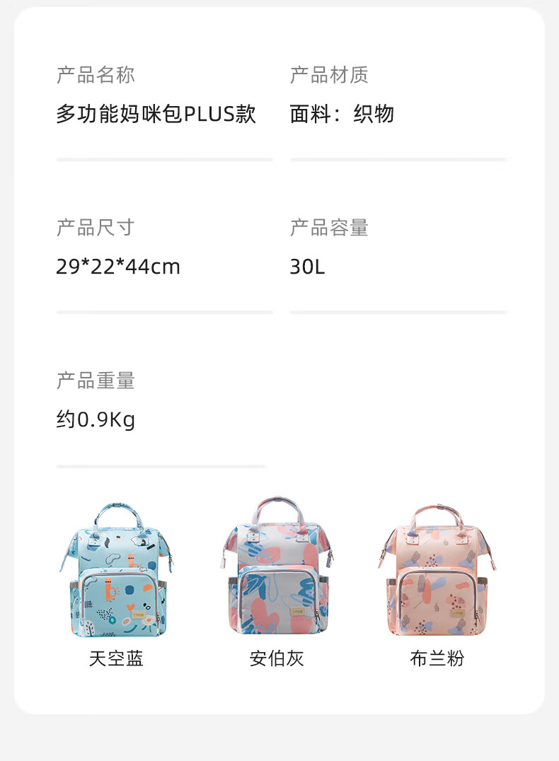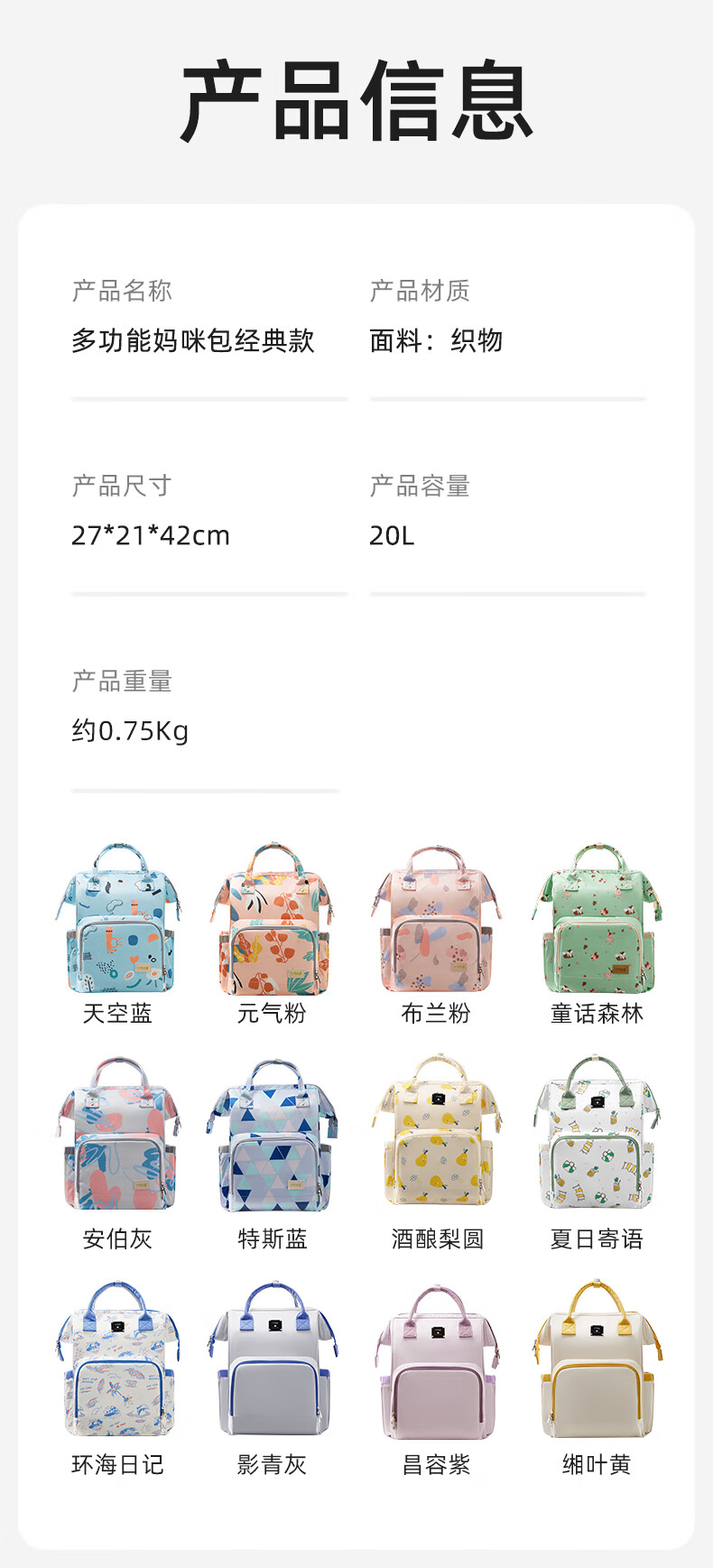 十月结晶妈咪包上班旅行双肩包多功能大容量母婴包时尚手提背包 酒酿梨园