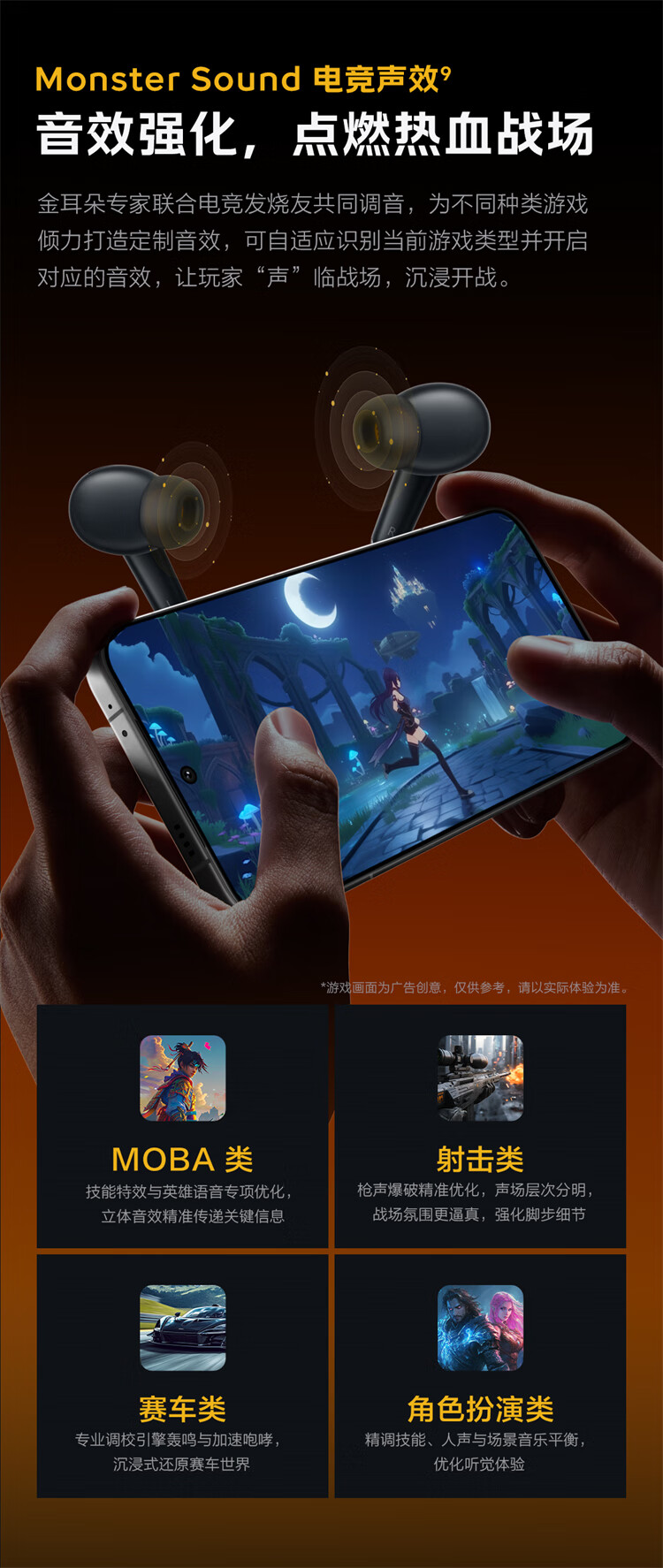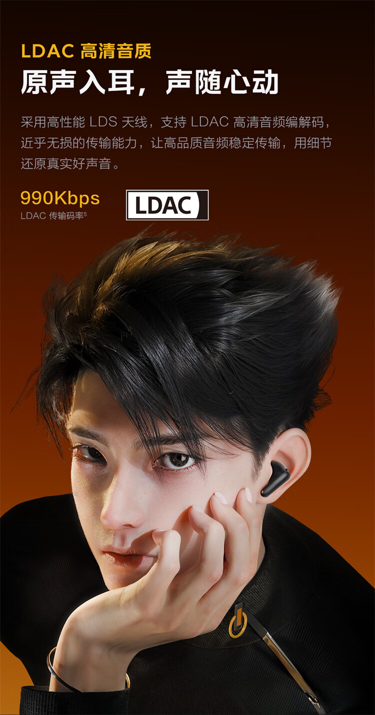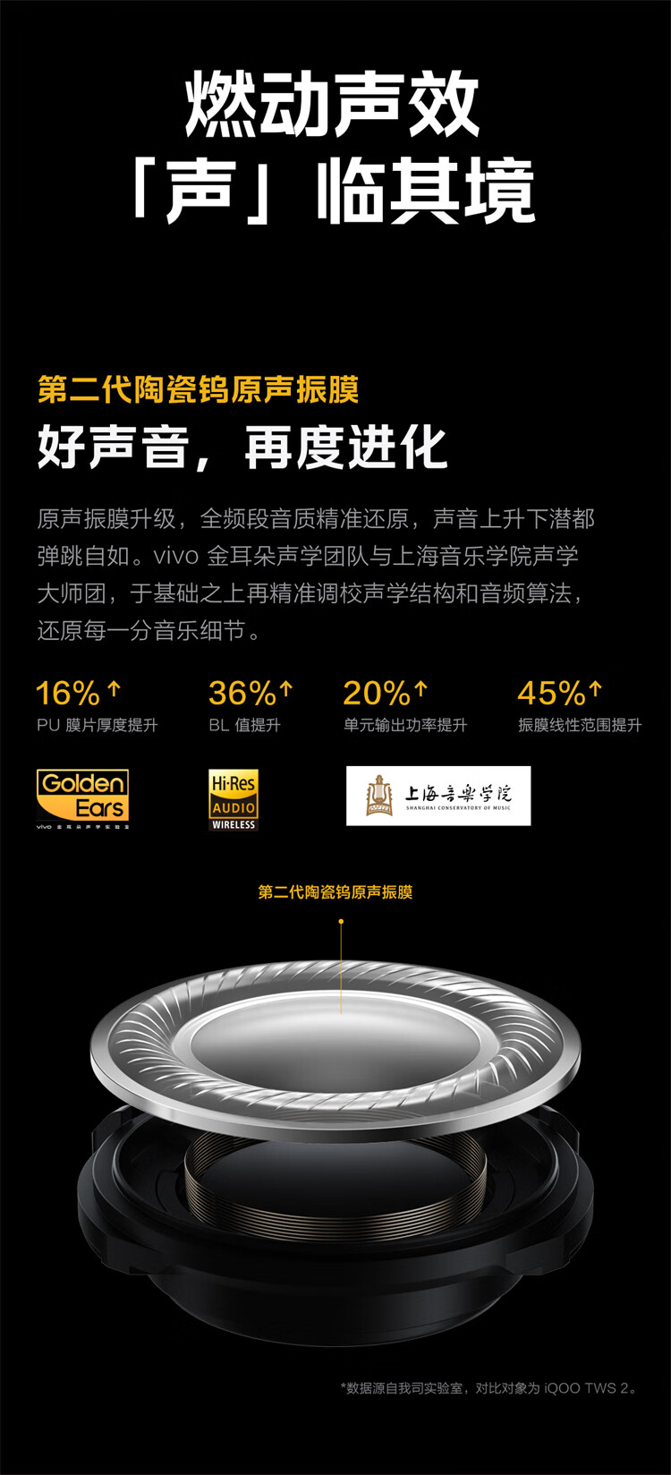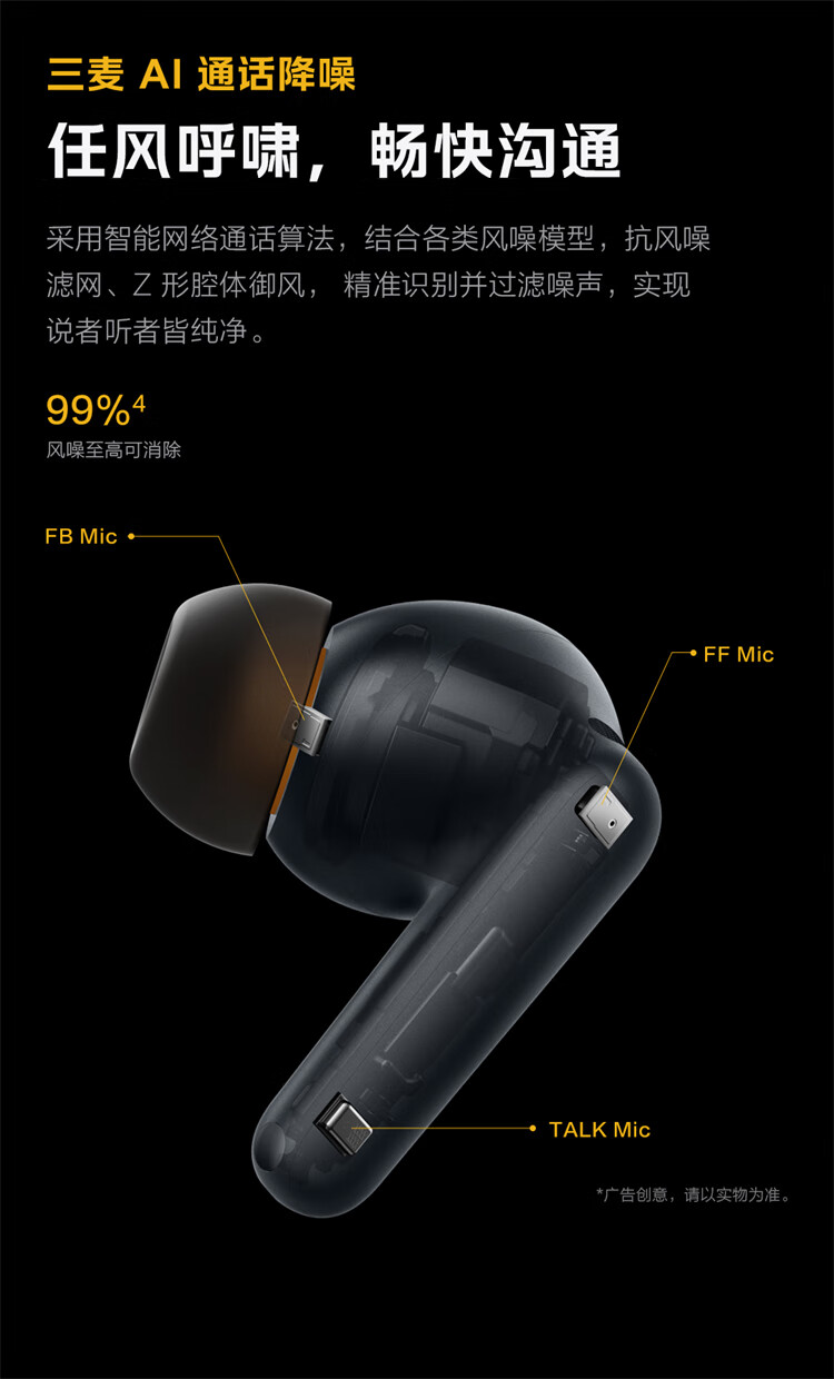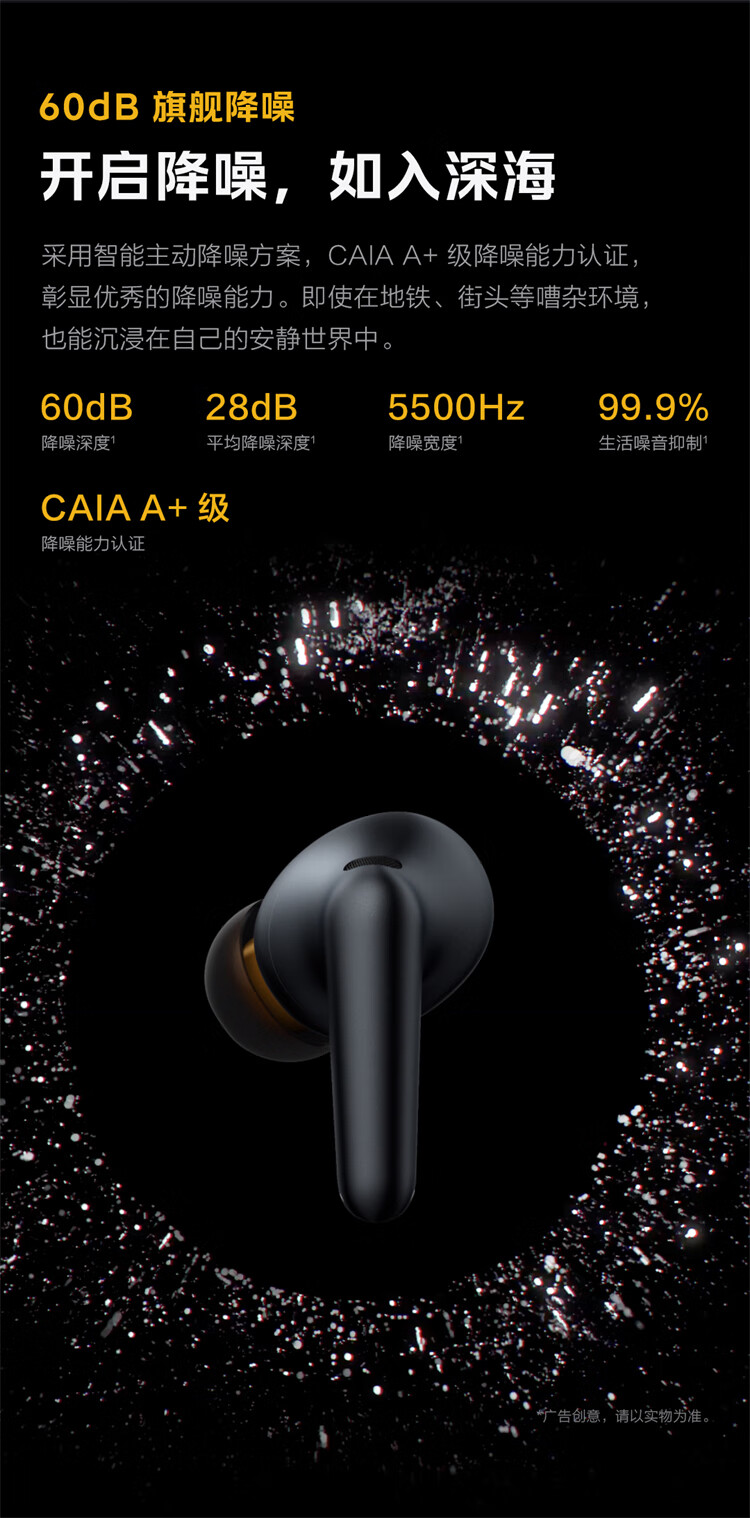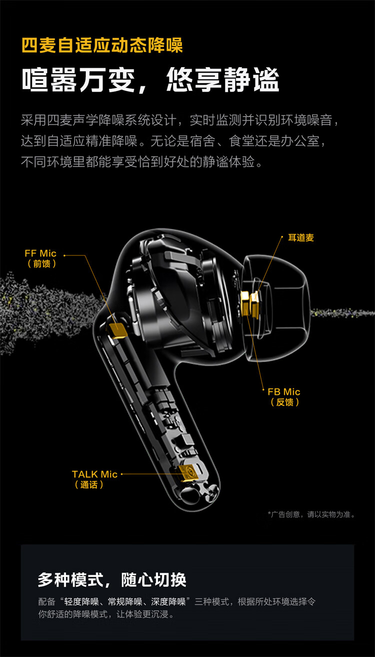 vivo iQOO TWS 5 竞速黄 国家补贴60dB旗舰降噪 42ms全链路游戏低延迟 Monster Sound电竞声效