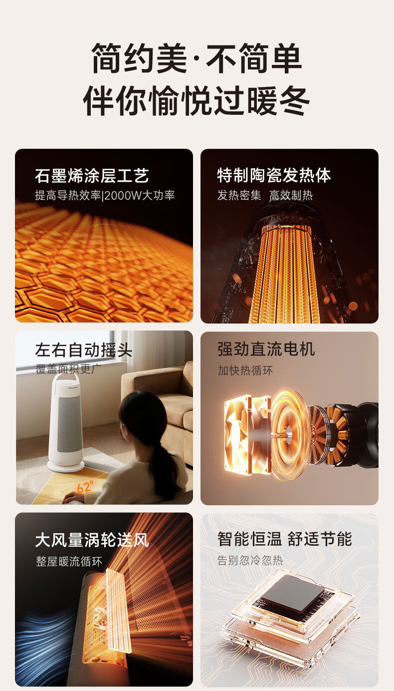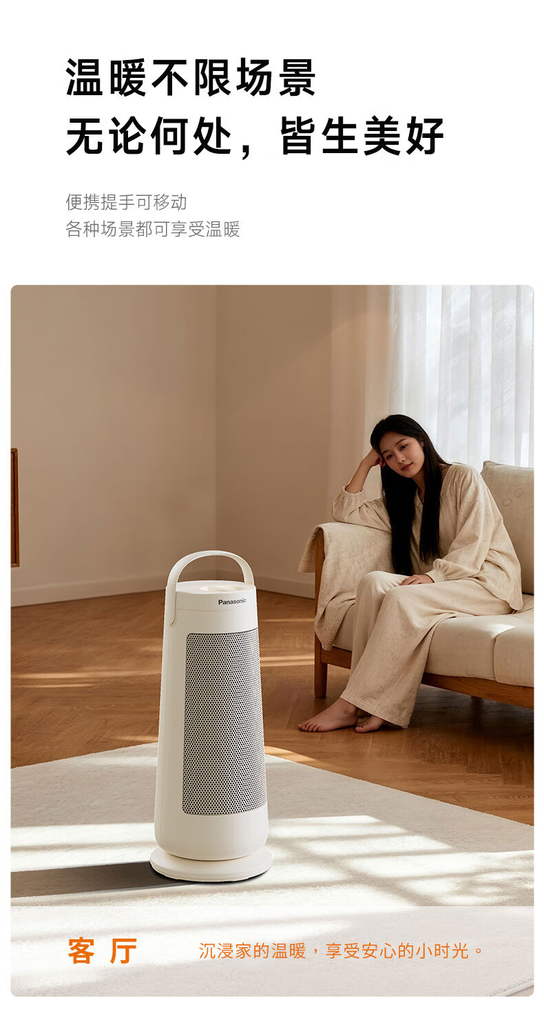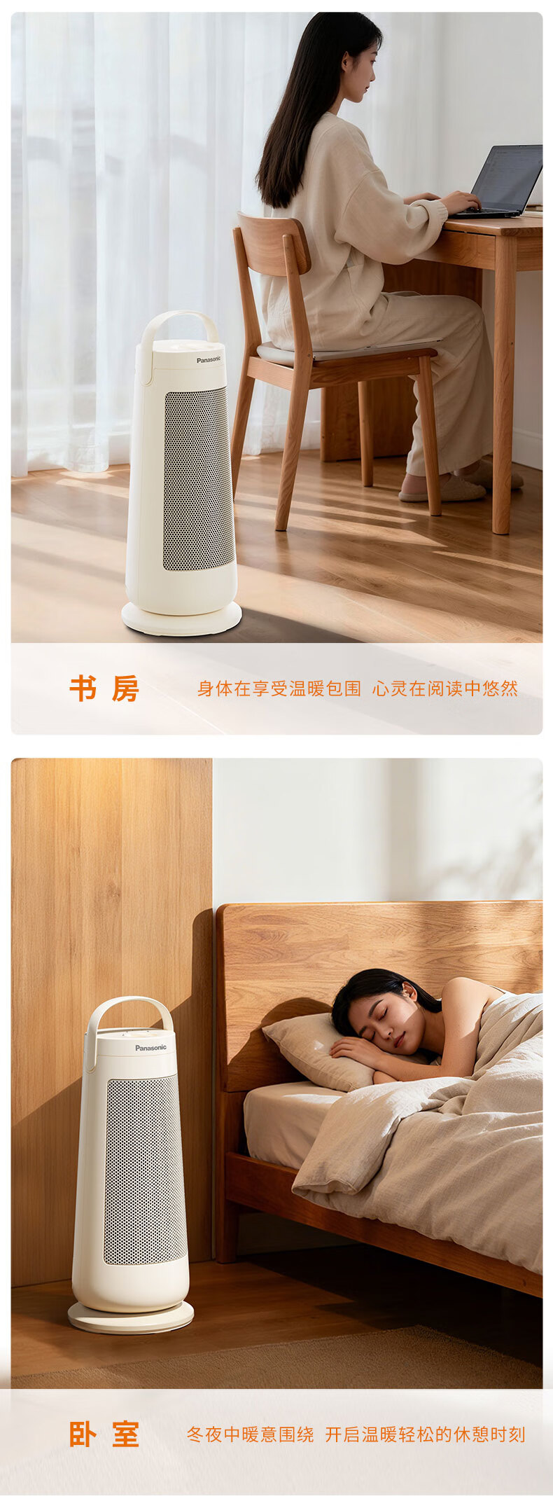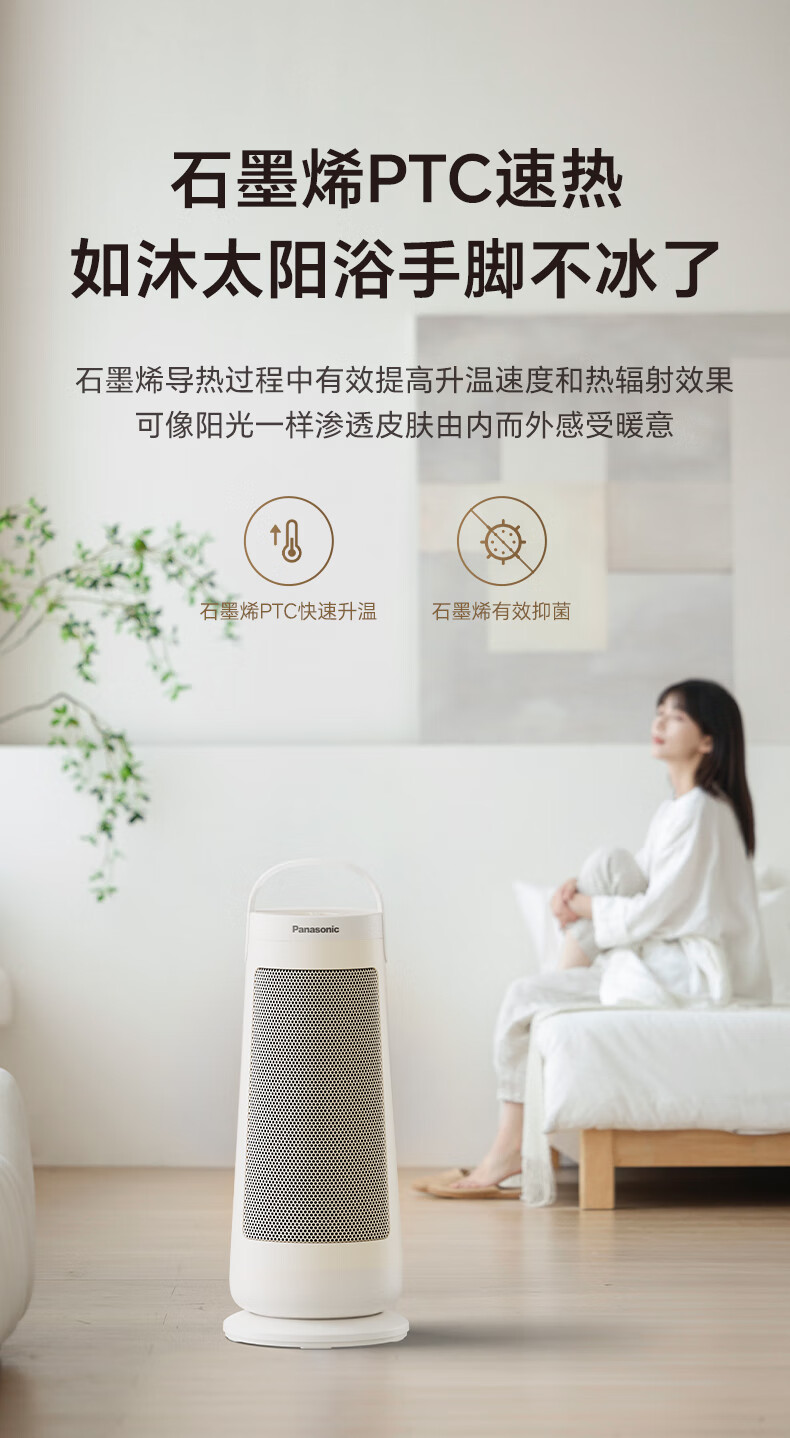 松下(Panasonic)【暖暖塔】暖风机石墨烯取暖器家用电暖器台立式办公室电暖气小型速热摇头电热风小太阳DS-P2078CW