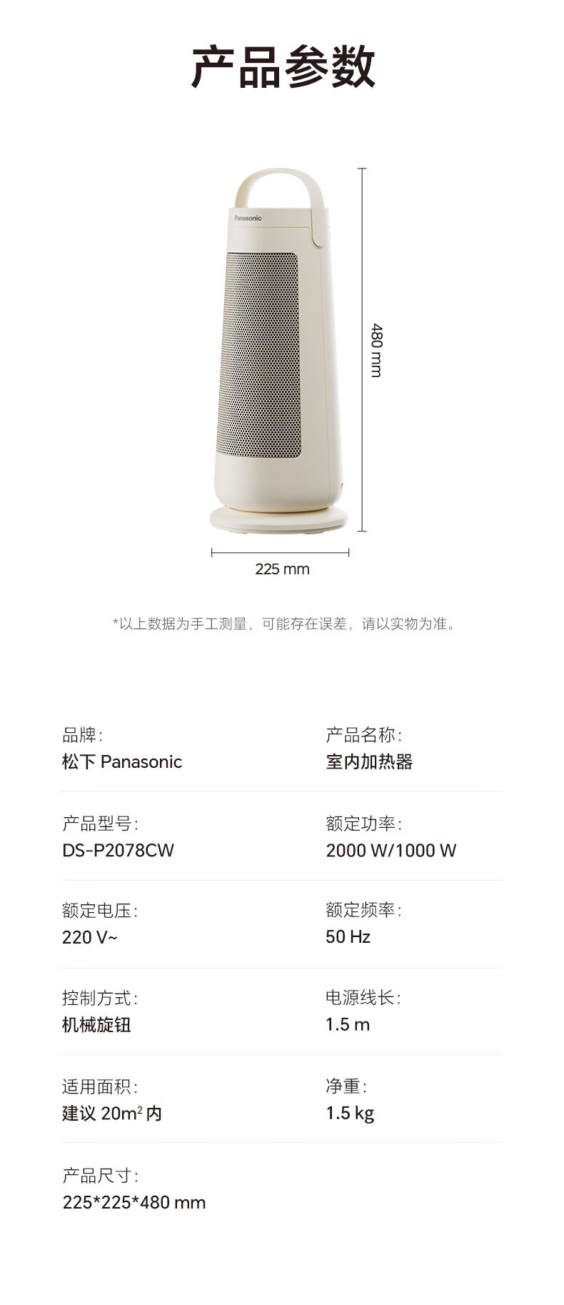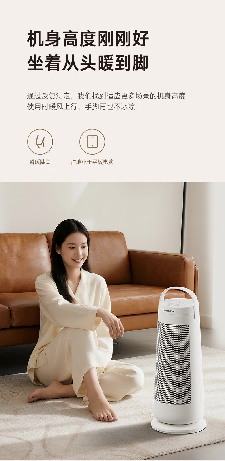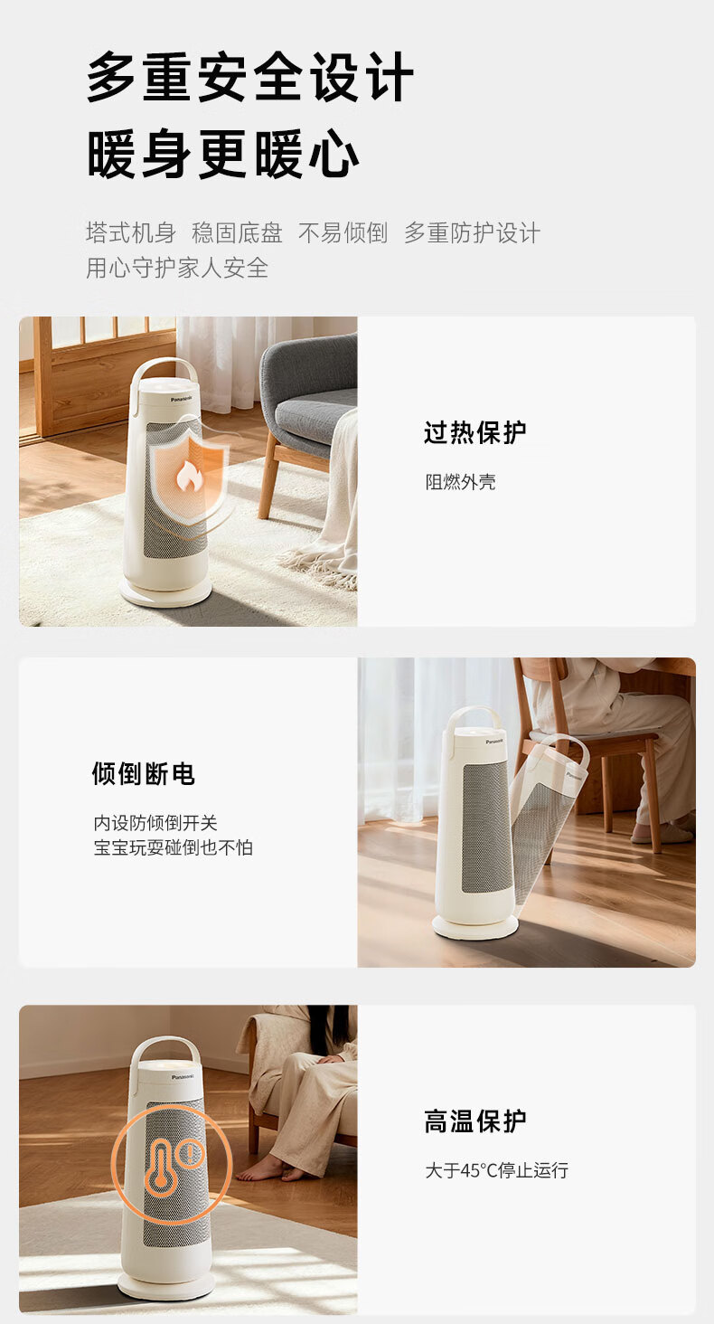 松下(Panasonic)【暖暖塔】暖风机石墨烯取暖器家用电暖器台立式办公室电暖气小型速热摇头电热风小太阳DS-P2078CW