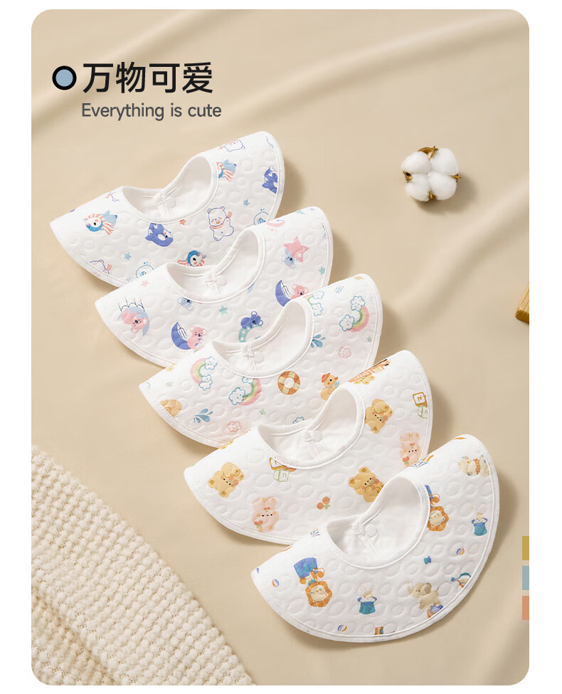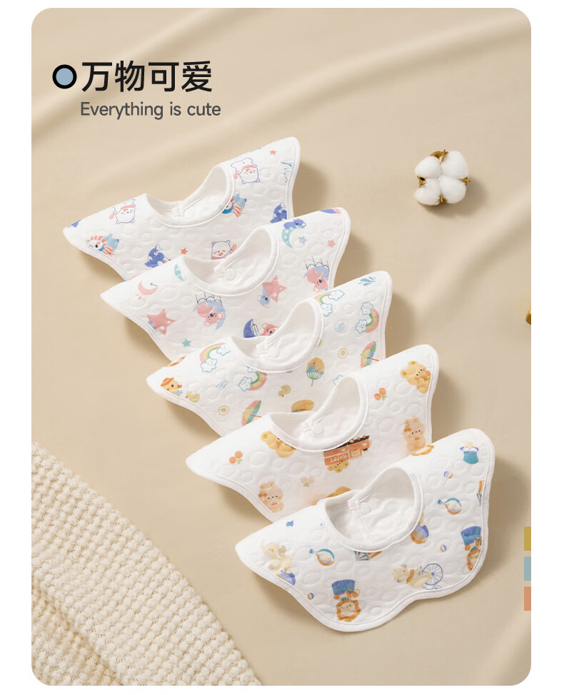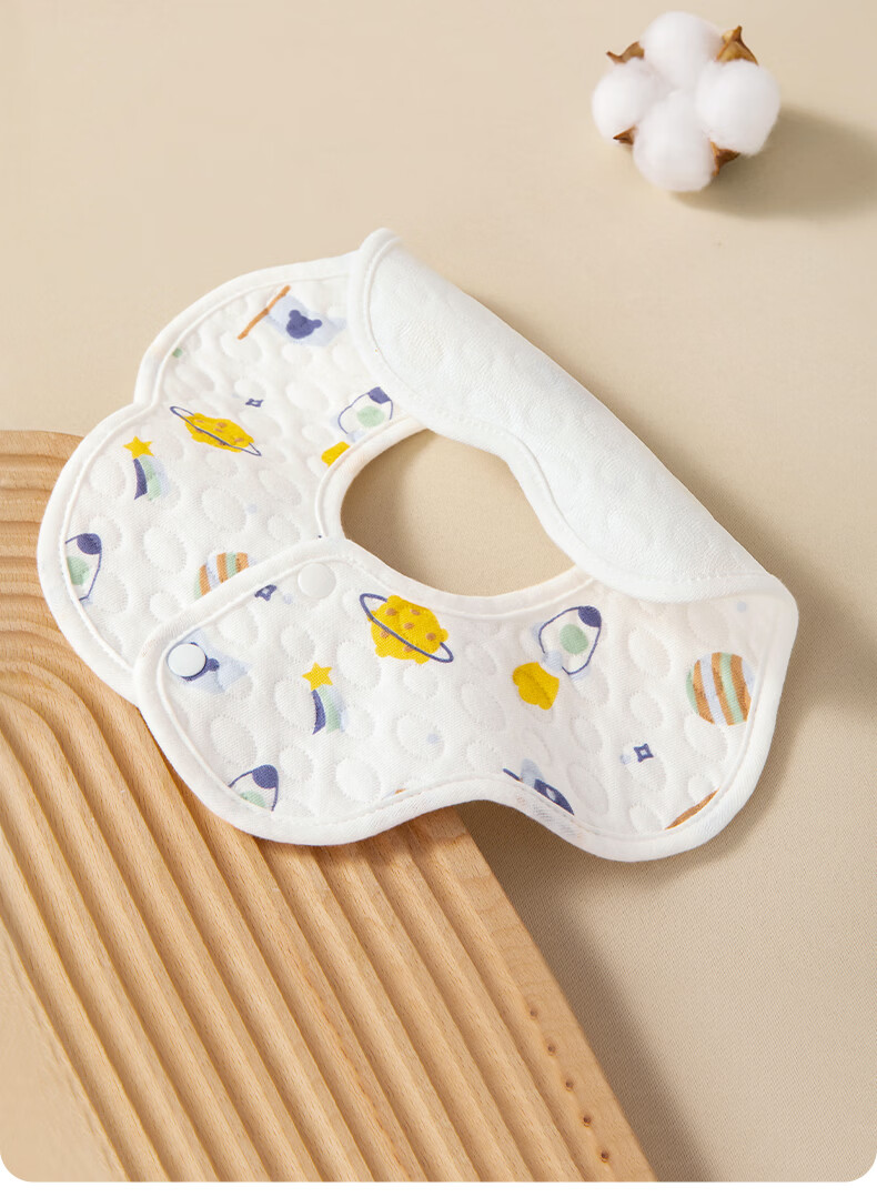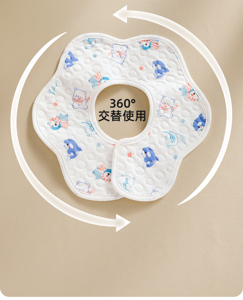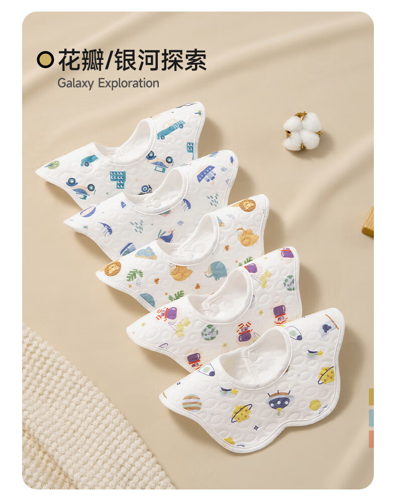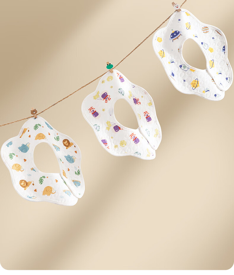 贝肽斯口水巾婴儿围嘴新生儿宝宝纯棉防水吐奶吃饭围兜柔软透气脖围 萌狮领航(花瓣款 3条装) 【25×25cm】加大领圈