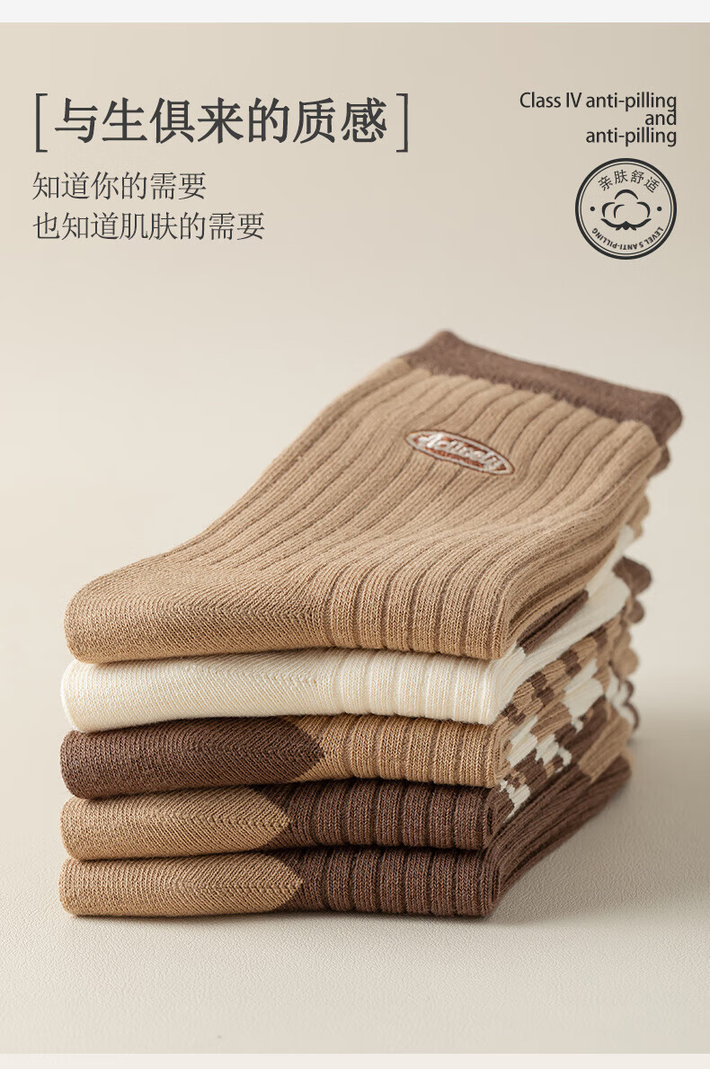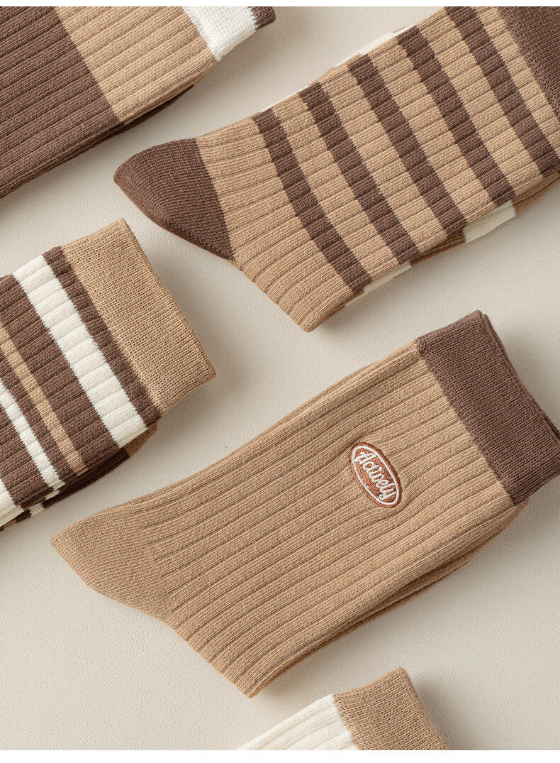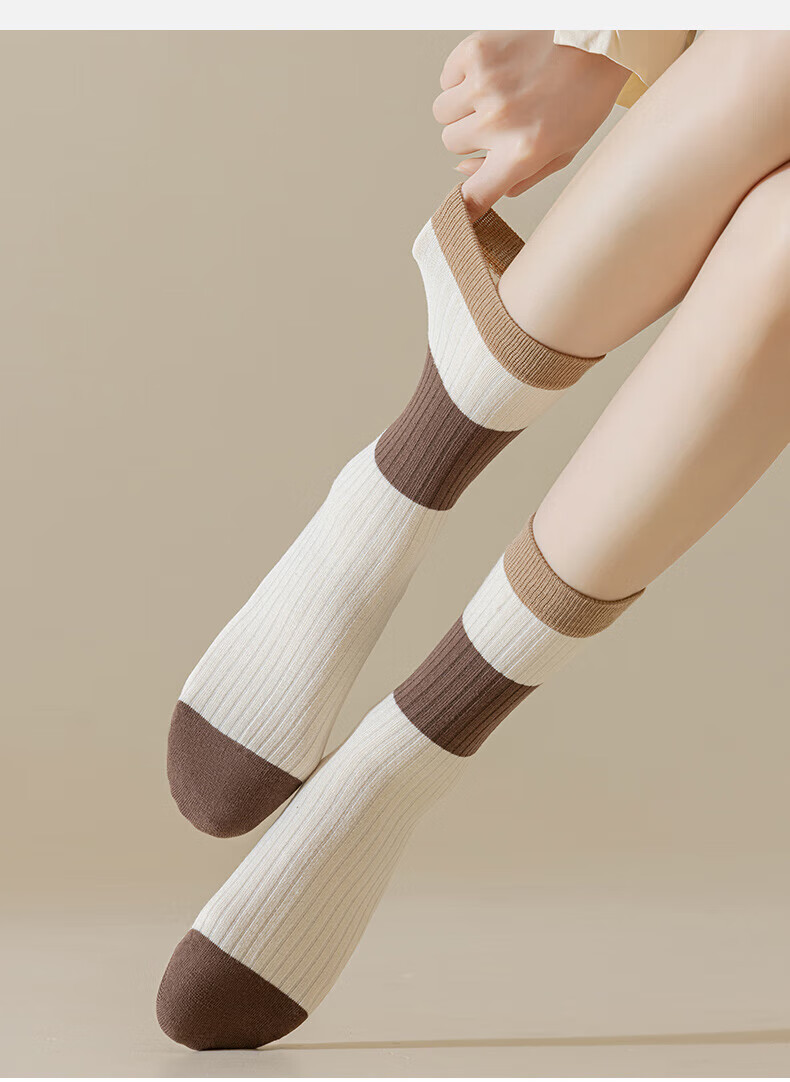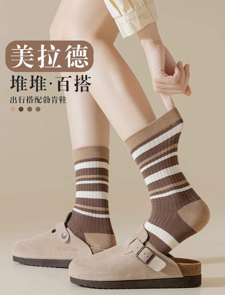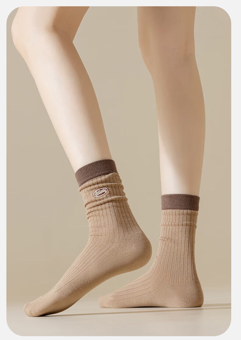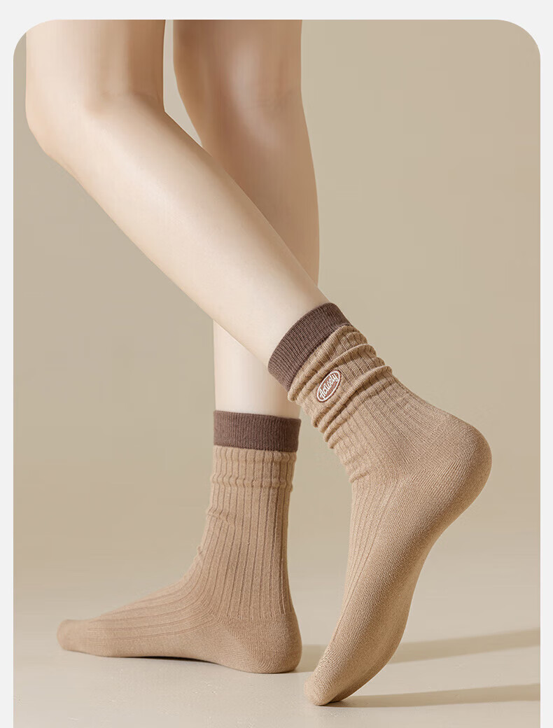 雅鹿美拉德堆堆袜子女中筒袜秋冬款韩系可爱女士长筒袜 款式一 5双