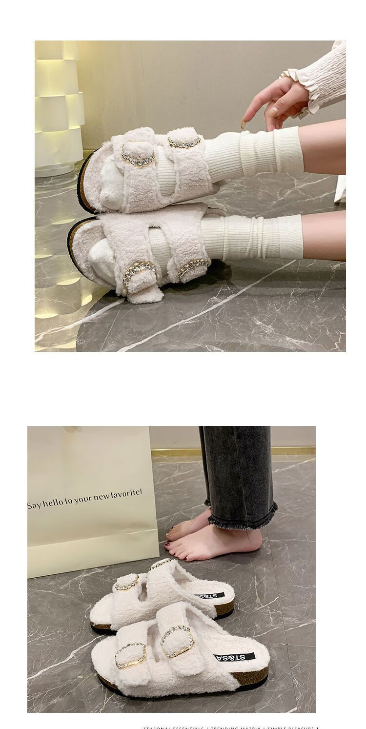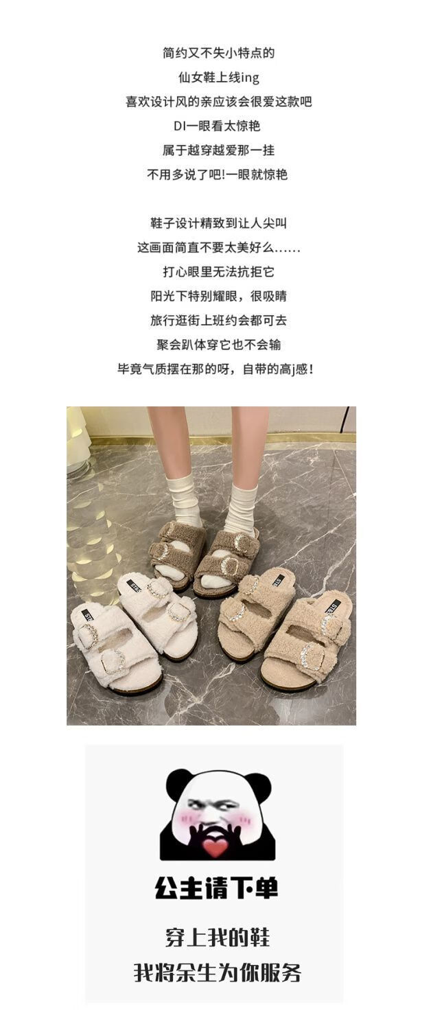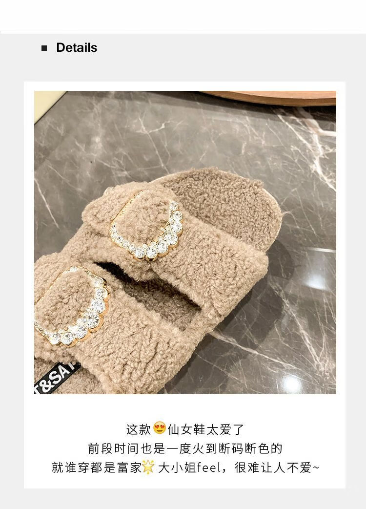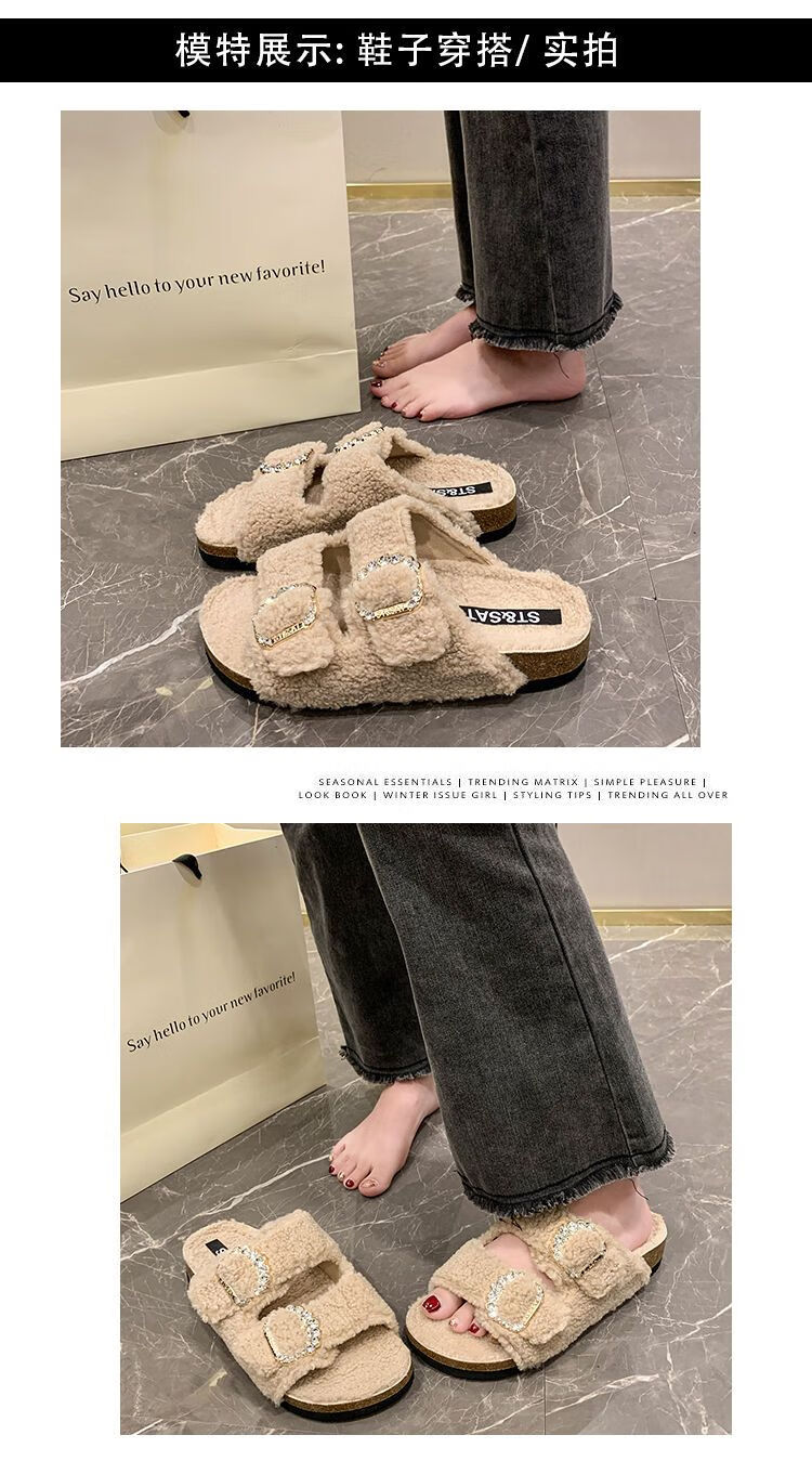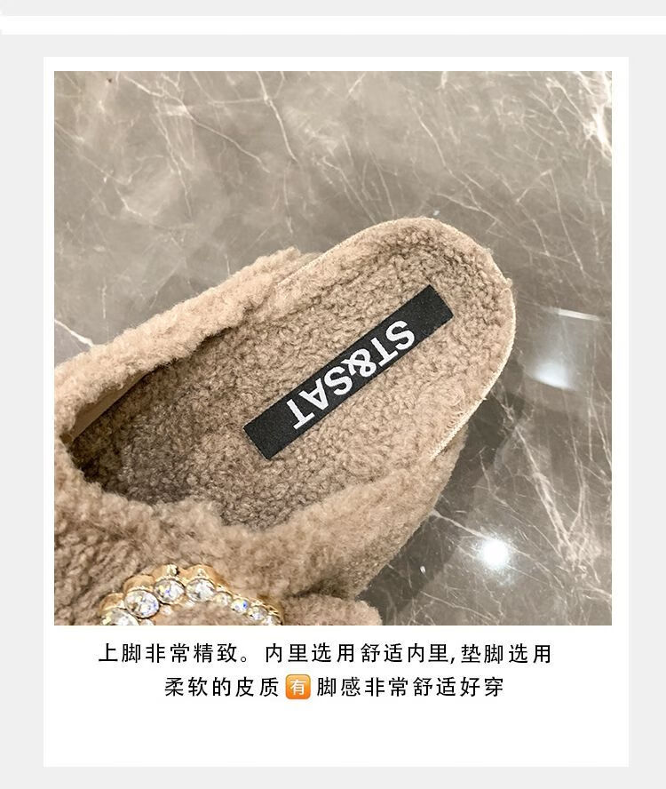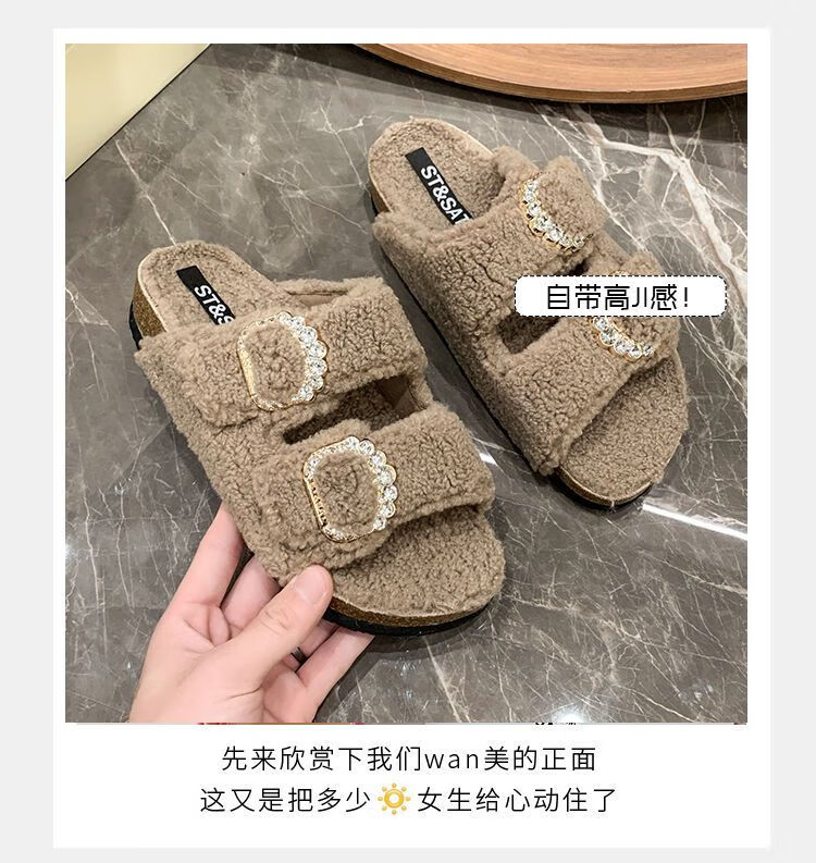 星期六【加绒保暖】毛毛拖鞋冬季2024新款一脚蹬棉拖外穿毛绒厚底女鞋 杏色【加绒保暖】 37