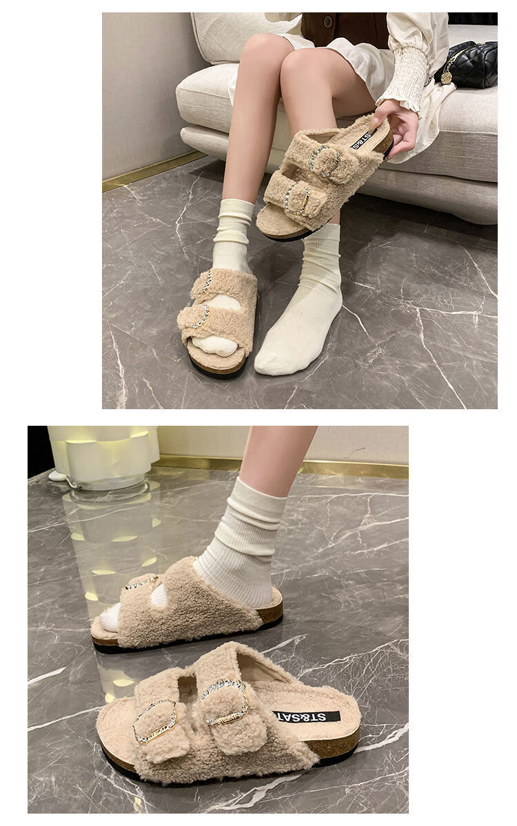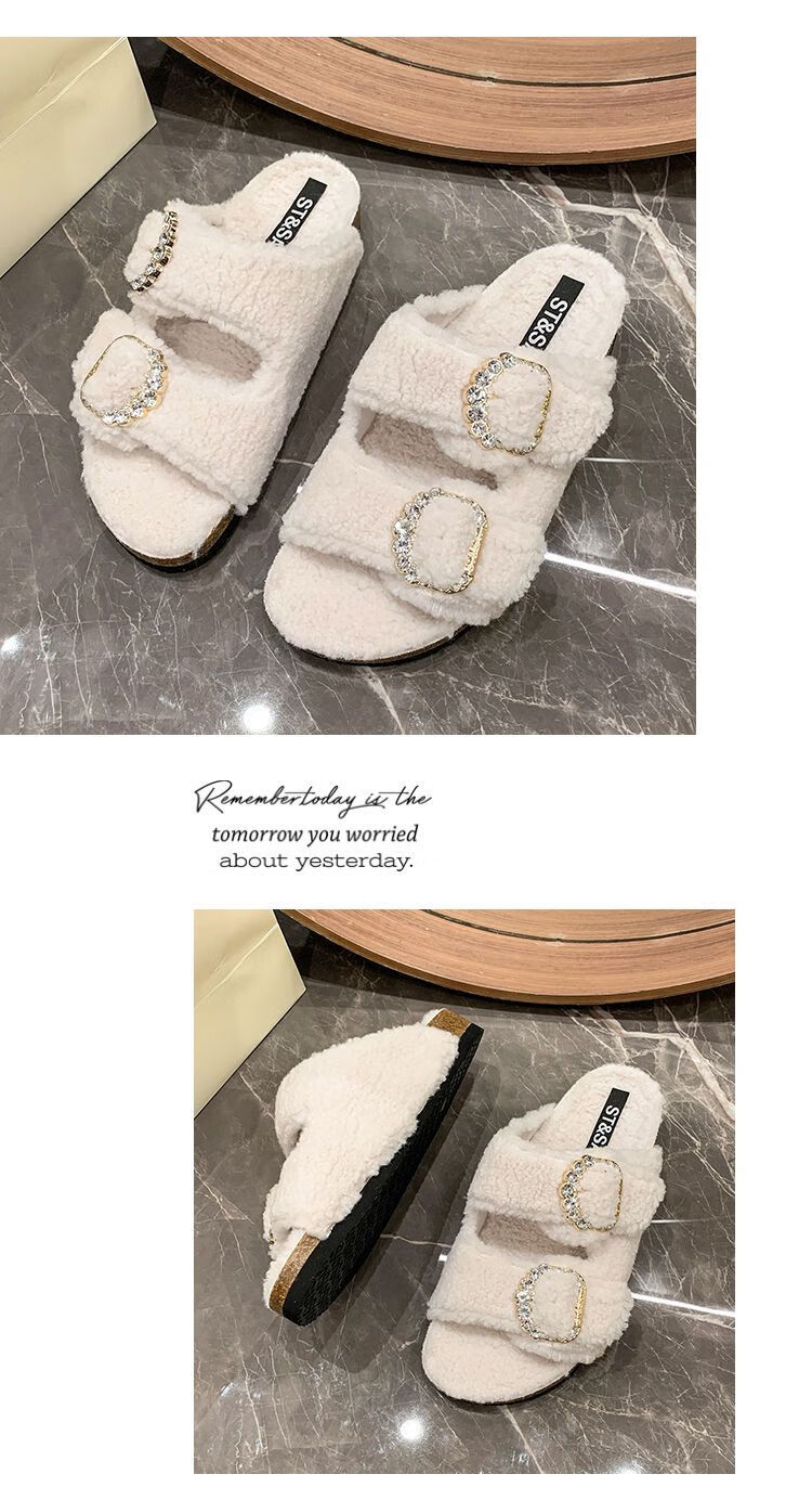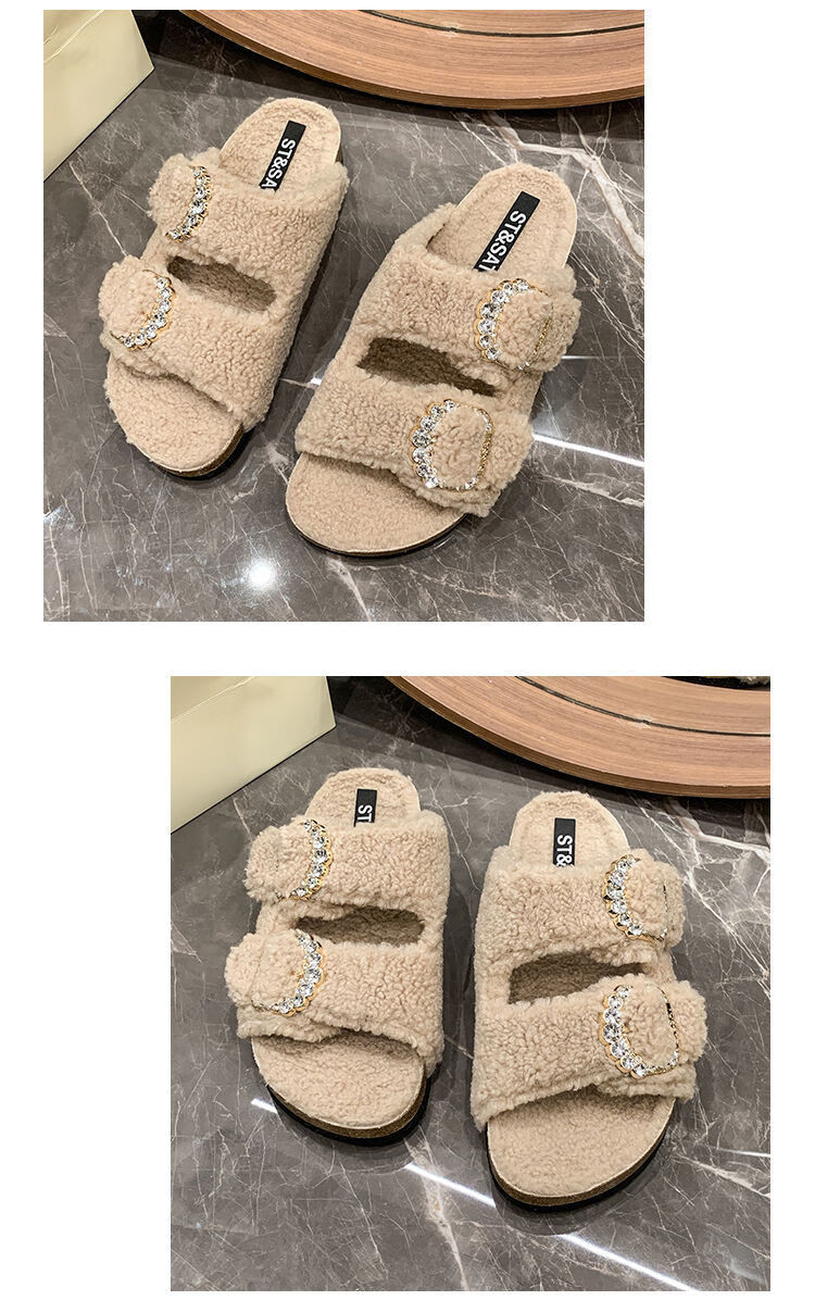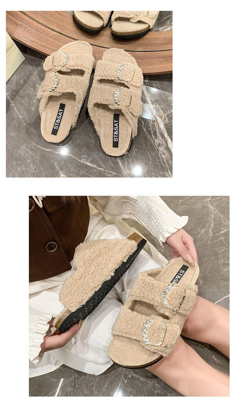 星期六【加绒保暖】毛毛拖鞋冬季2024新款一脚蹬棉拖外穿毛绒厚底女鞋 杏色【加绒保暖】 37
