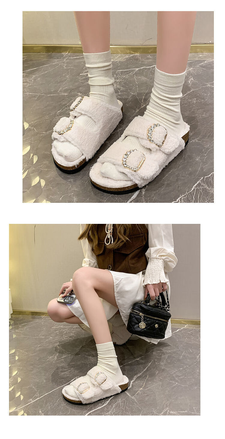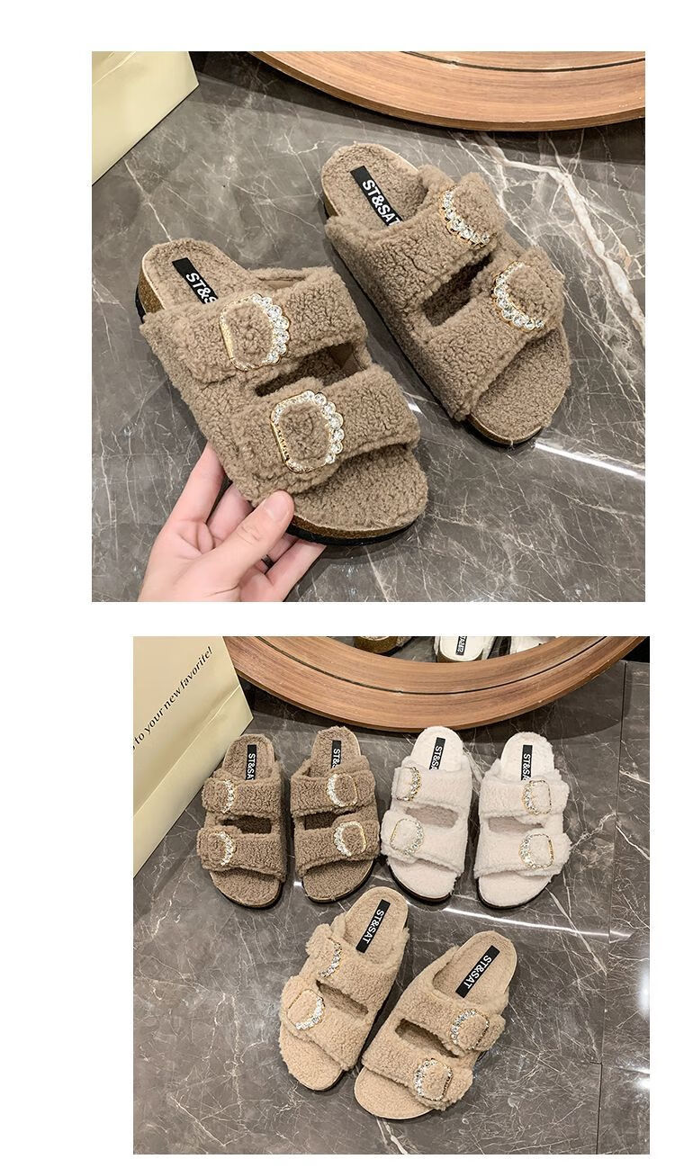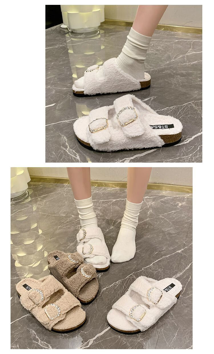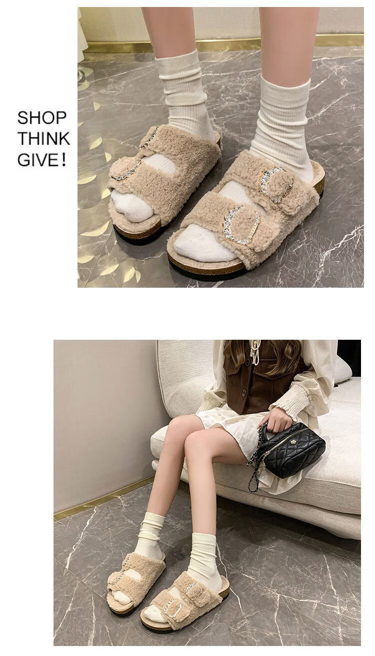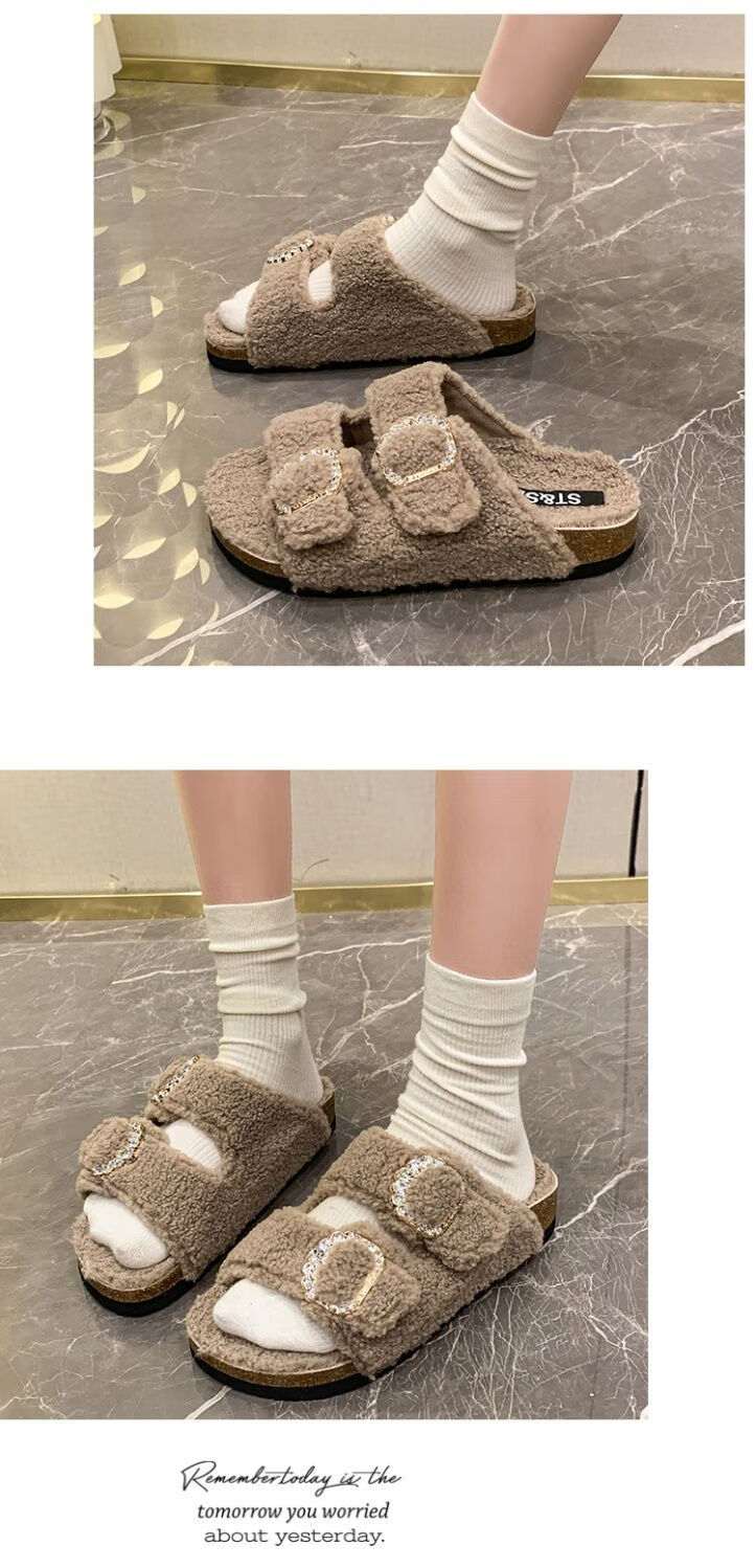 星期六【加绒保暖】毛毛拖鞋冬季2024新款一脚蹬棉拖外穿毛绒厚底女鞋 杏色【加绒保暖】 37