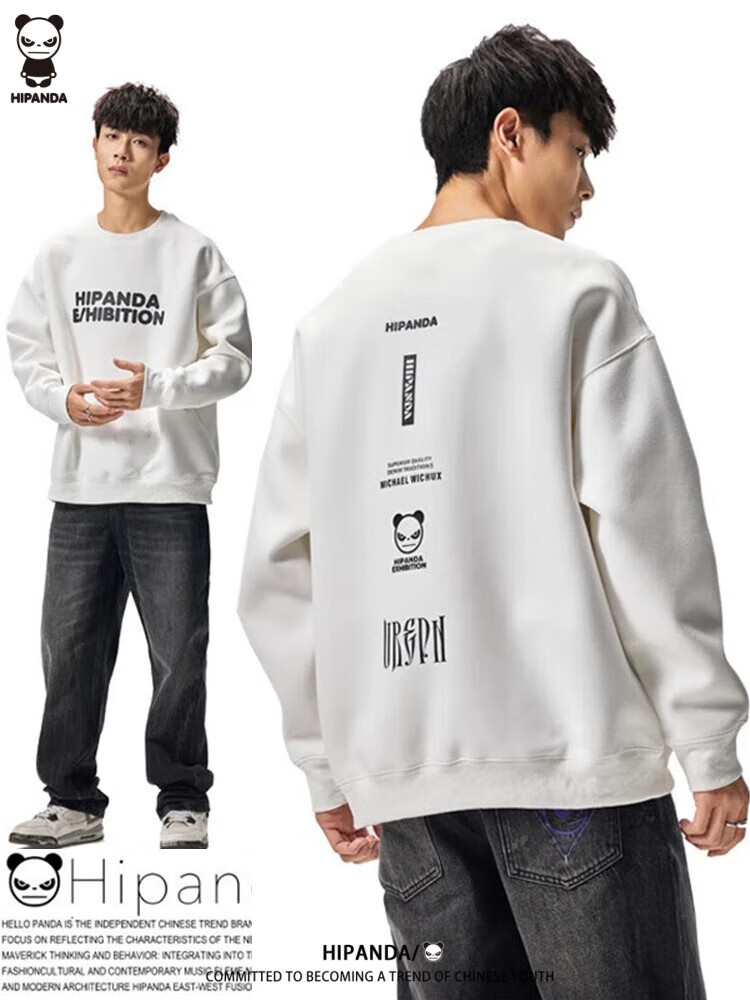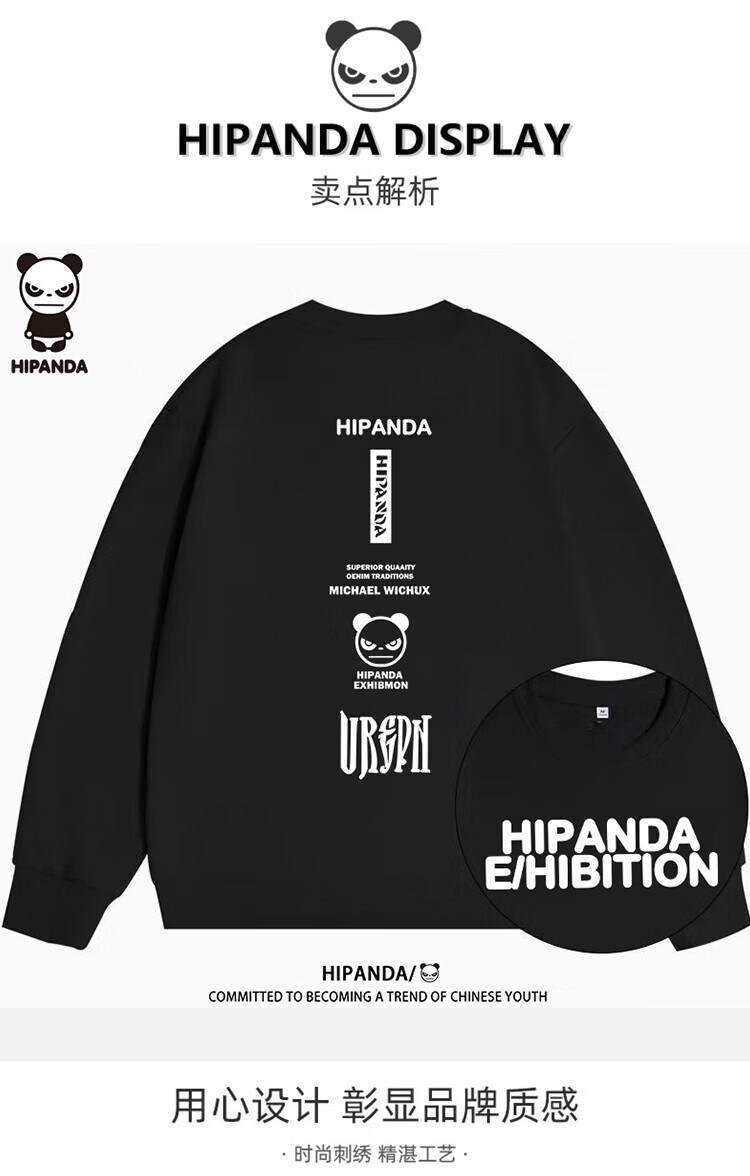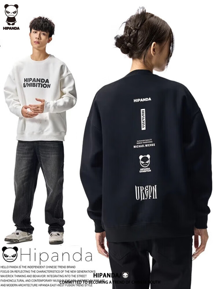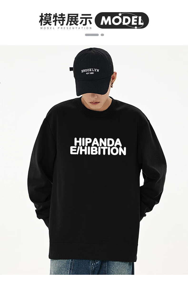 HIPANDA你好熊猫卫衣男2025年秋冬圆领印花男女款打底宽松休闲套头长袖男 黑色 3XL