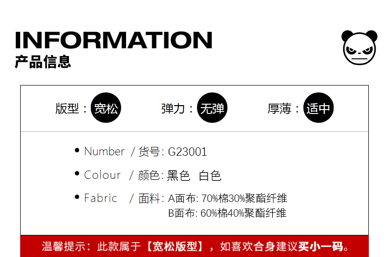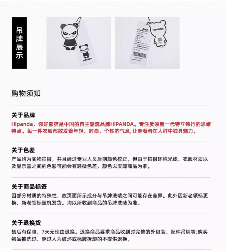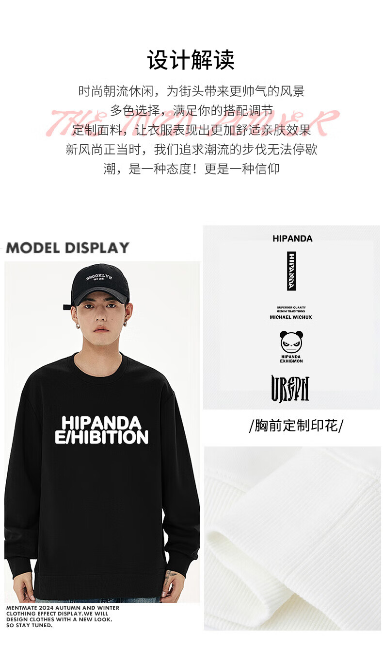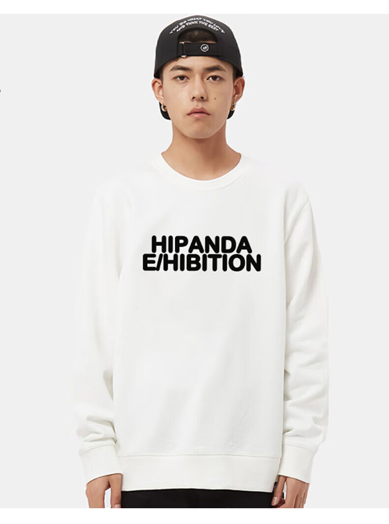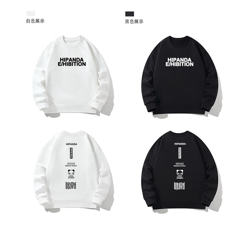HIPANDA你好熊猫卫衣男2025年秋冬圆领印花男女款打底宽松休闲套头长袖男 黑色 3XL