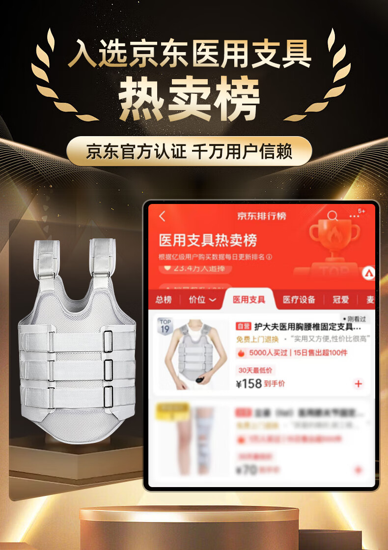 护大夫医用胸腰椎固定支具压缩性骨折护具腰间盘突出护腰术后康复支架M