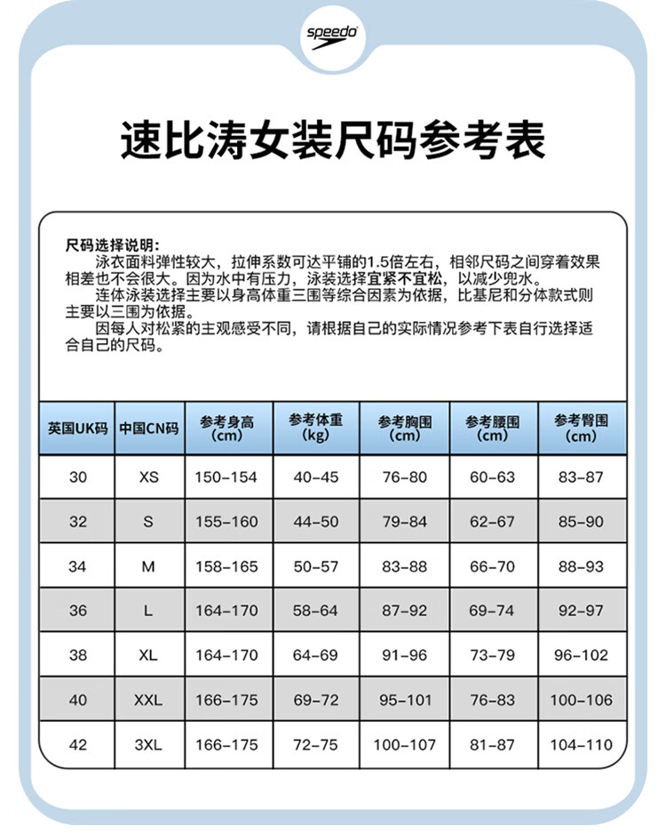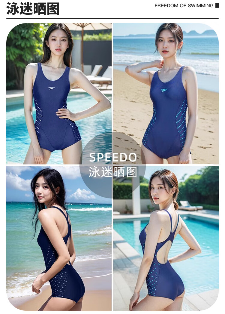 速比涛(Speedo)专业训练连体小平角泳衣女士健身修身遮肚显瘦聚拢抗氯度假游泳衣 蓝色【紧束核心机泳姿更进一步】 M (34) 身高165/体重50-57kg