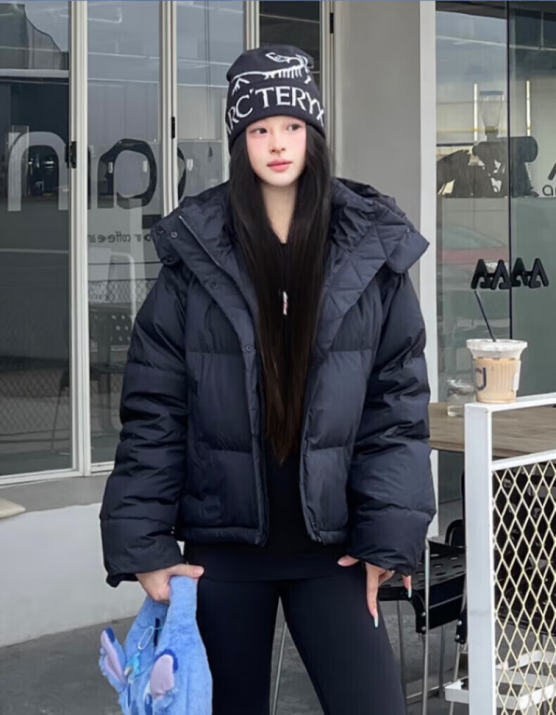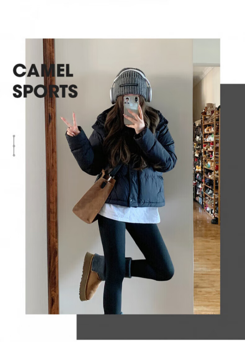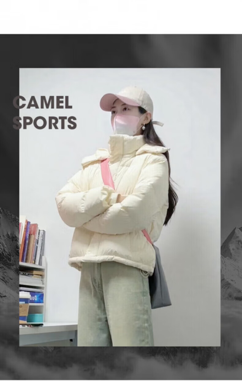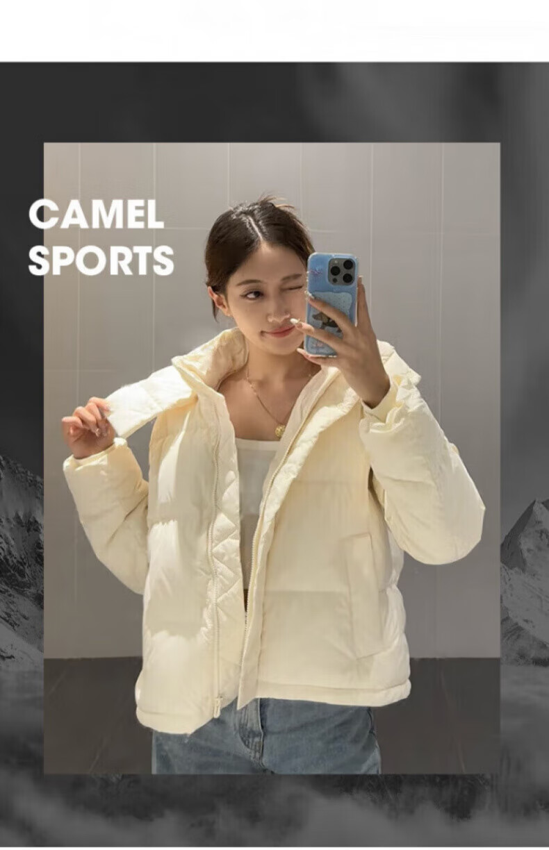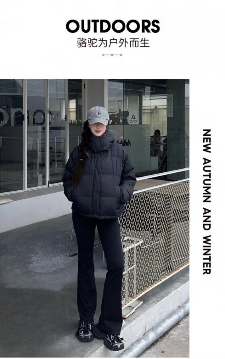 骆驼730高蓬泡芙羽绒服女短款加厚防风御寒保暖蓄热面包服女 C24CY09643A,幻影黑,女 L