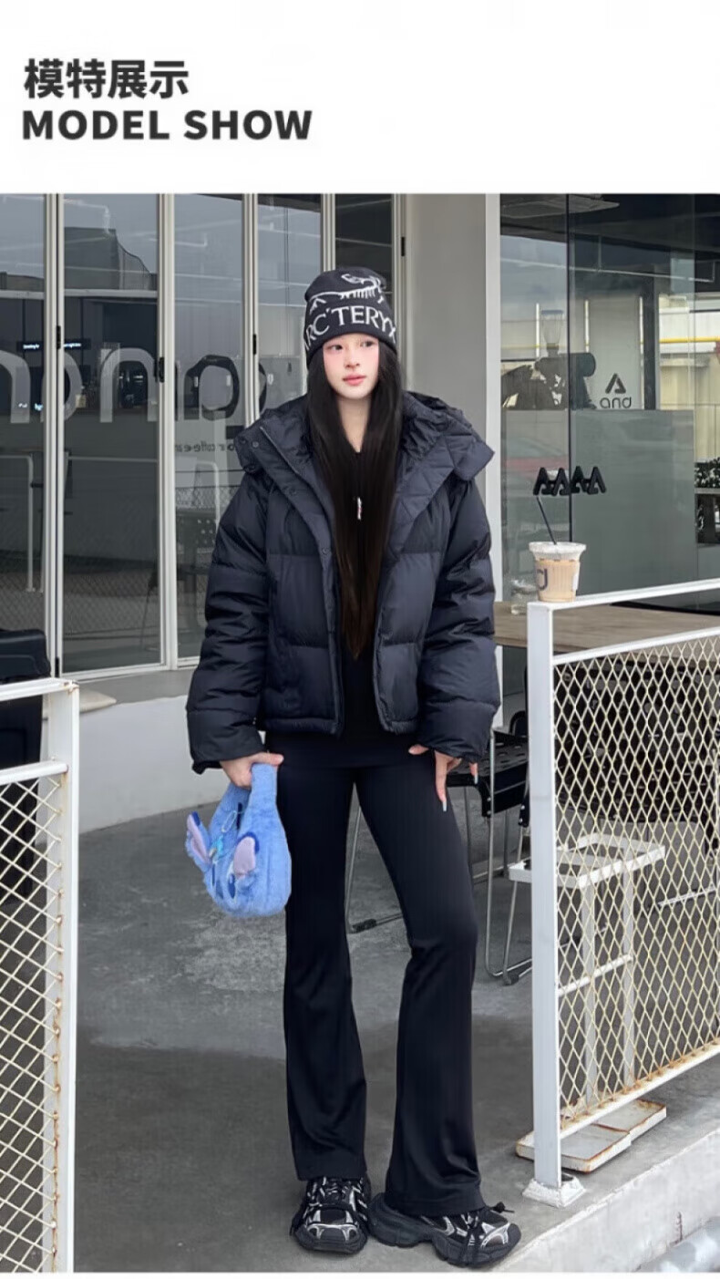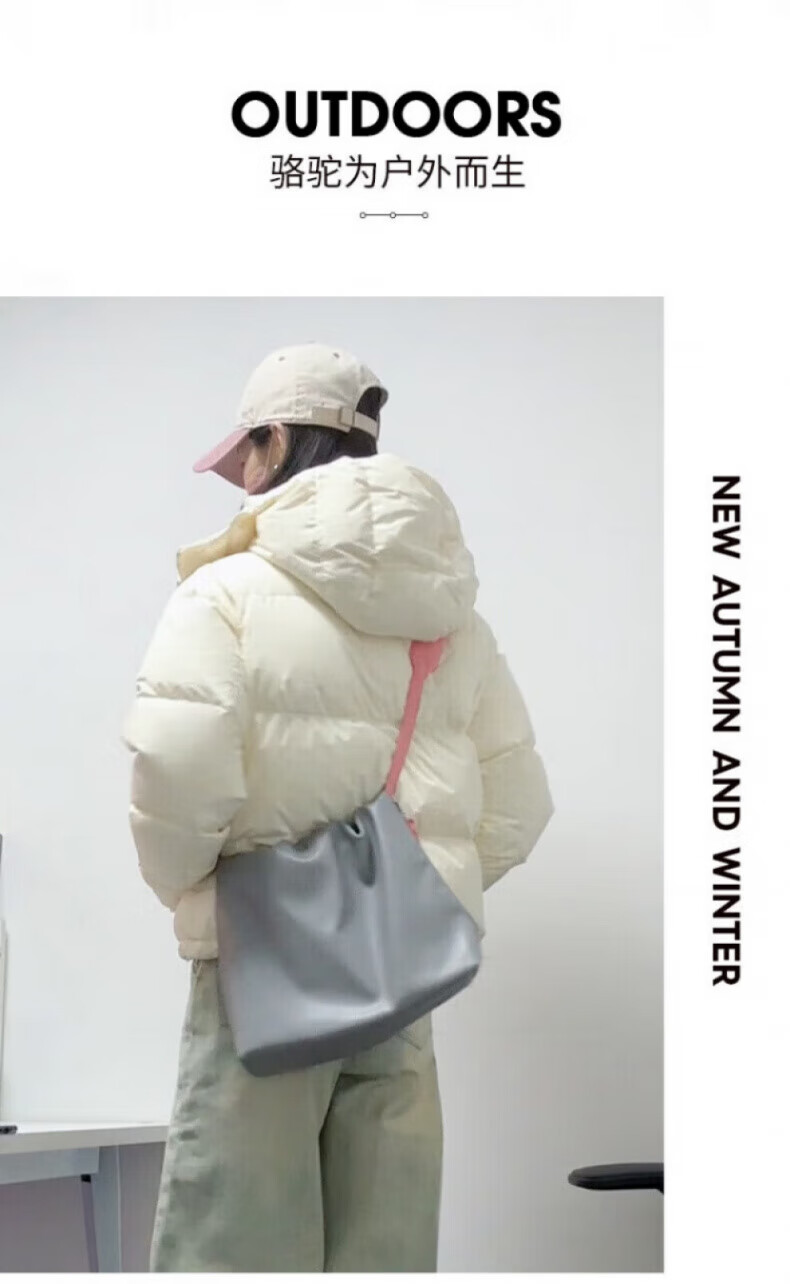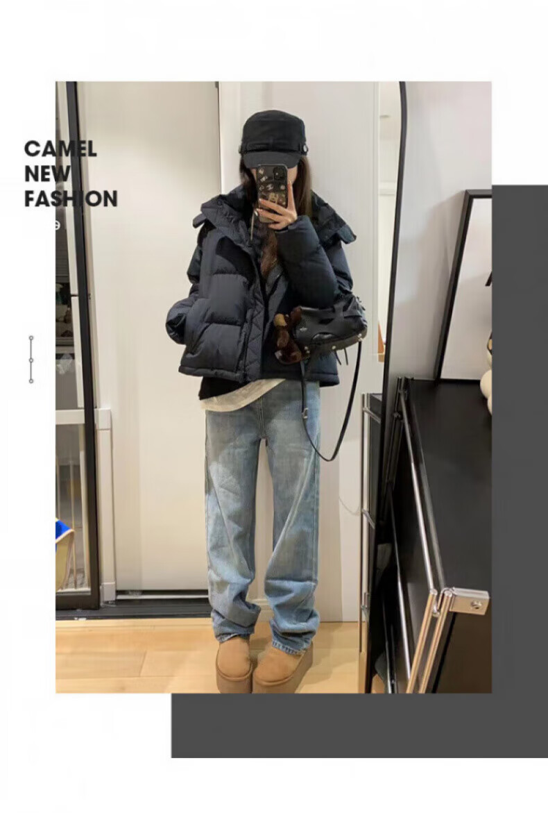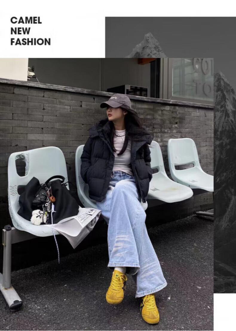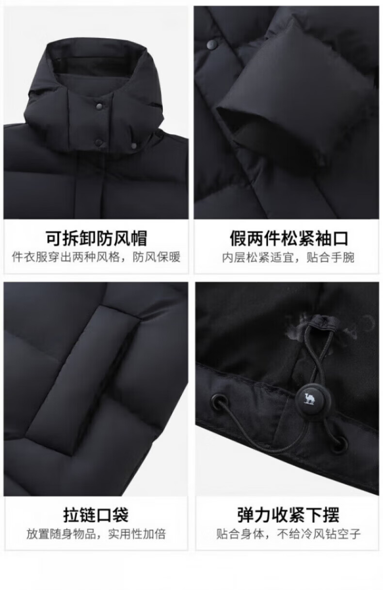 骆驼730高蓬泡芙羽绒服女短款加厚防风御寒保暖蓄热面包服女 C24CY09643A,幻影黑,女 L
