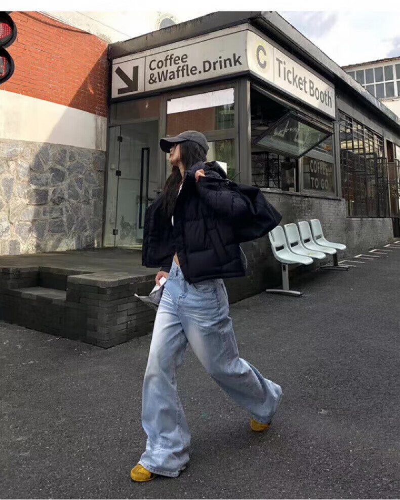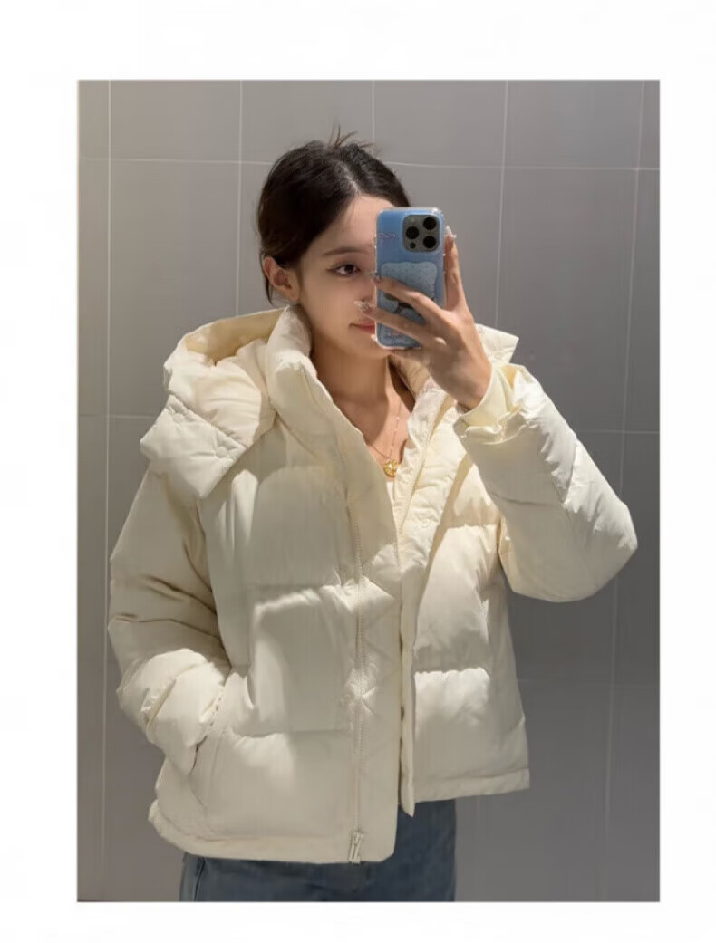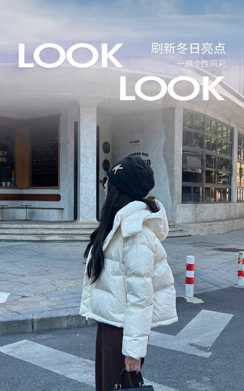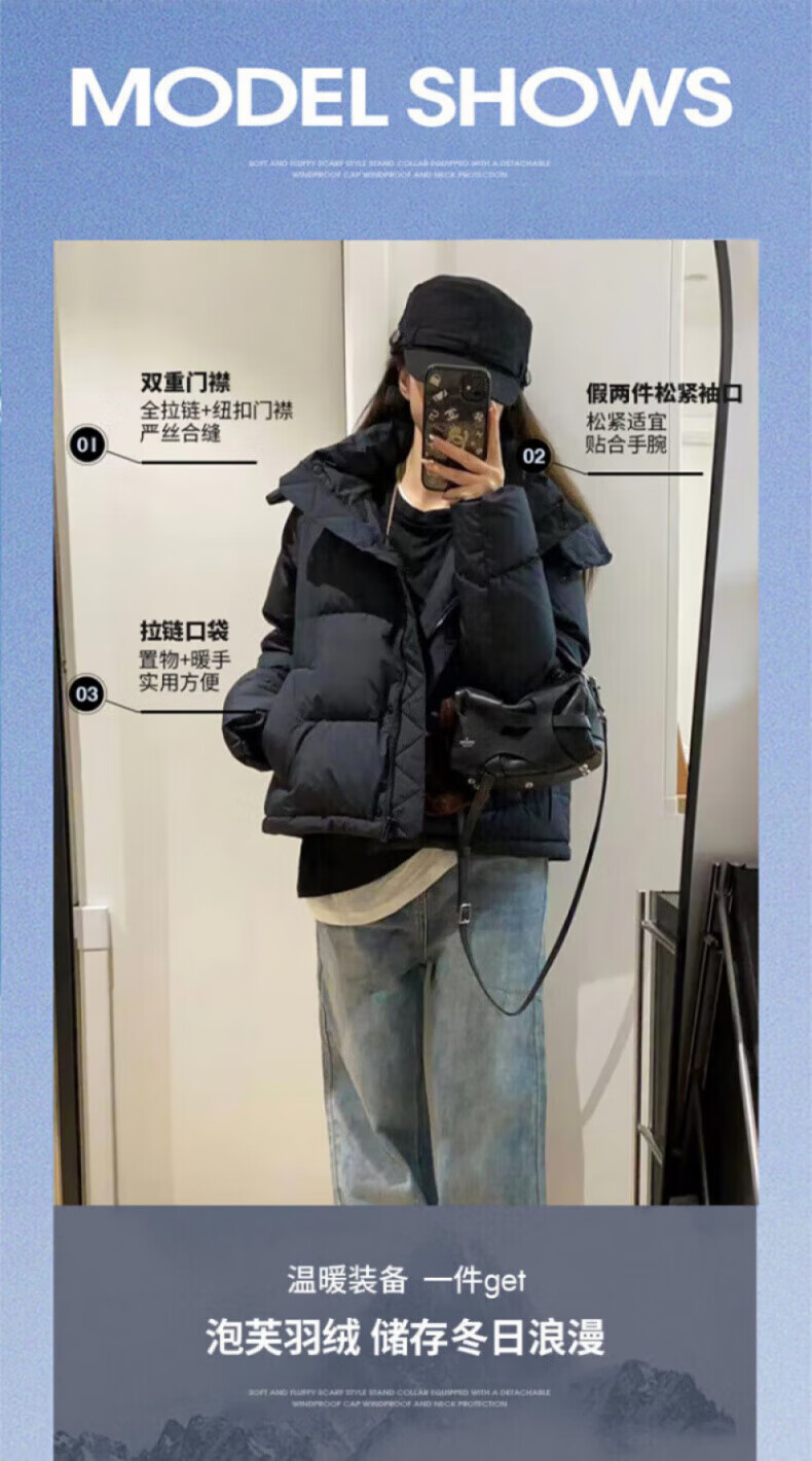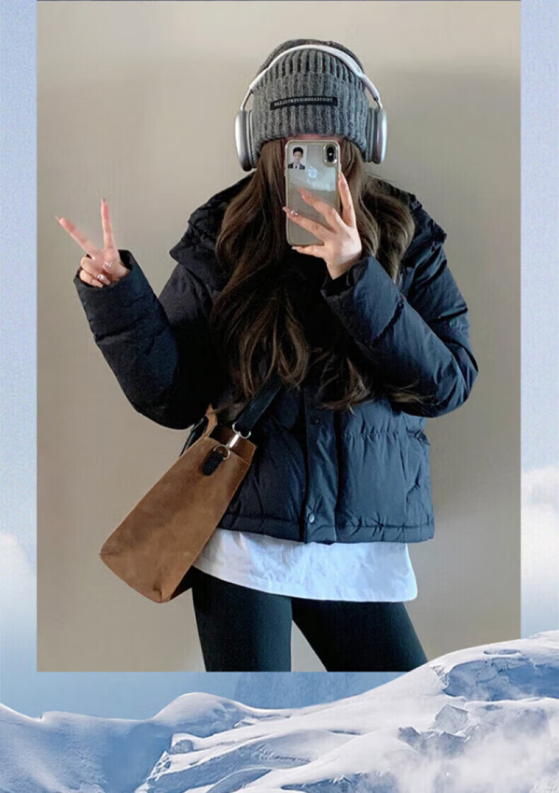 骆驼730高蓬泡芙羽绒服女短款加厚防风御寒保暖蓄热面包服女 C24CY09643A,幻影黑,女 L