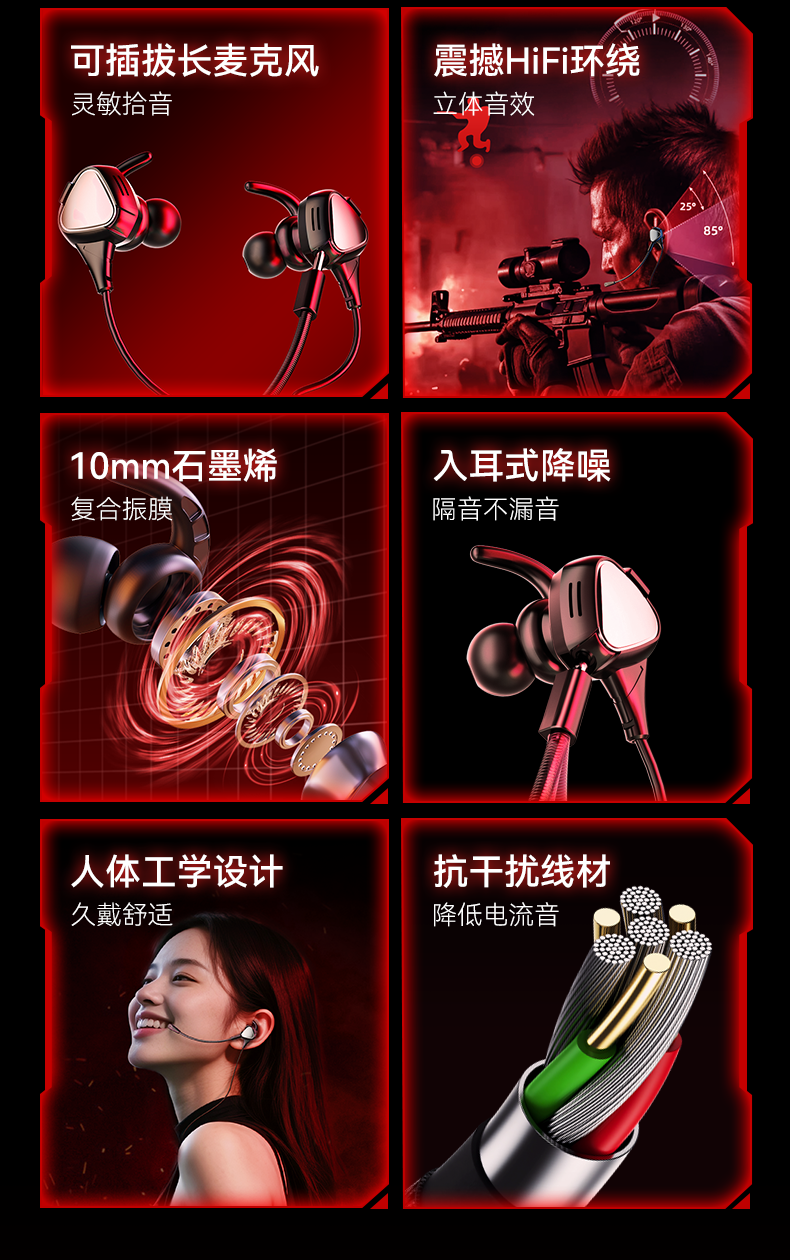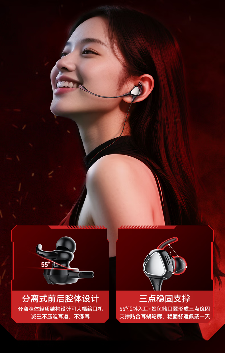 智国者【猎足者引擎】游戏耳机有线电脑电竞入耳式麦克风二合一type-c专用hifi听辩位fps适用三角洲吃鸡