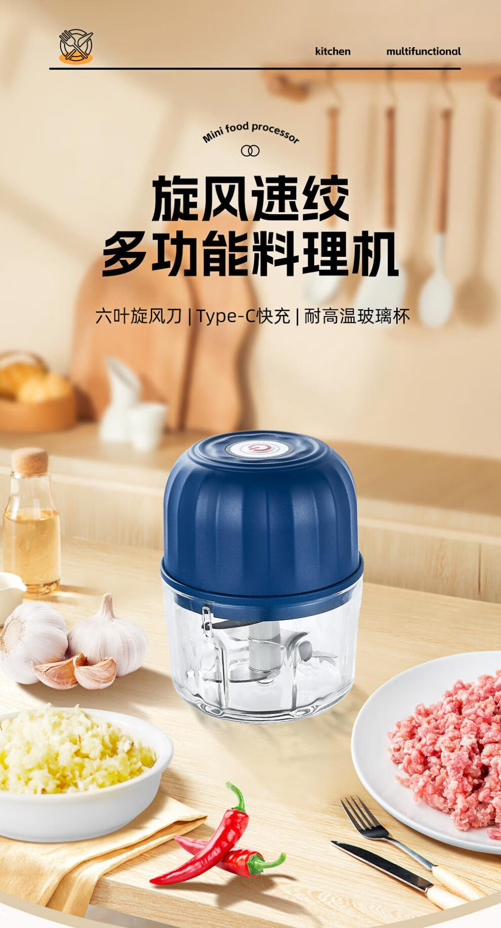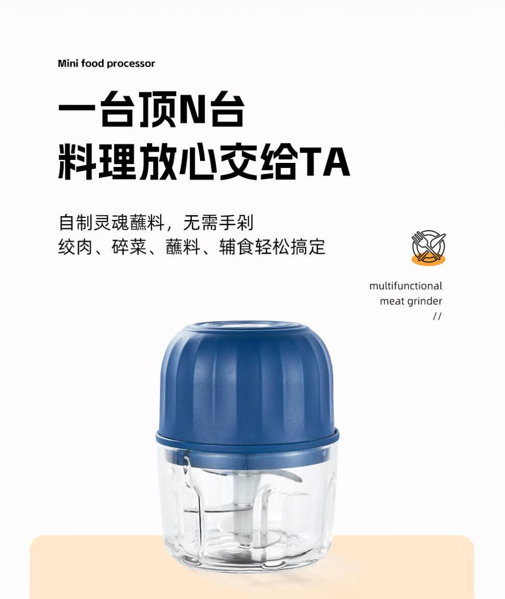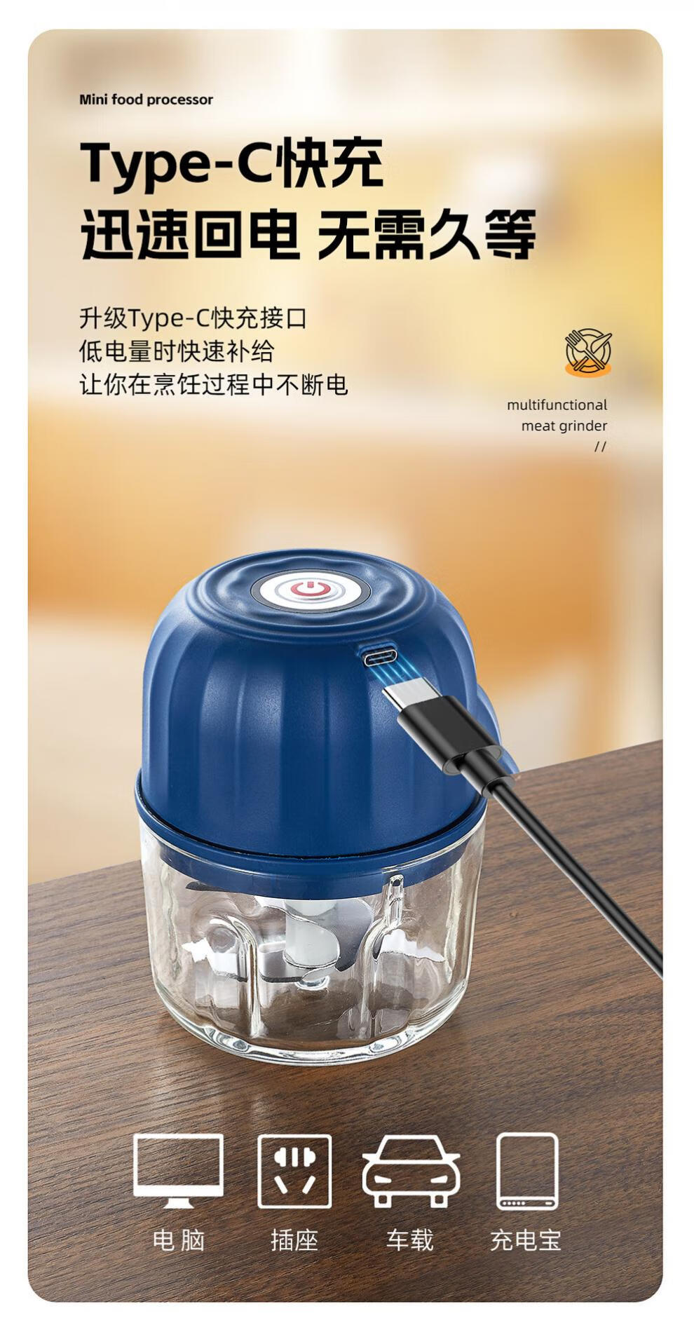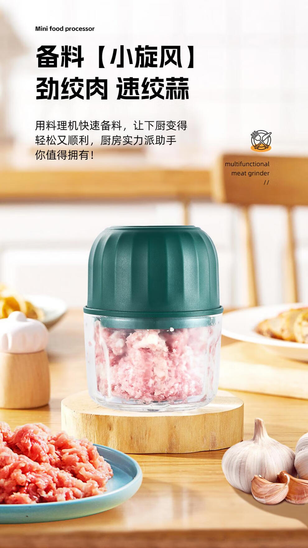 RSRDDY电动捣蒜神器蒜末打蒜器捣蒜搅碎机家用小型辅食绞肉机便携搅蒜器 浅绿色6刀