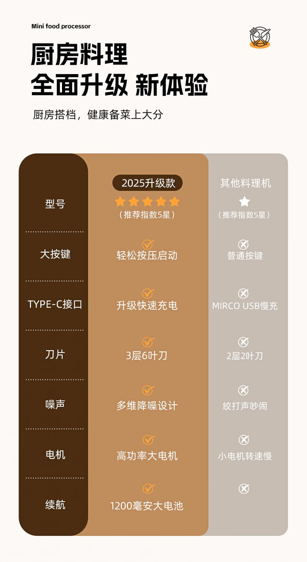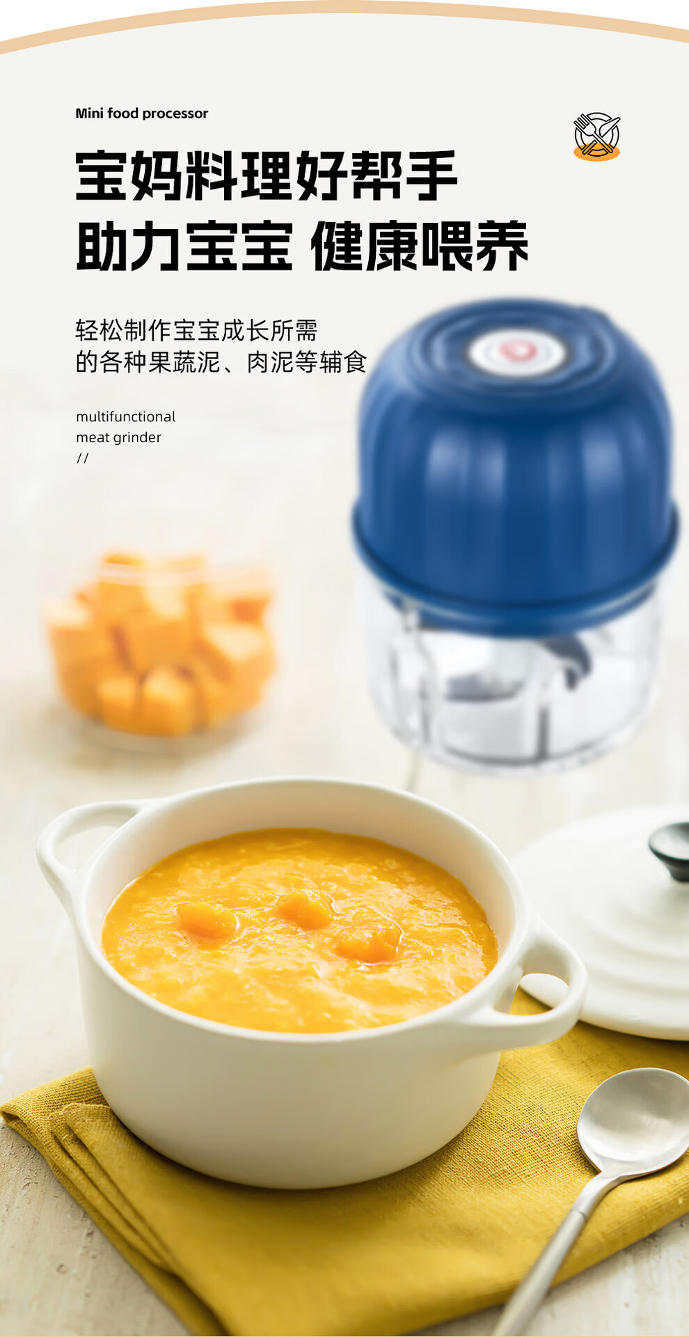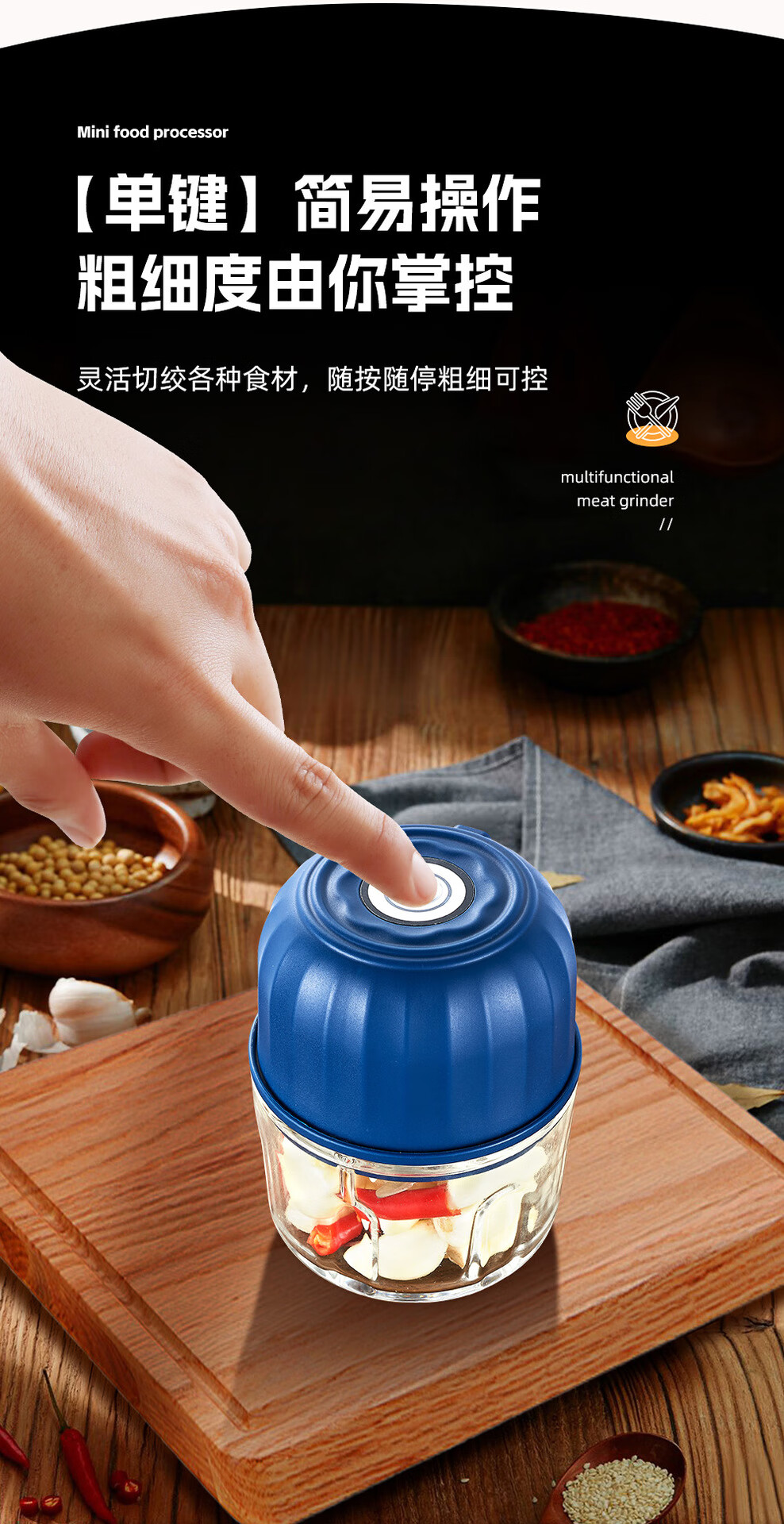 RSRDDY电动捣蒜神器蒜末打蒜器捣蒜搅碎机家用小型辅食绞肉机便携搅蒜器 浅绿色6刀