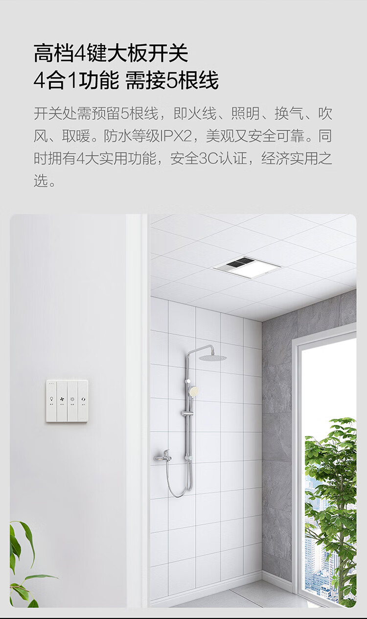 巴洛斯顿免检修口线性风暖型浴霸除菌浴室卫生间蜂窝石膏大板吊顶取暖排气 U1奶油白免检修口