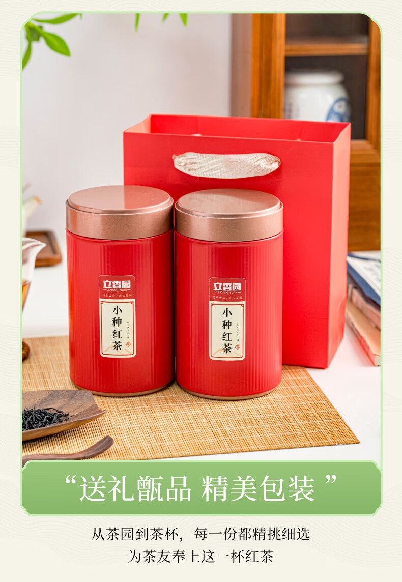 立香园节日送礼正山花香小种红茶新茶武夷山特产浓香型茶叶礼盒装罐装 125克*2罐配礼袋