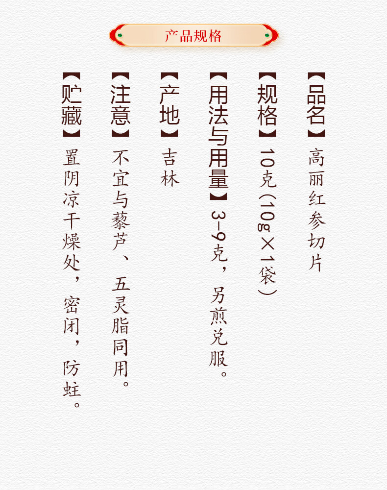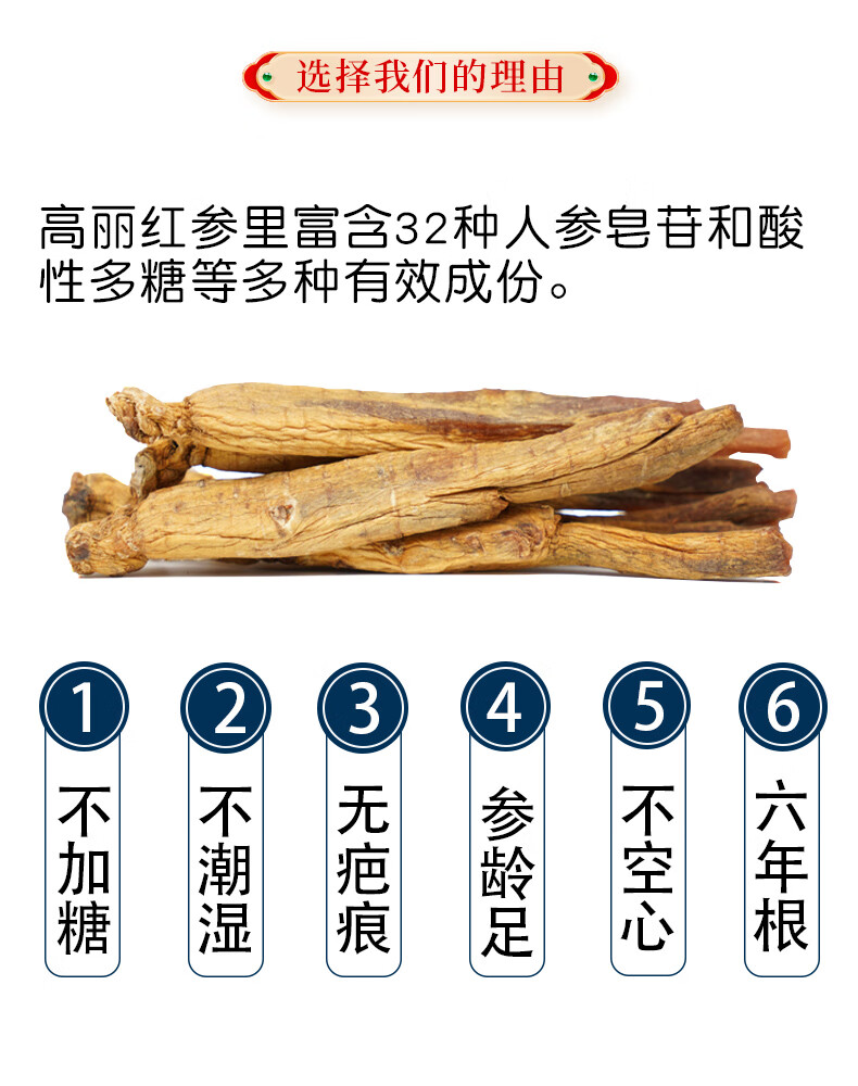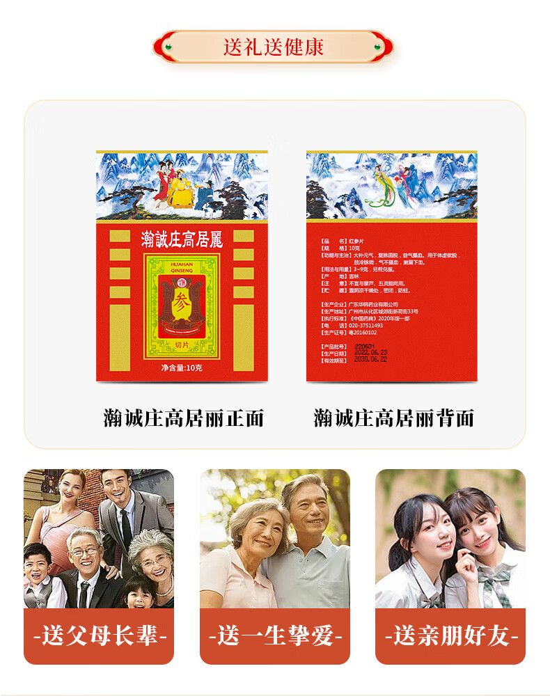 瀚诚庄高居丽红参片10克高丽参红参人参六年根滋补养生