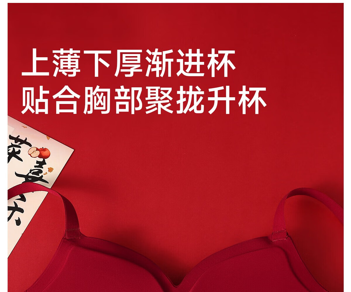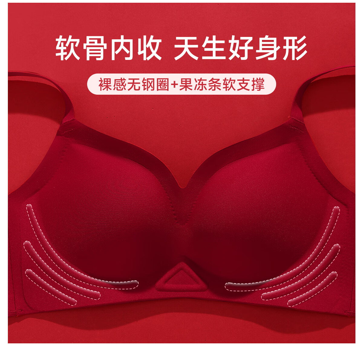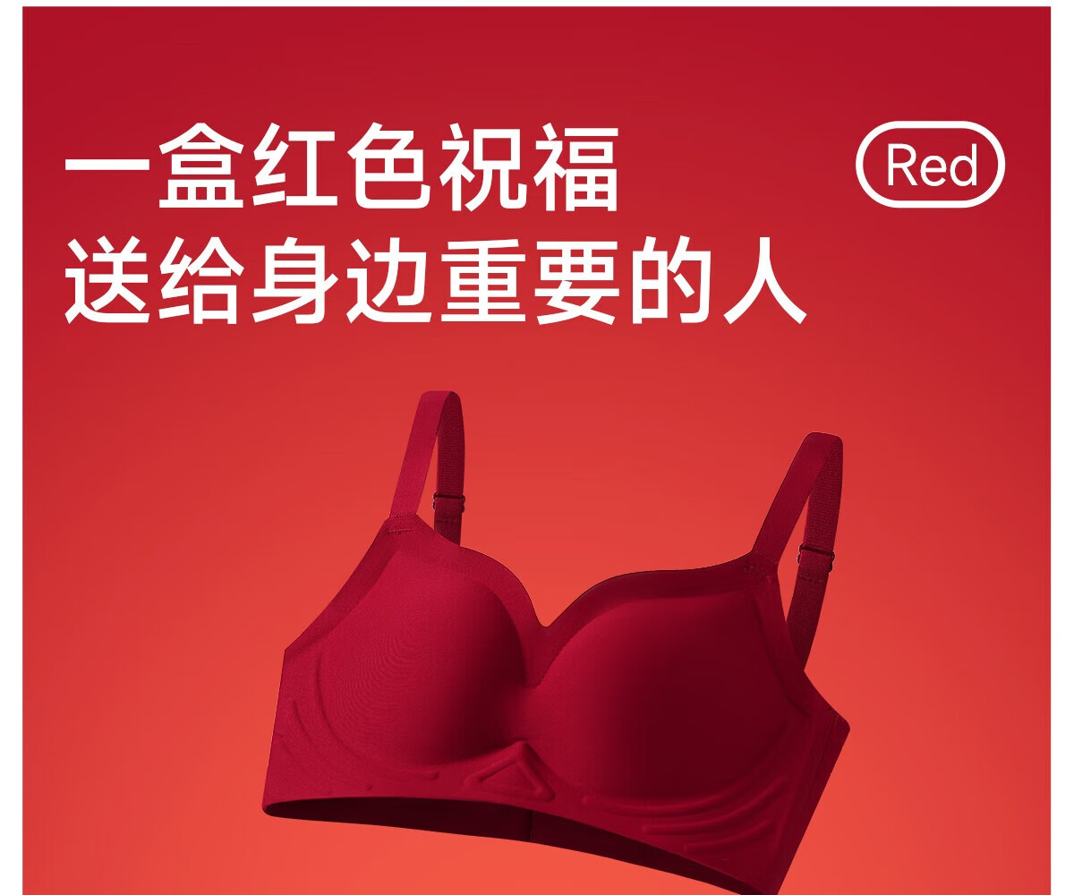 都市丽人本命年内衣女聚拢小胸红色结婚新娘嫁娶无痕文胸套装 【A款】本命年文胸+内裤+袜子+礼盒 M 【建议90-105斤】