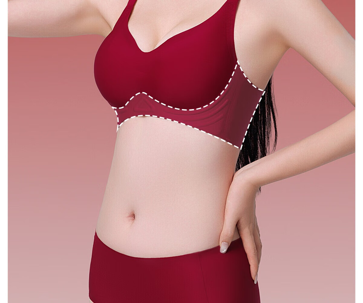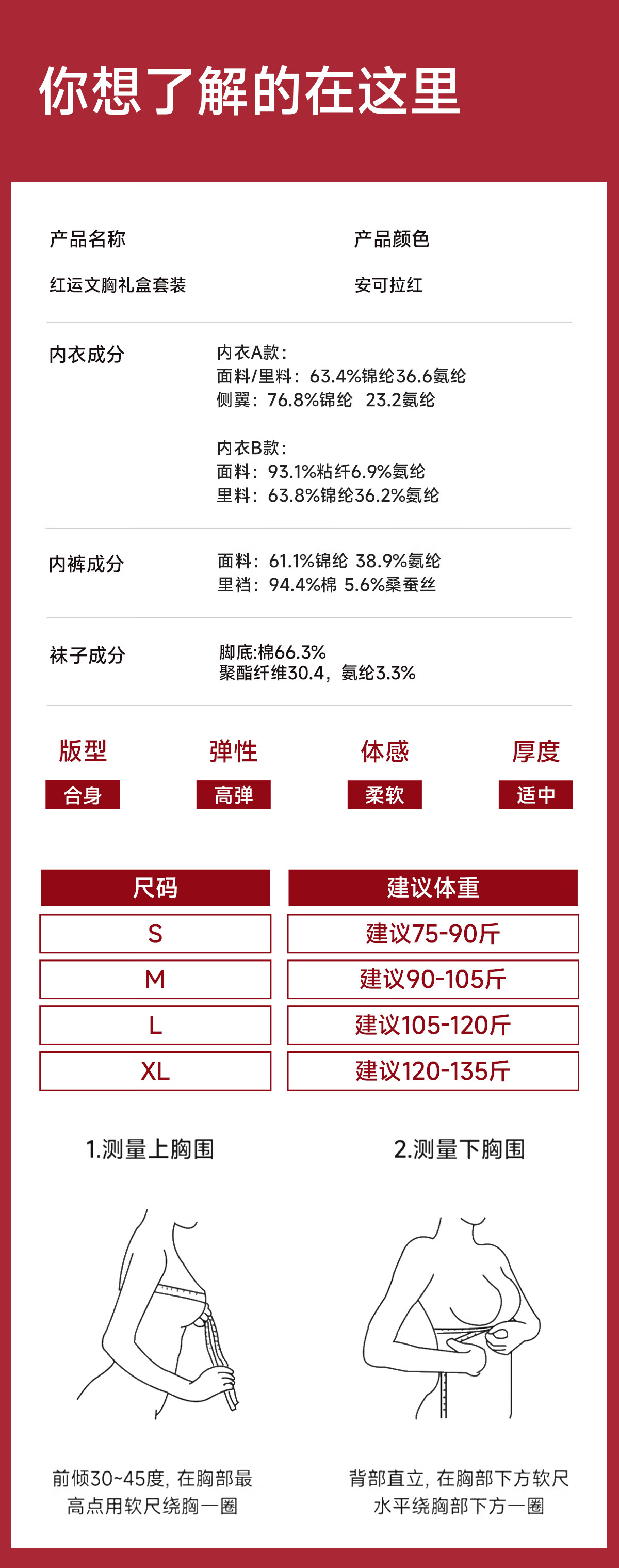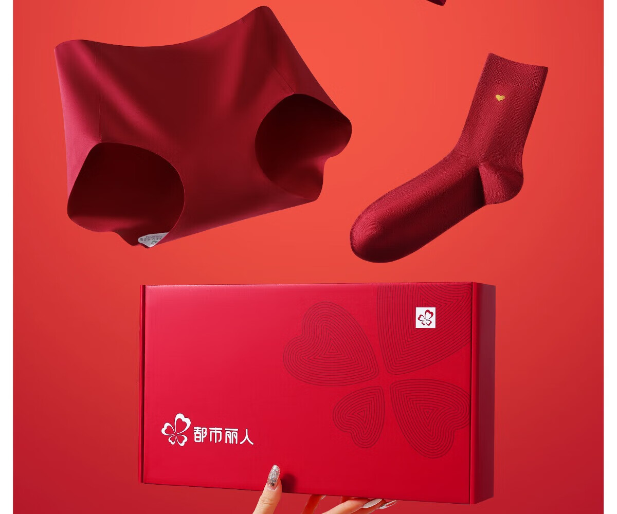 都市丽人本命年内衣女聚拢小胸红色结婚新娘嫁娶无痕文胸套装 【A款】本命年文胸+内裤+袜子+礼盒 M 【建议90-105斤】