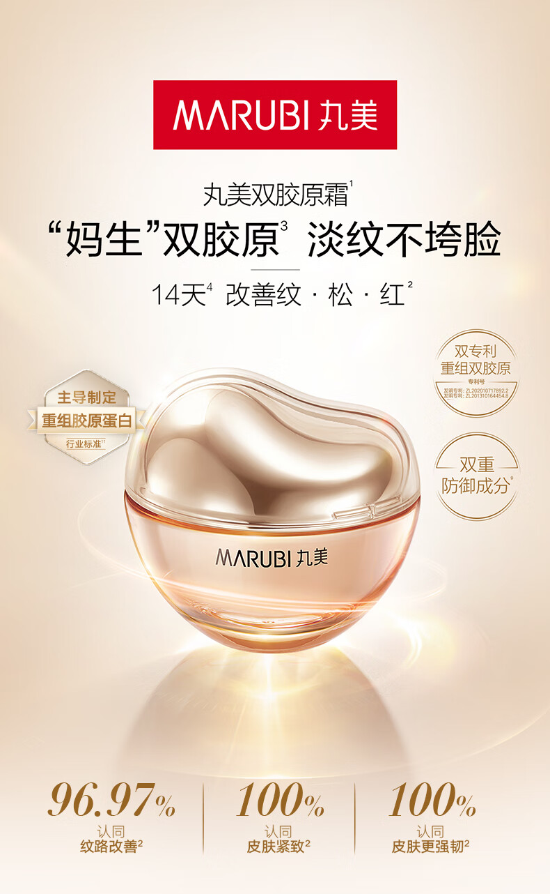 丸美双胶原小金针面霜重组胶原白紧致抗皱淡纹补水保湿面霜试用 双胶原面霜15g*2