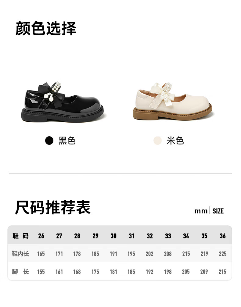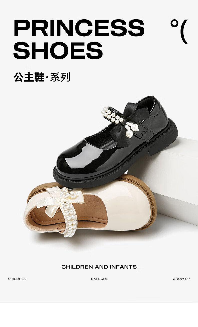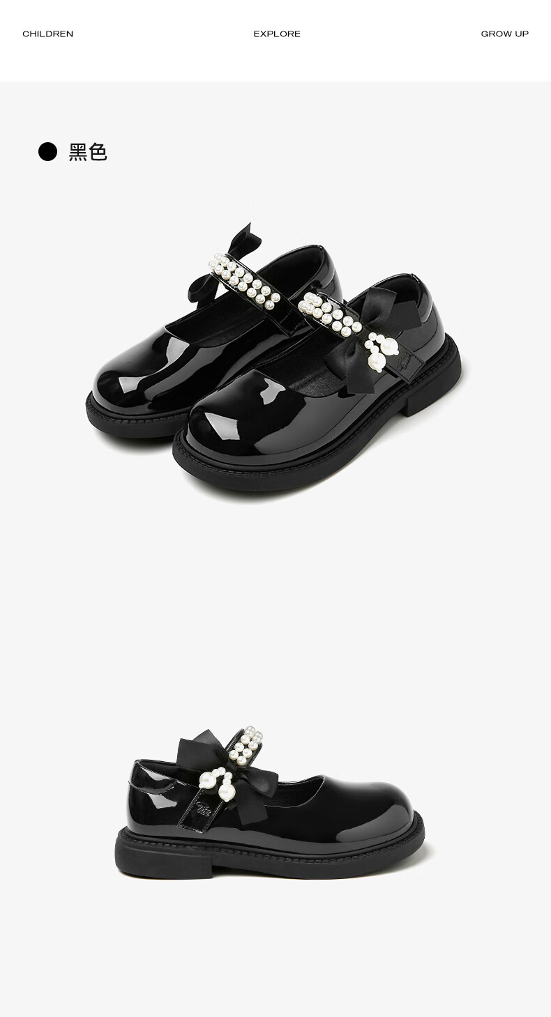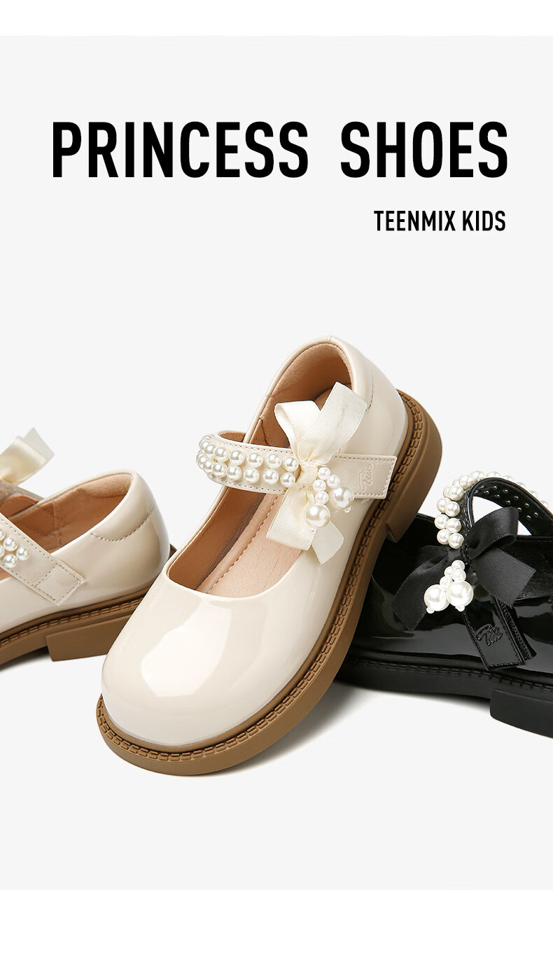 天美意天美意儿童2025秋季新款女童中大童软底皮鞋女孩时尚百搭公主单鞋 黑色 30