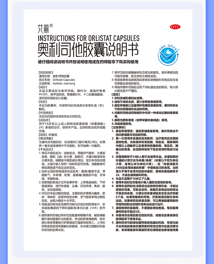[艾丽] 奥利司他胶囊 120mg*21粒/盒减肥药减脂减重男女肥胖包邮国药准字OTC 【3盒7粒】共21粒【活动特价】
