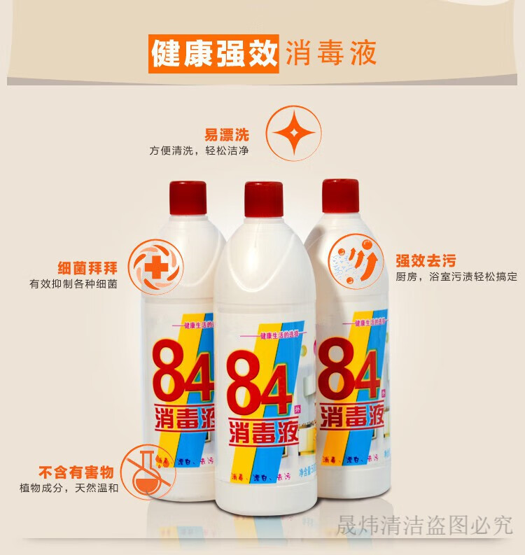 健百氏(KENALS)84消毒液水防护500g衣物漂白杀菌洁厕马桶去污宾馆学校医院 10瓶家庭装
