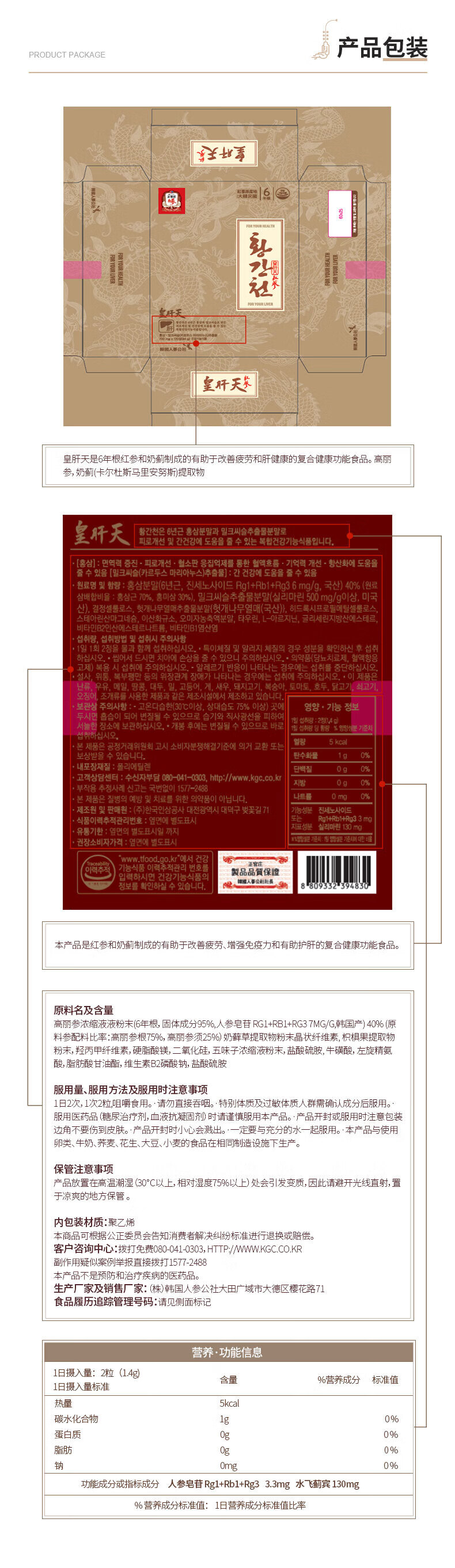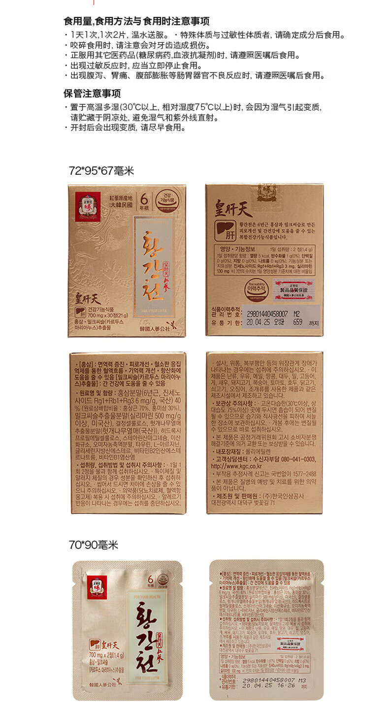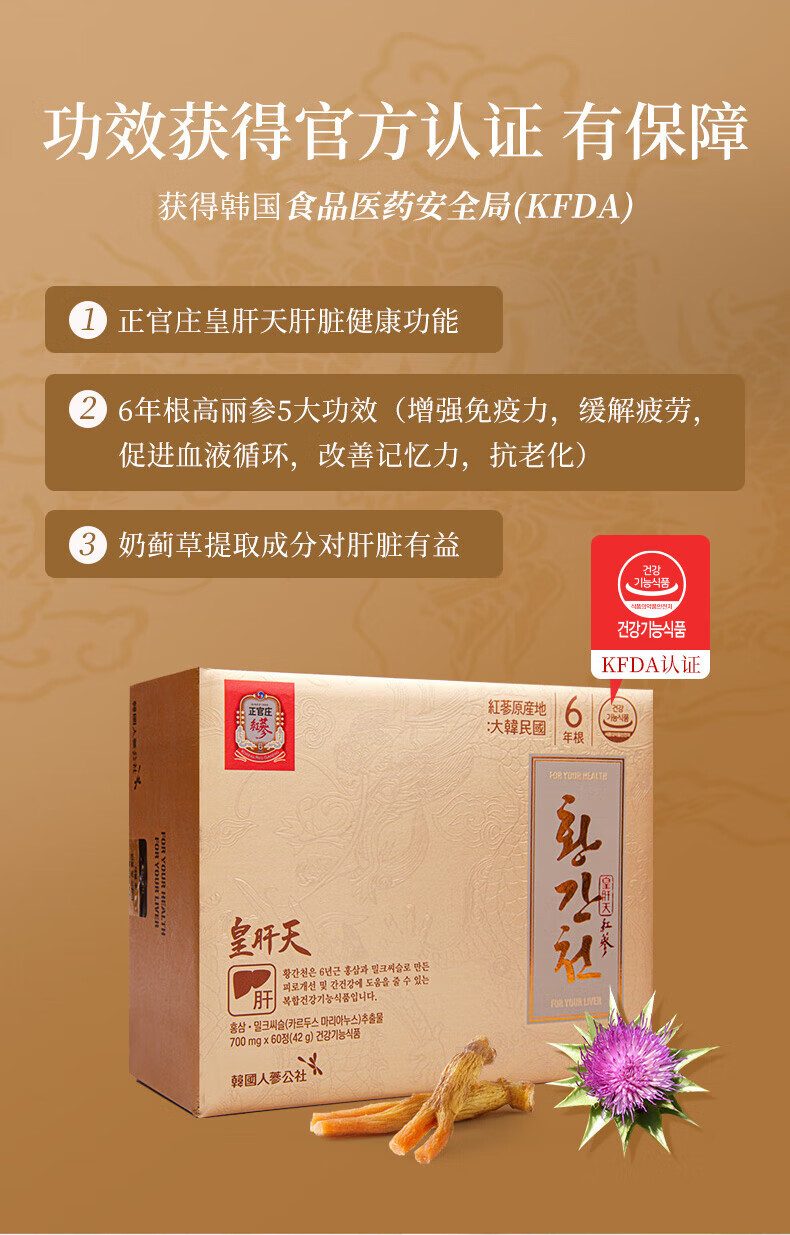 正官庄6年根高丽参礼盒人参奶蓟草护肝片皇肝天120粒熬夜圣诞节补品 护肝片 120粒*1盒