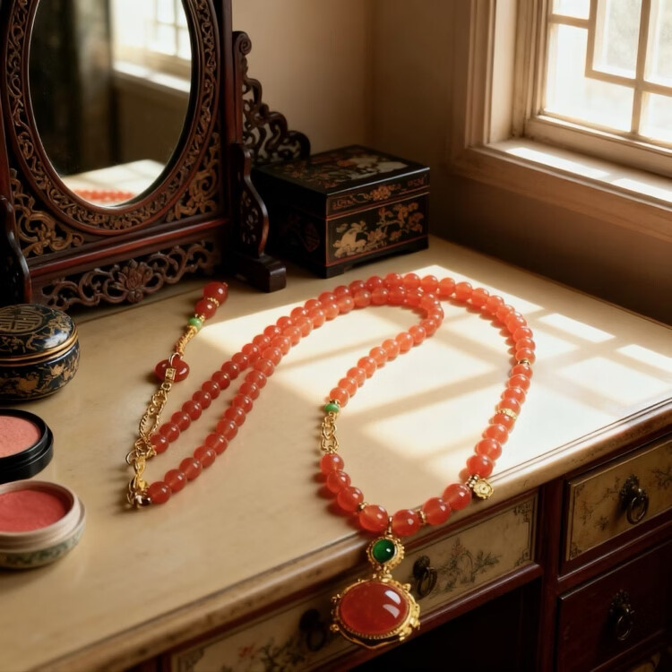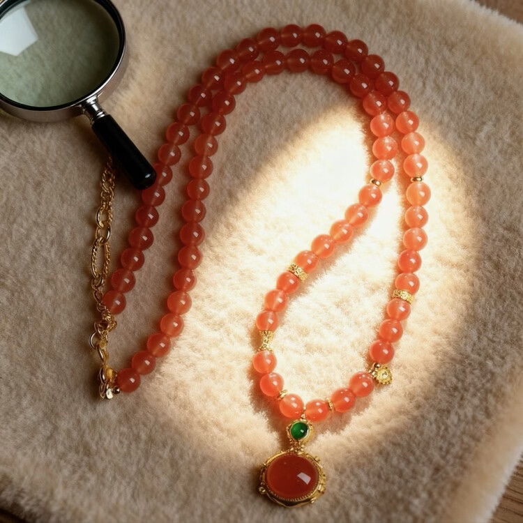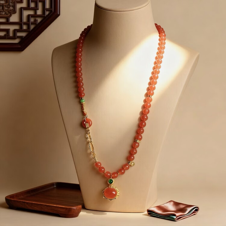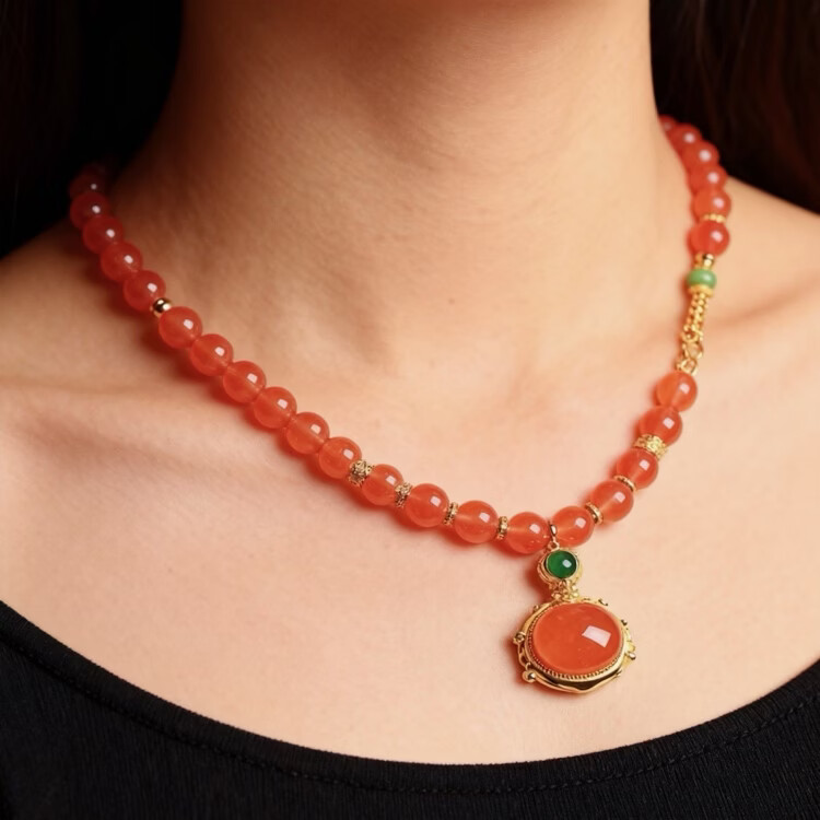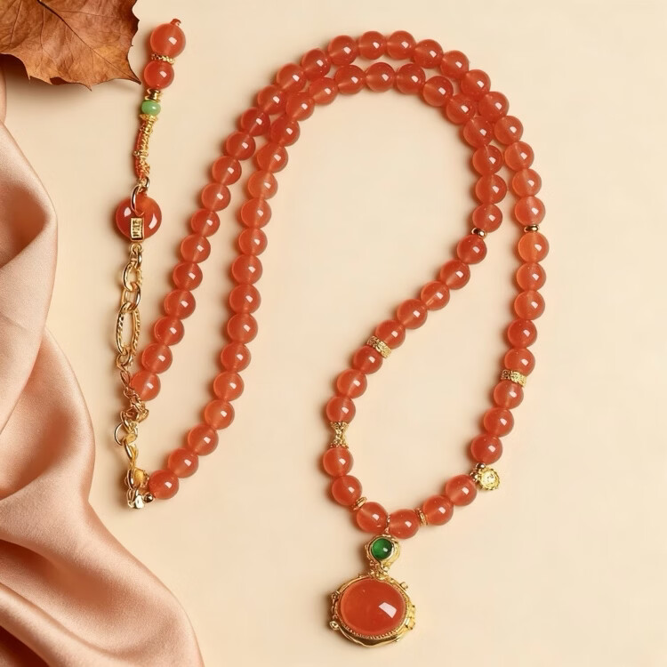 新年礼物送妈妈手串本命年礼物满肉南红串珠女翡翠银项链