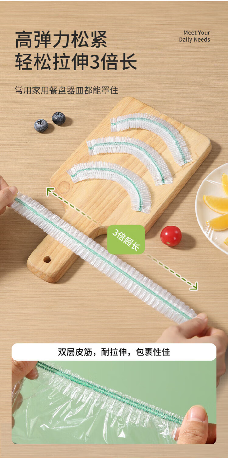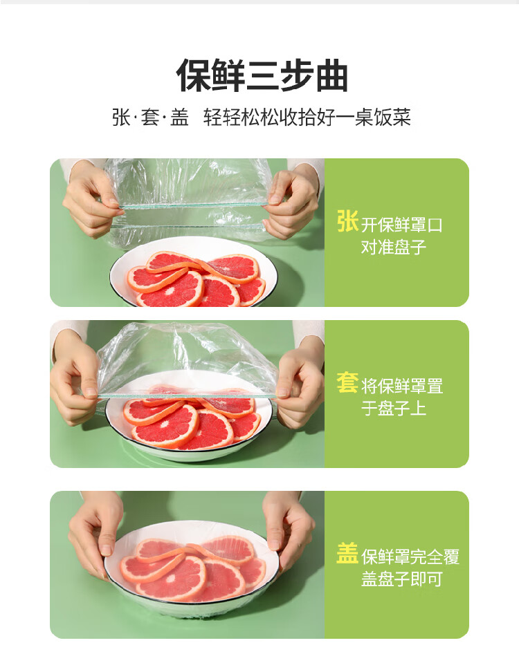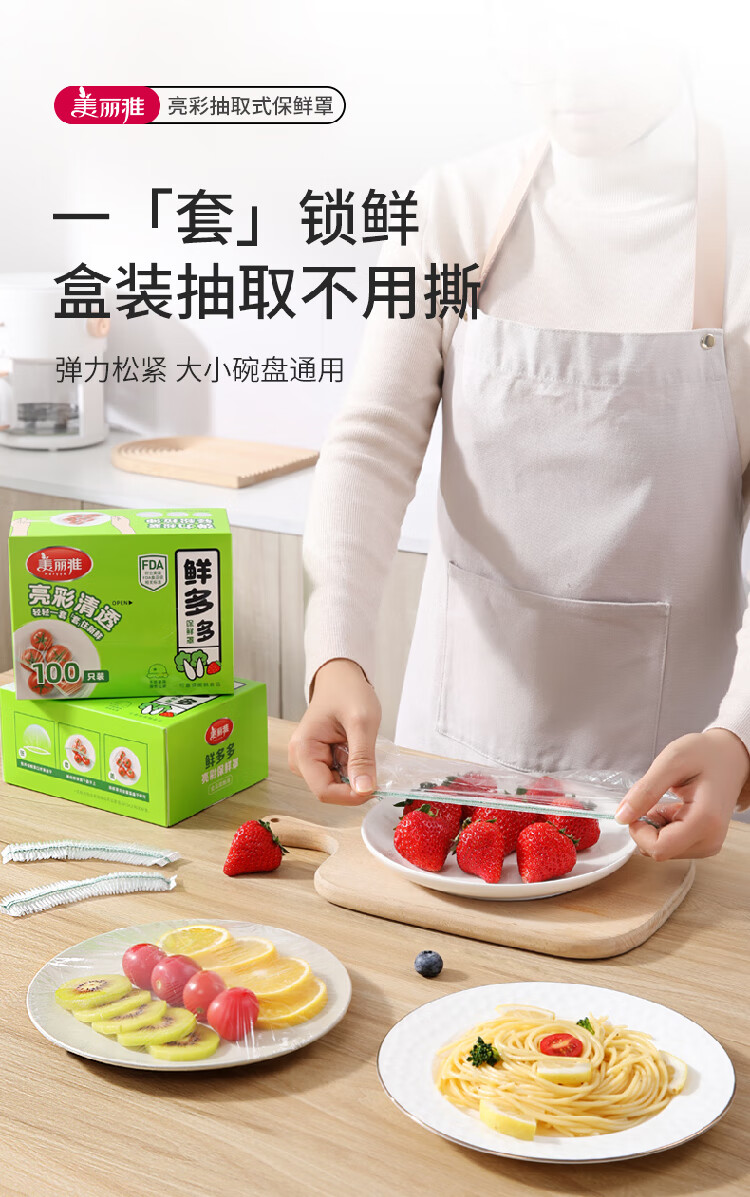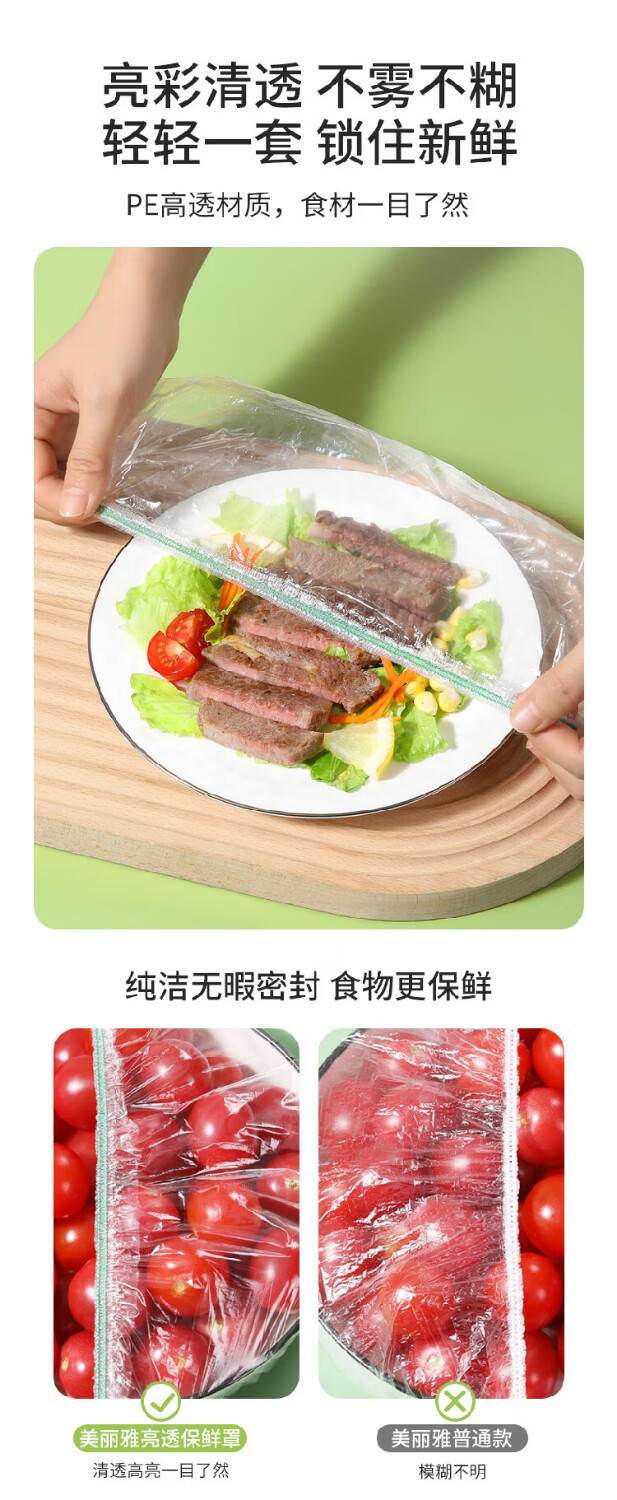 美丽雅一次性食品保鲜罩剩菜家用保鲜膜耐高温厨房食品级保鲜膜套 盒装100只