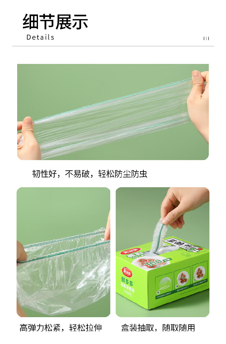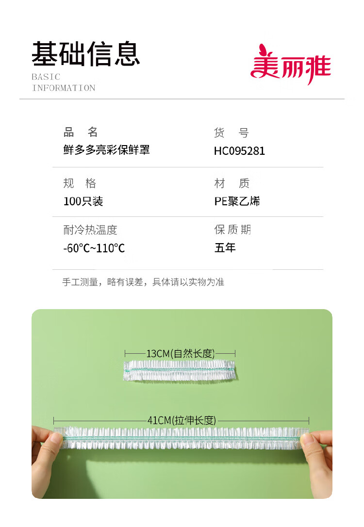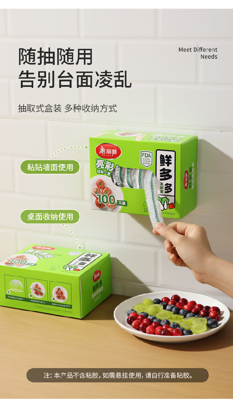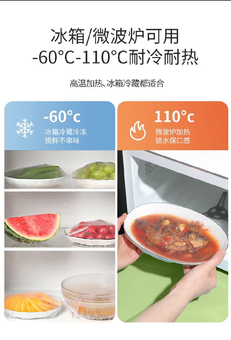 美丽雅一次性食品保鲜罩剩菜家用保鲜膜耐高温厨房食品级保鲜膜套 盒装100只