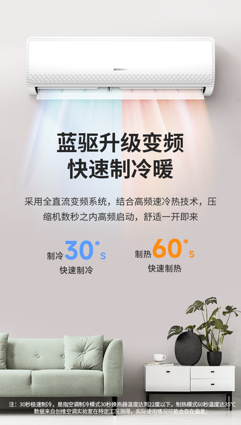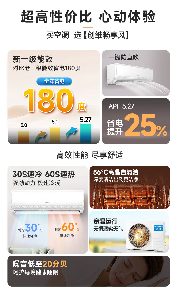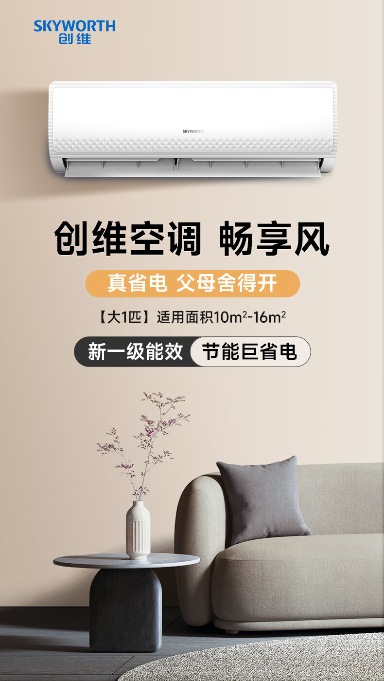 创维空调大1匹畅享风超省电新一级能效 国家补贴变频冷暖壁挂式巨省电挂机以旧换新KFR-26GW/V3GB1B-N1