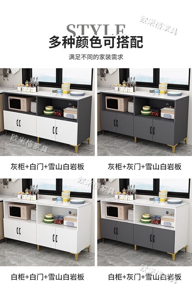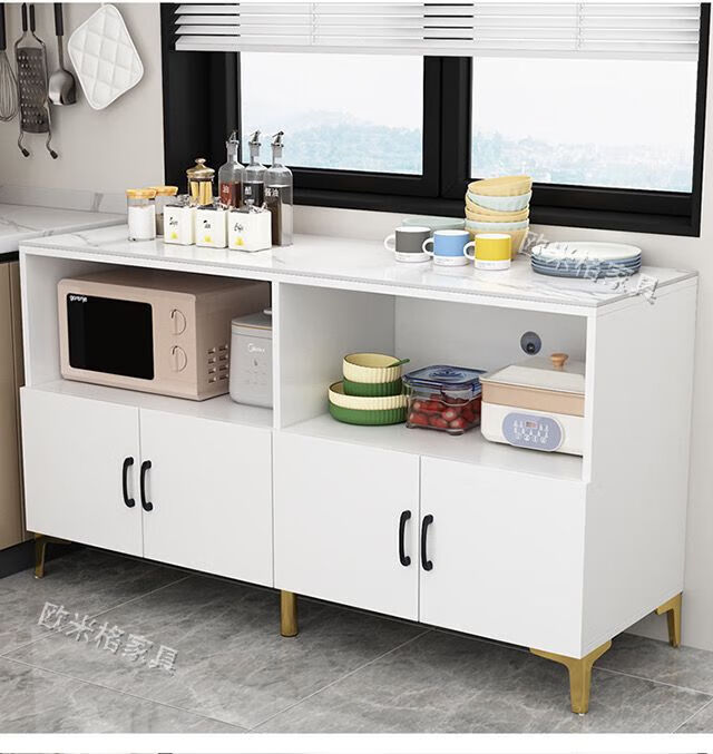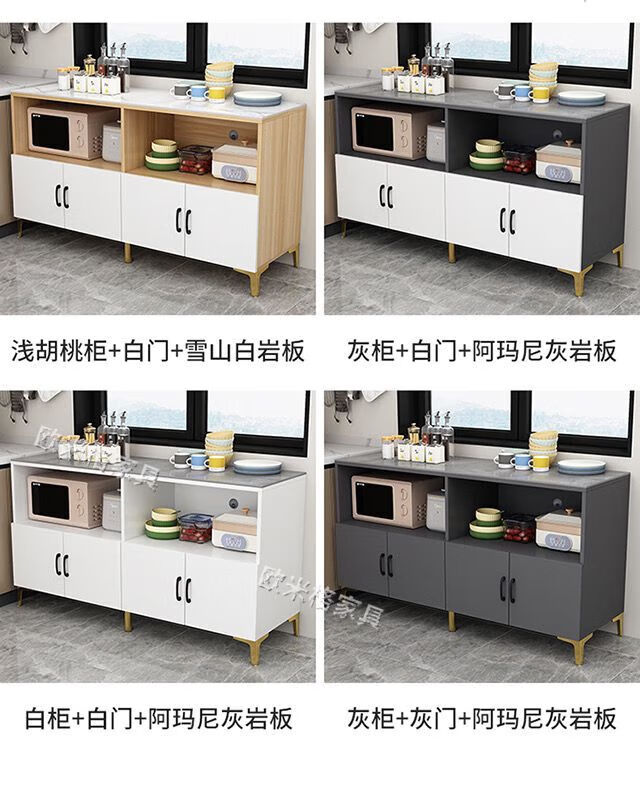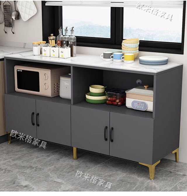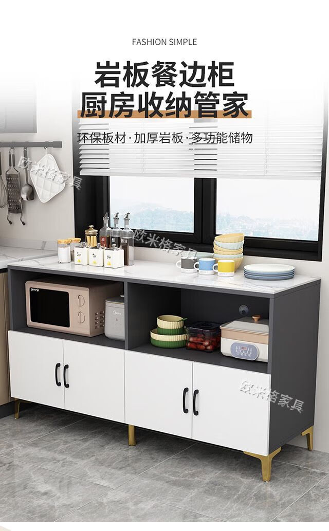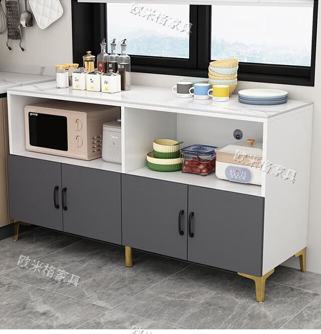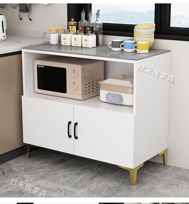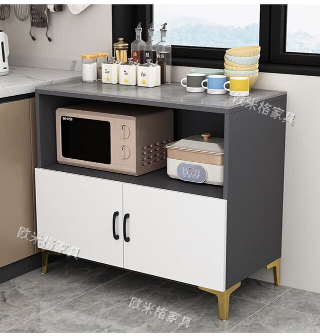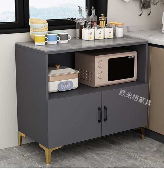倘然之家厨房置物架微波炉收纳岩板多功能落地切菜多层橱柜烤箱餐边储物柜 带货上门【自己安装】 长60宽30高80