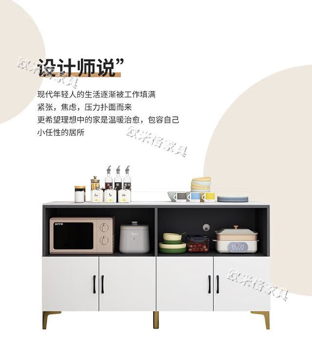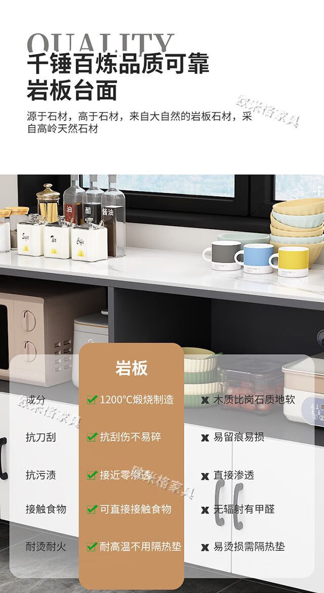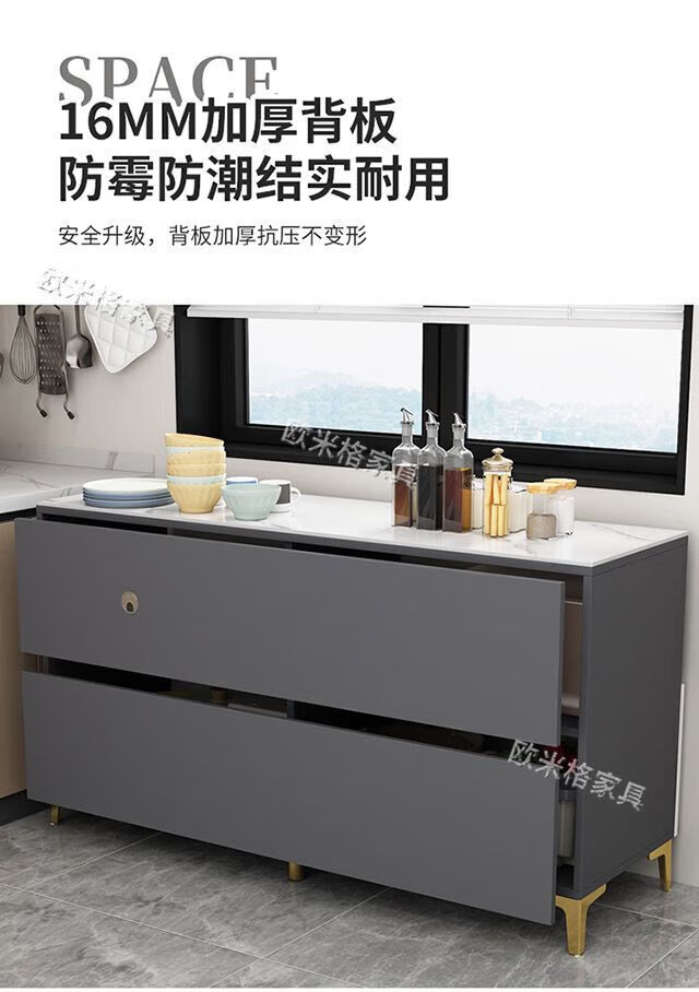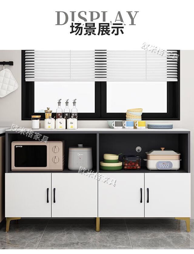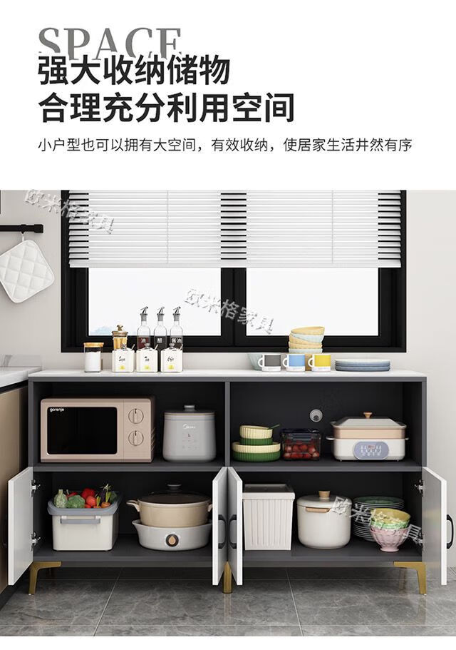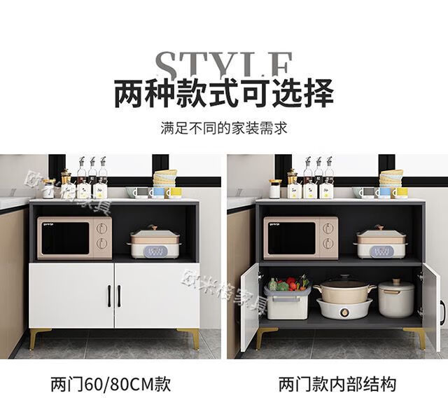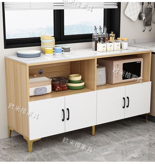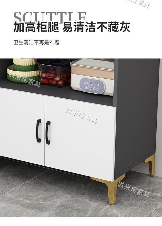 倘然之家厨房置物架微波炉收纳岩板多功能落地切菜多层橱柜烤箱餐边储物柜 带货上门【自己安装】 长60宽30高80