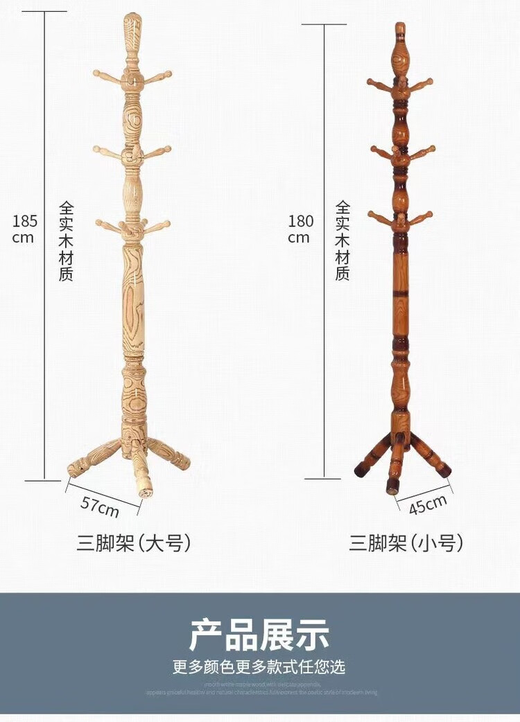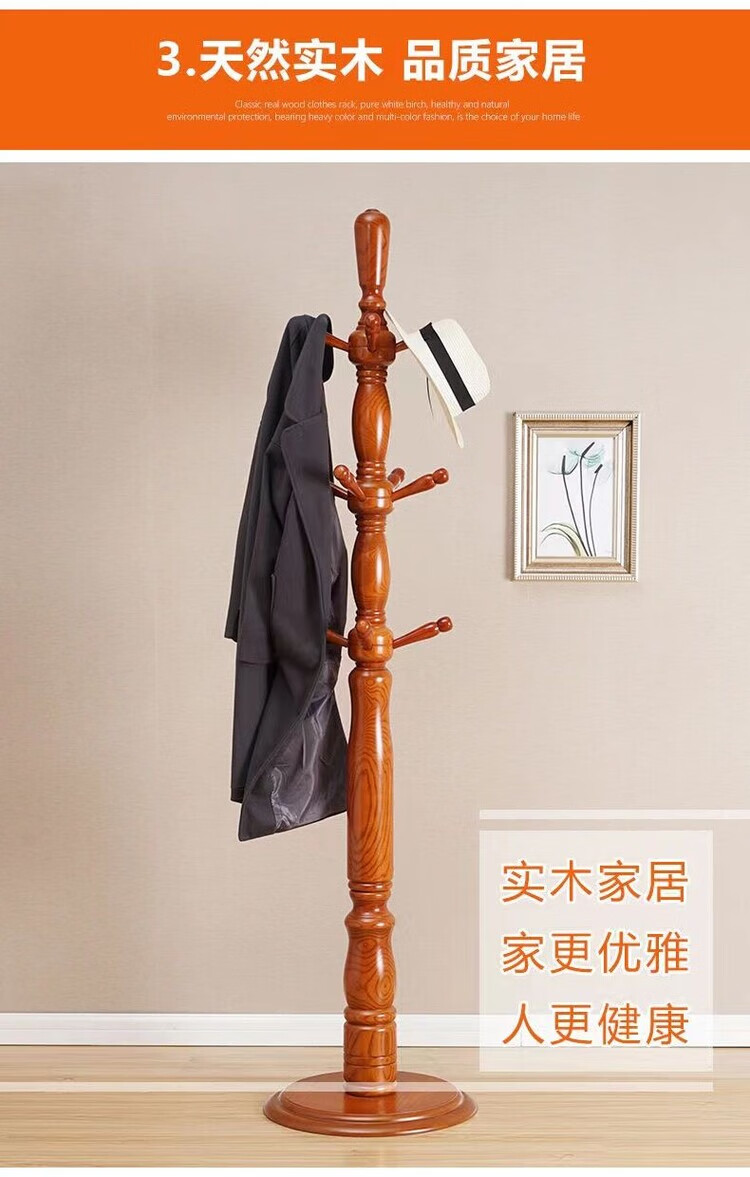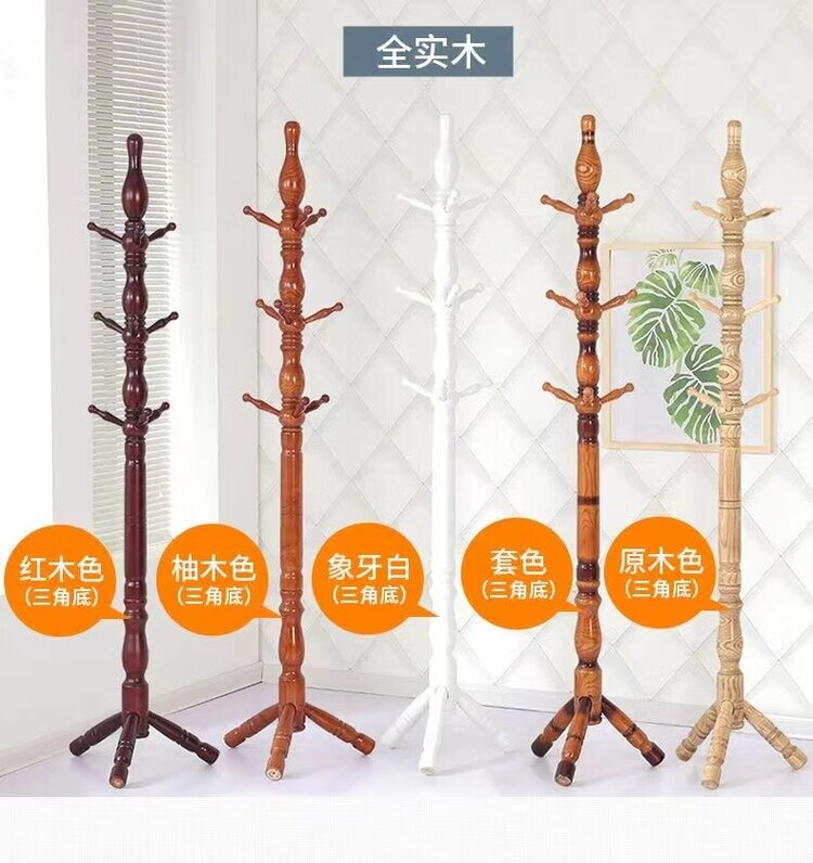 弘星隆衣架子衣帽架落地实木落地式家用卧室客厅衣架落地立式现代挂衣架 小款【咖啡色-三腿】