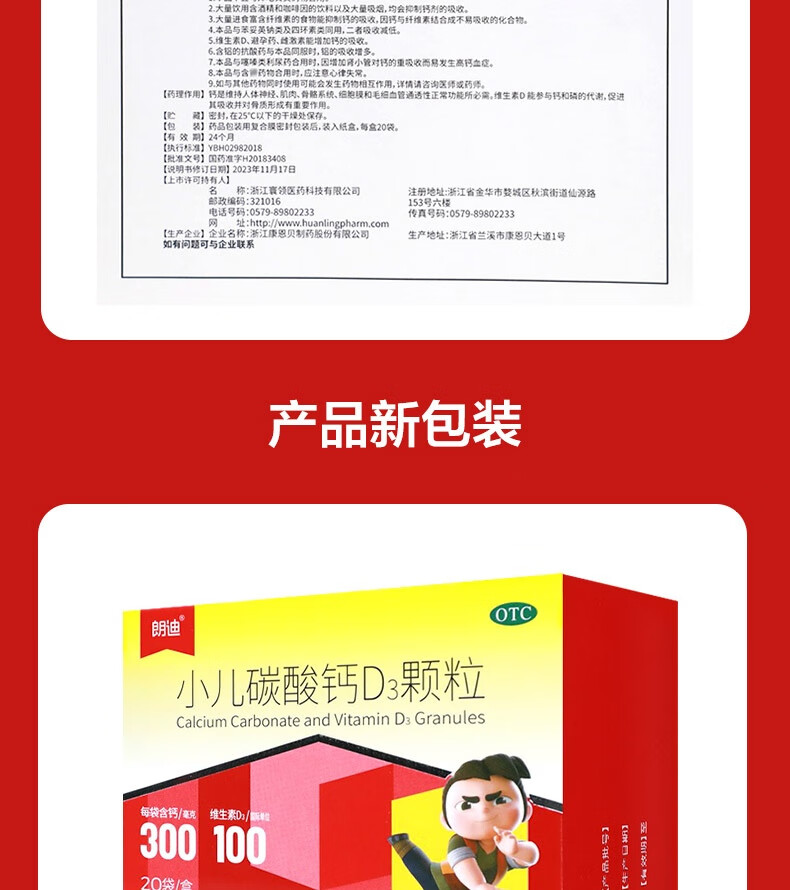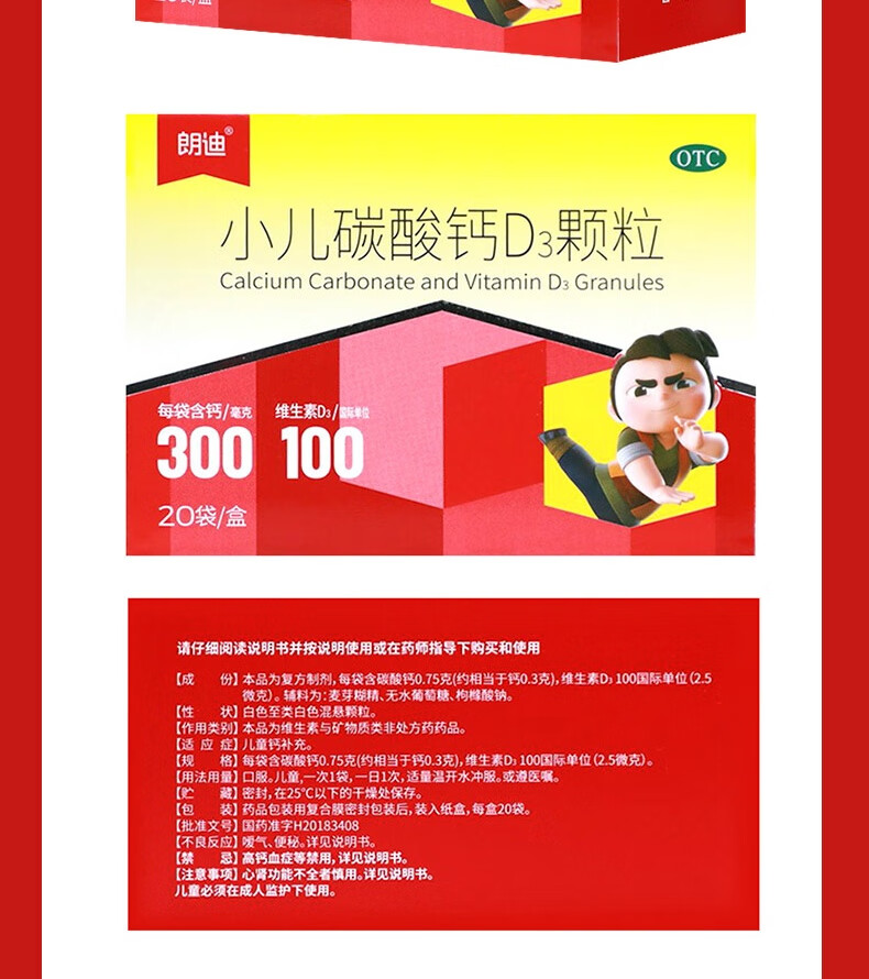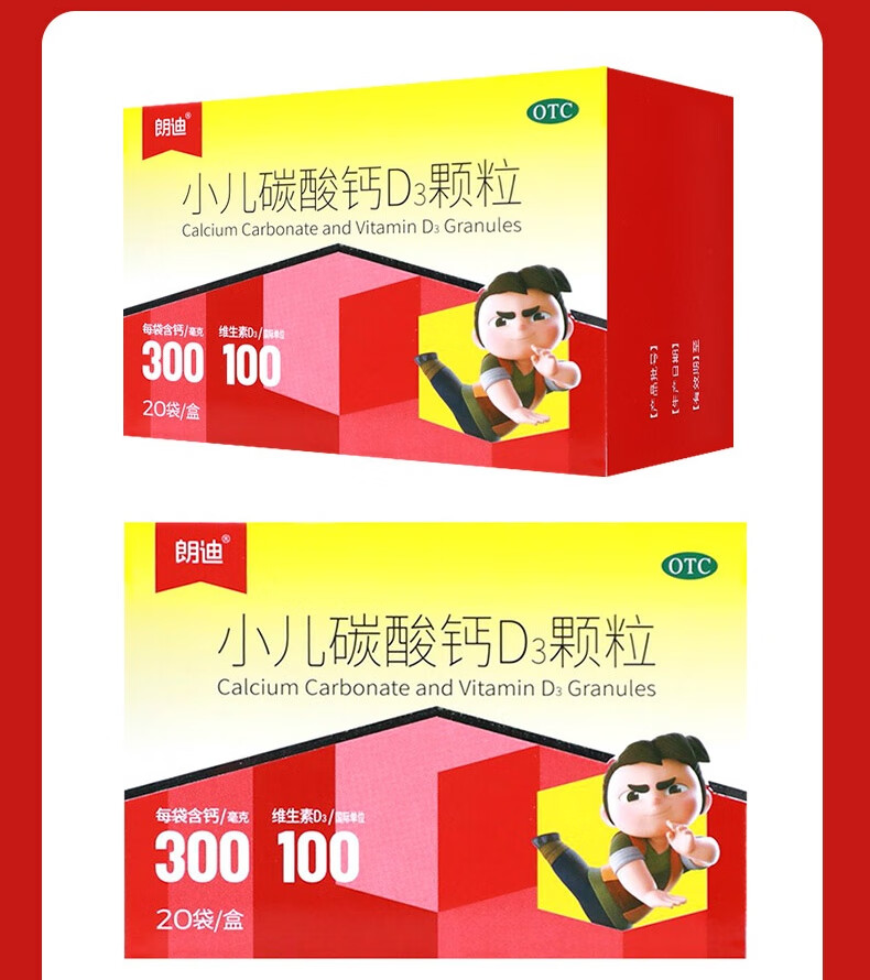 朗迪 小儿碳酸钙D3颗粒 20袋/盒 儿童钙补充专用钙 碳酸钙维生素d3钙 碳酸钙颗粒 专为0-7岁成长期补钙