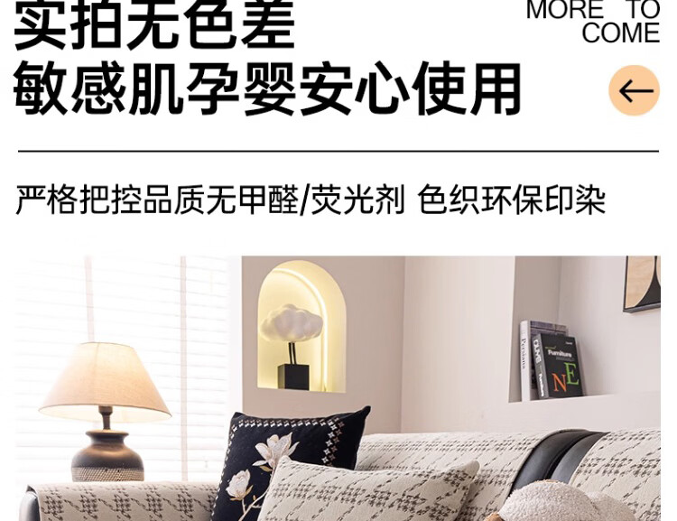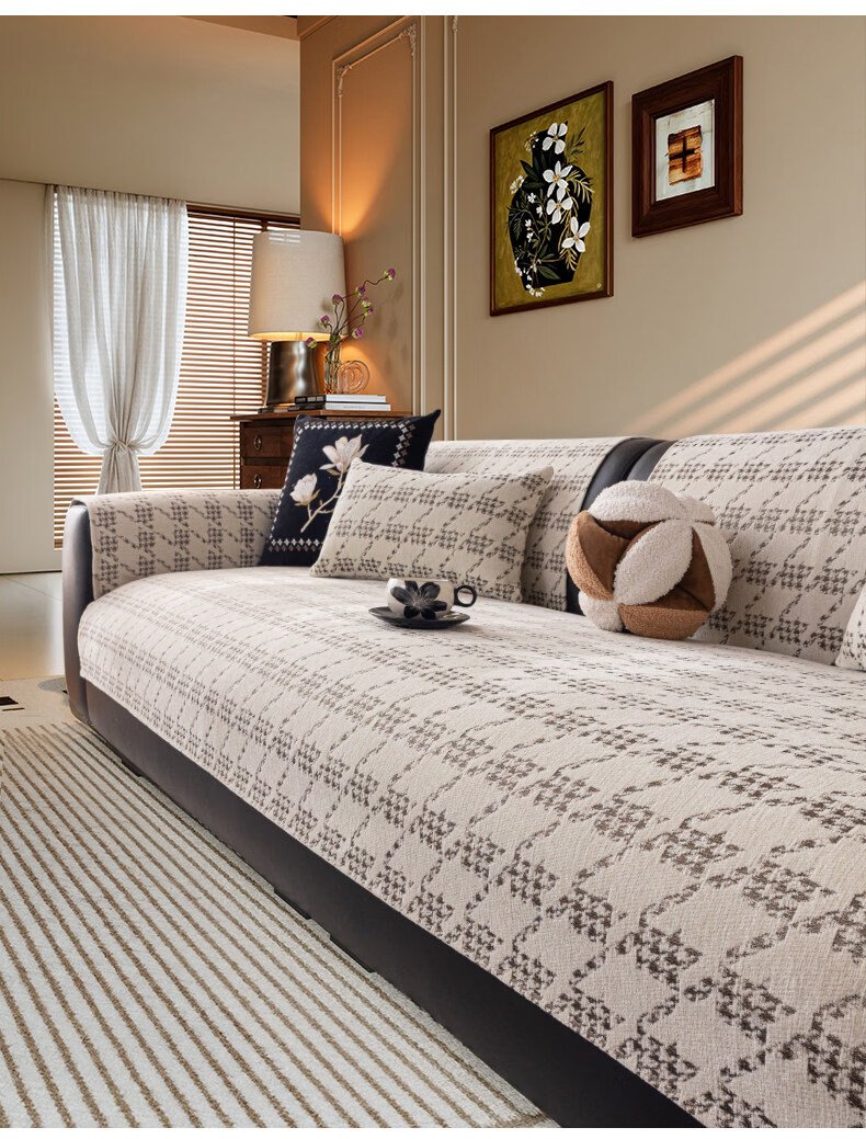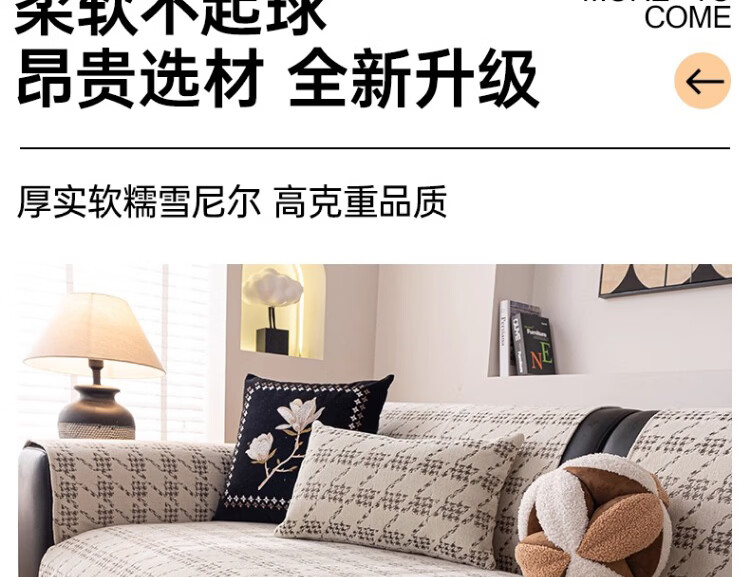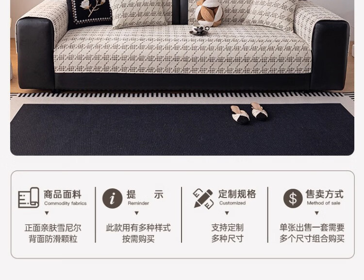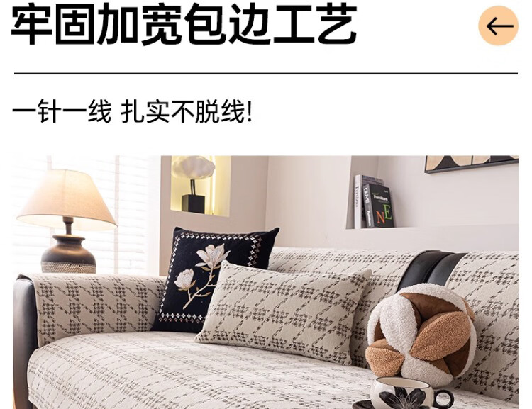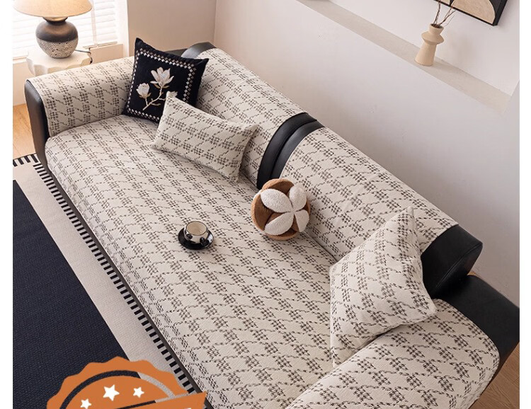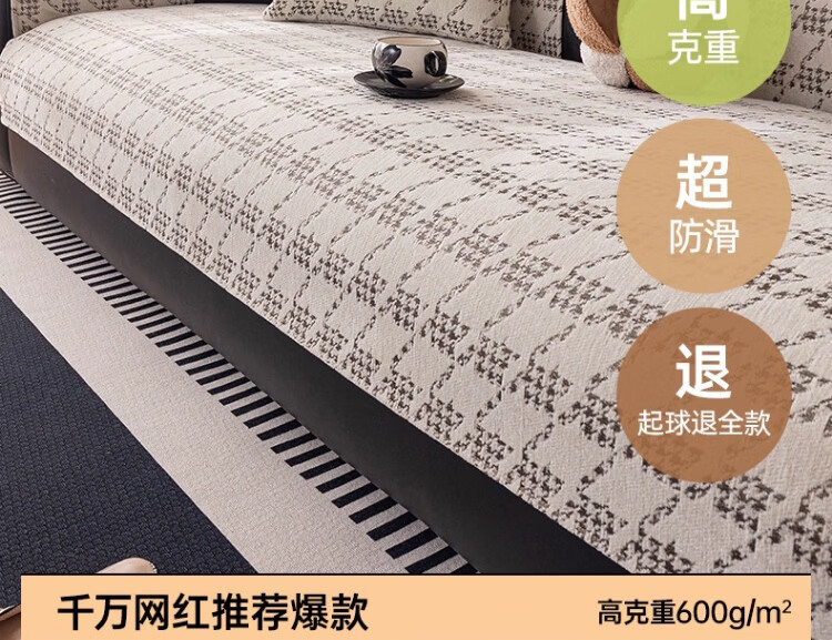 无印良品劳伦斯沙发垫子四季通用真皮沙发专用坐垫防滑沙发座垫柔软沙发垫 雾格-白色【高克重雪尼尔 云柔触感】 70*180cm(适用于座位长度170-200cm沙发)