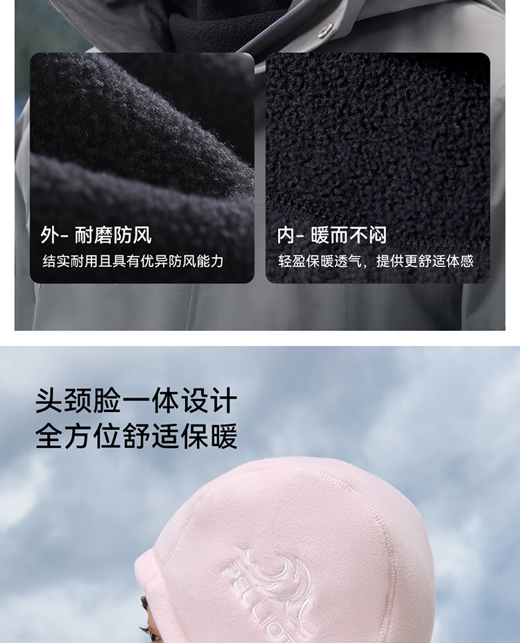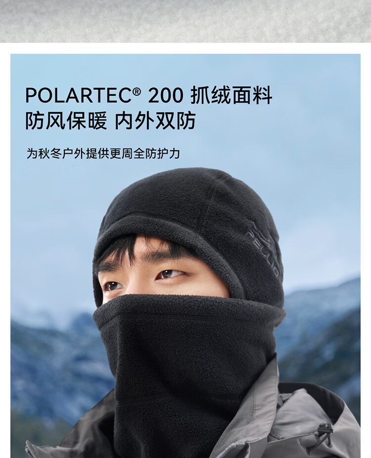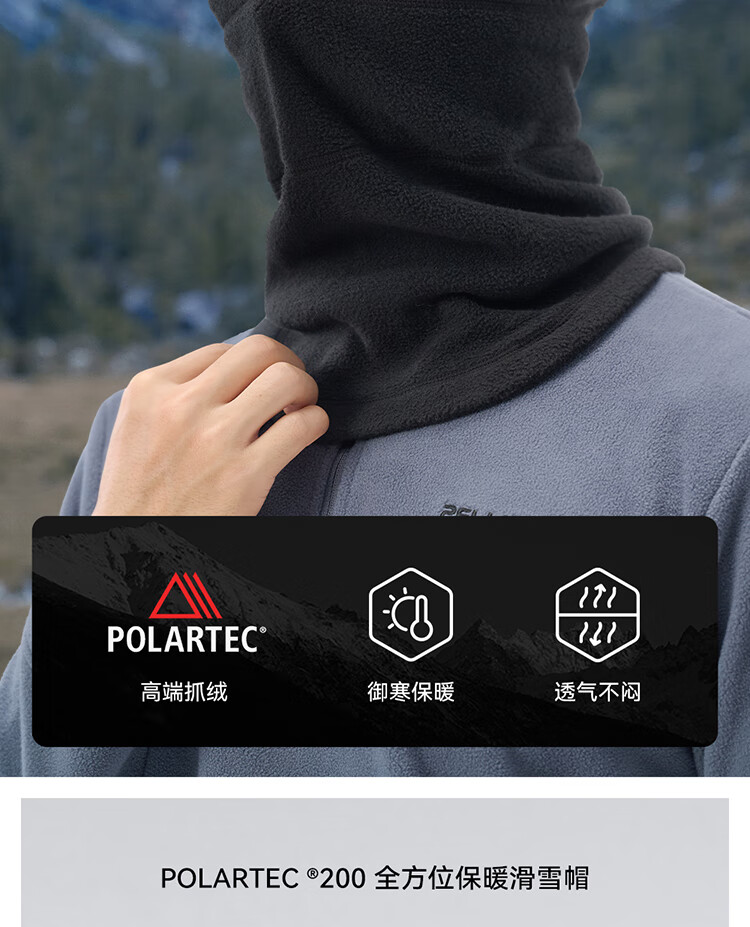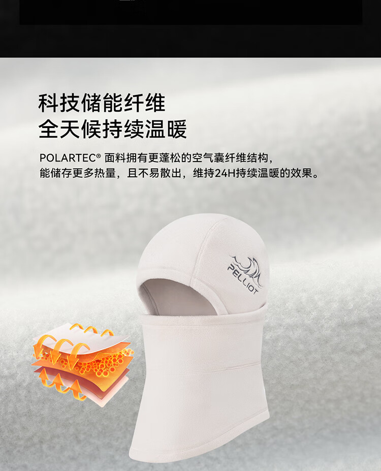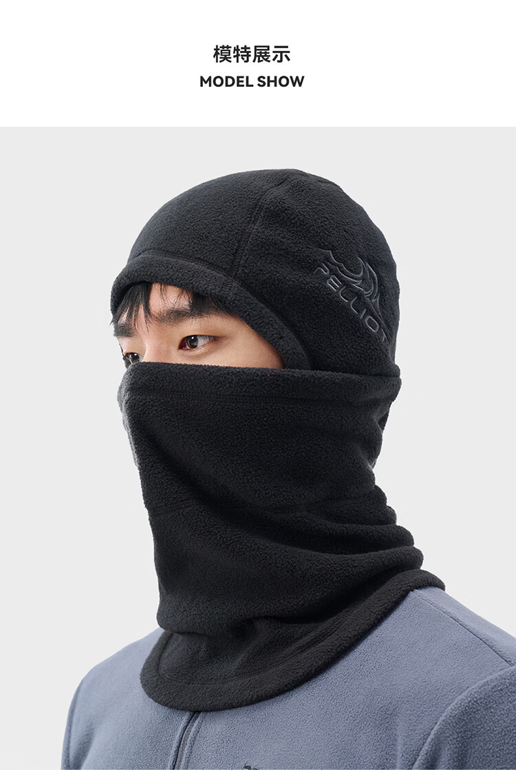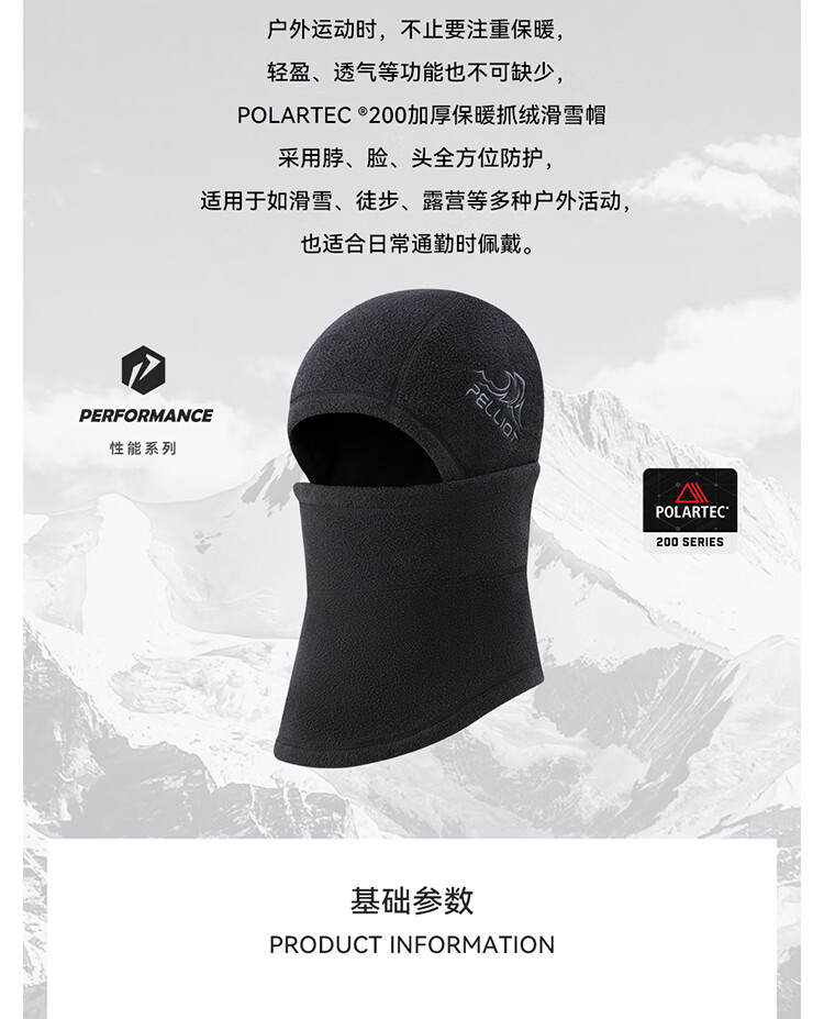 伯希和(Pelliot)滑雪面罩户外抓绒帽冬季帽子Polartec200登山防寒165034016黑色