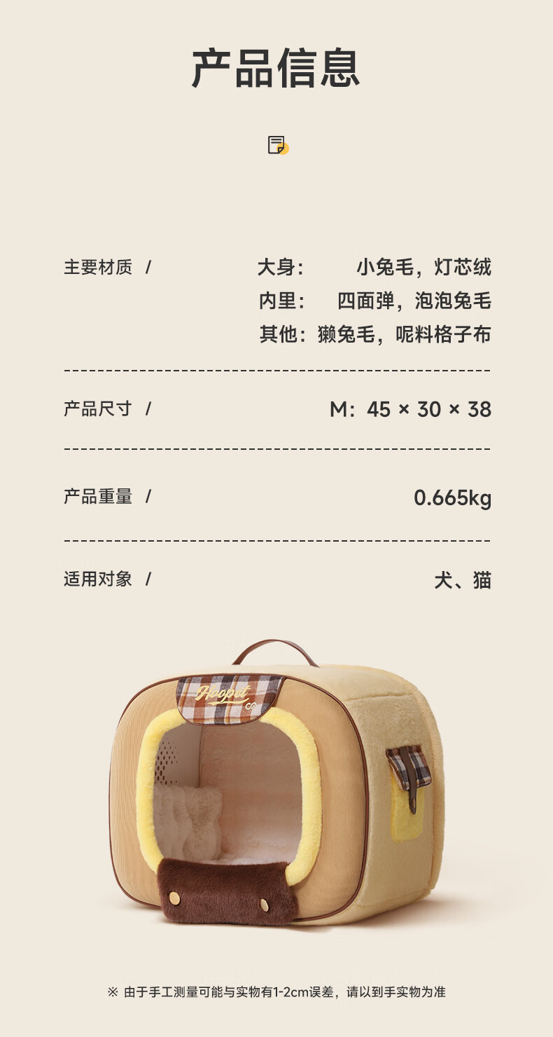 华元宠具(hoopet)海绵宝宝不塌房宠物窝3D骨壳支撑狗狗睡觉窝大号安全感可拆洗猫咪
