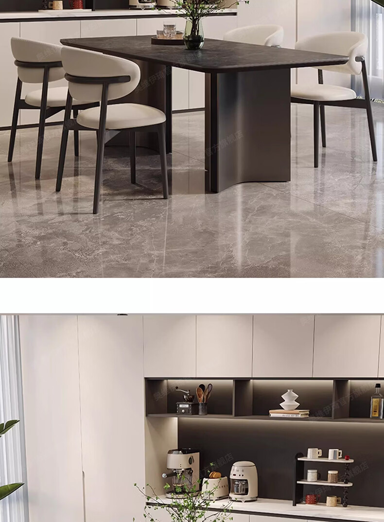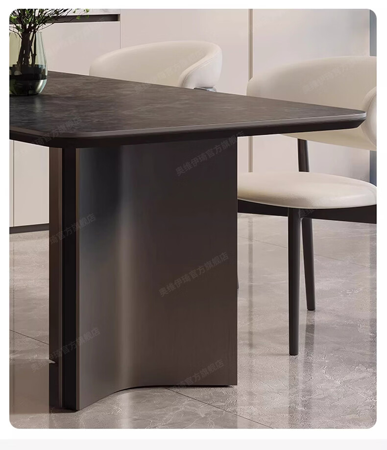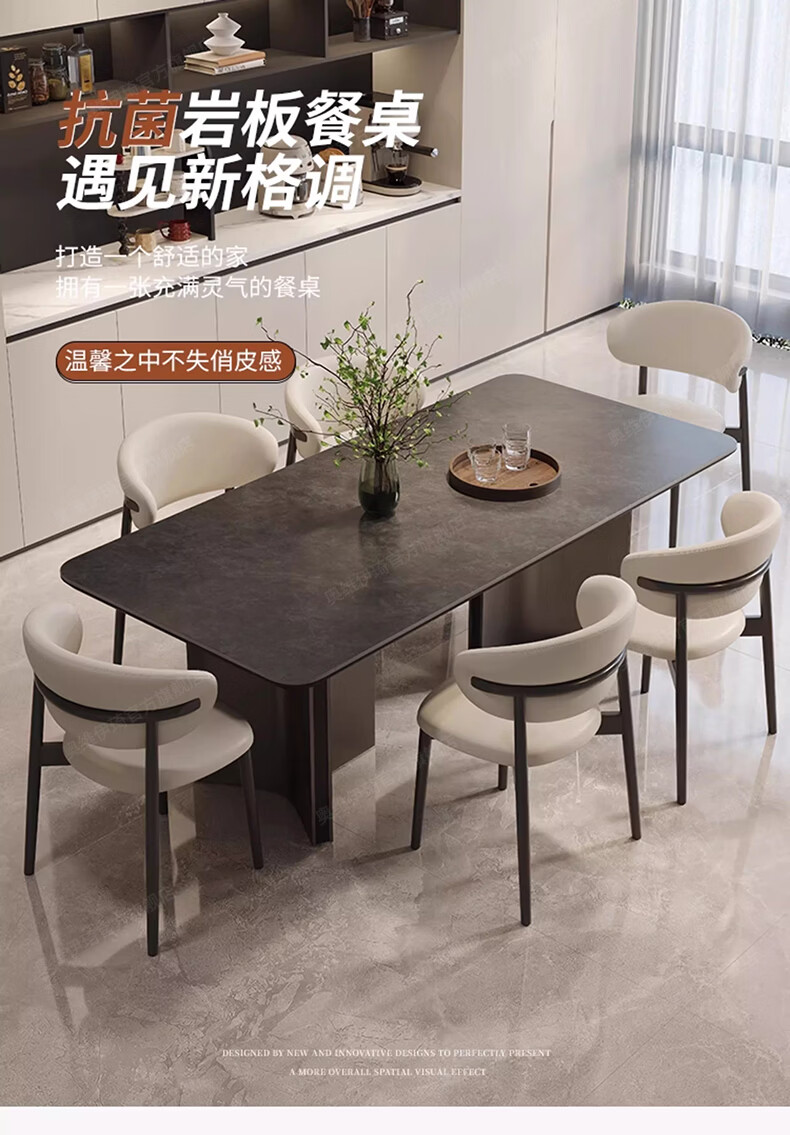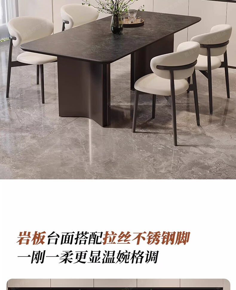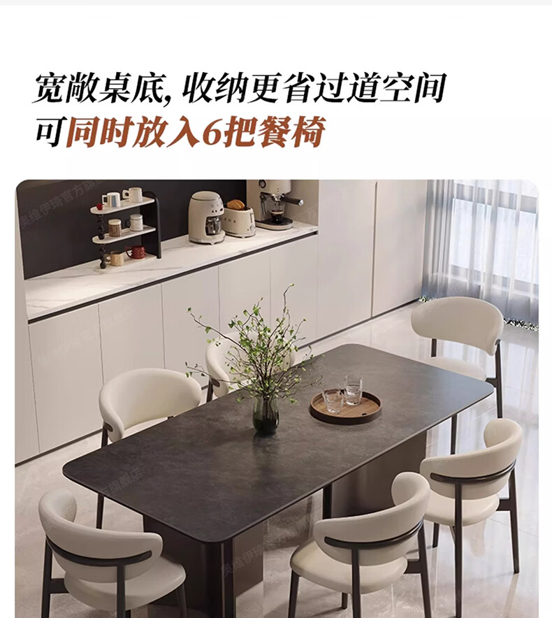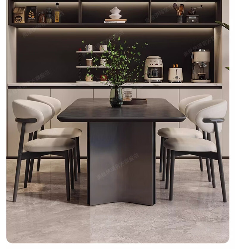 奥维伊琦意式现代简约岩板餐桌家用小户型长方形轻奢餐桌椅饭桌子 主图热销款:【加厚不锈钢脚】奔驰台餐桌+4张羊角椅 130x70x75cm【广东佛山发货/正品保证】