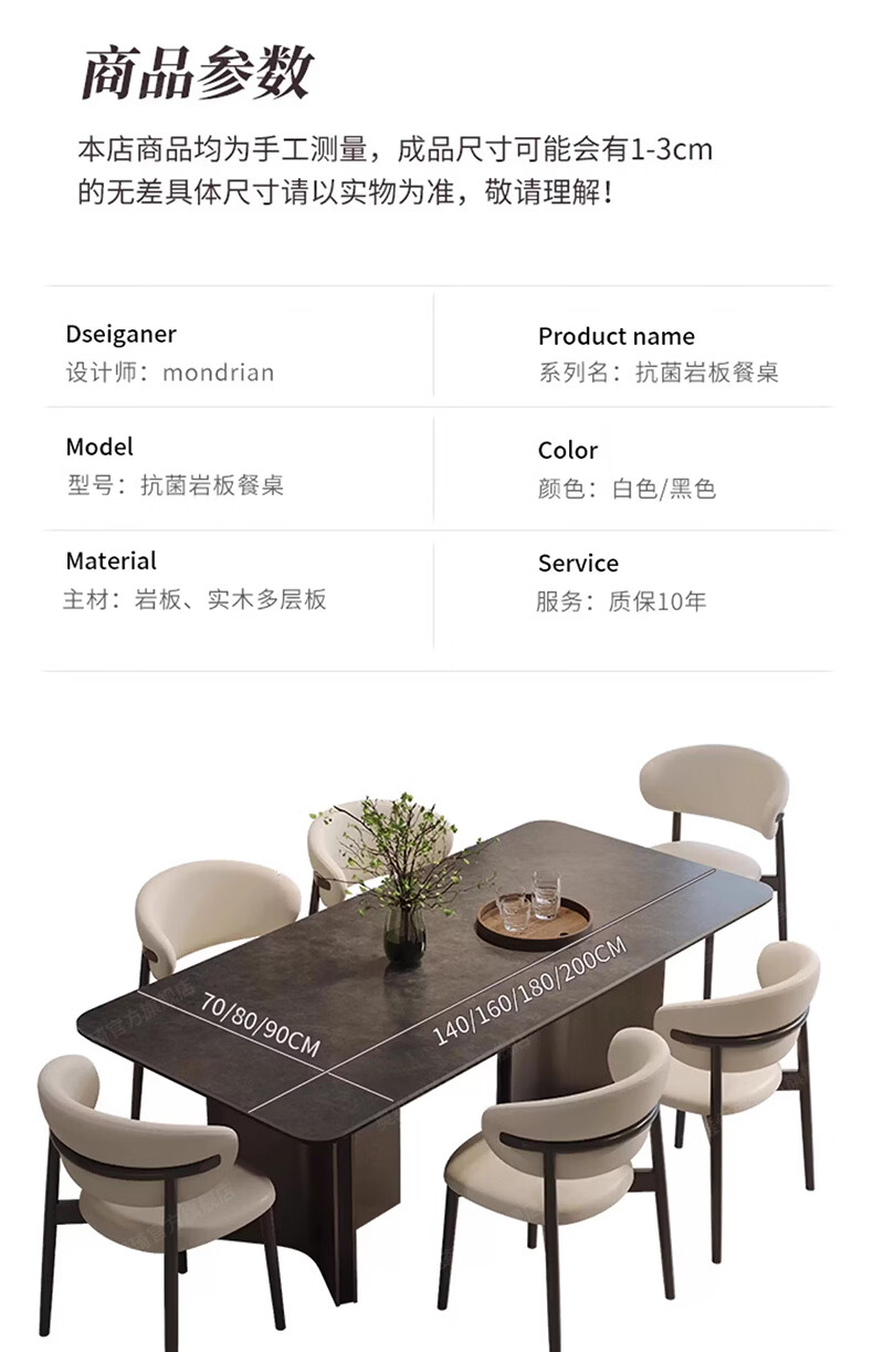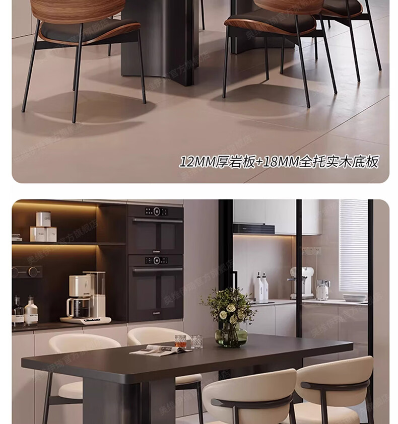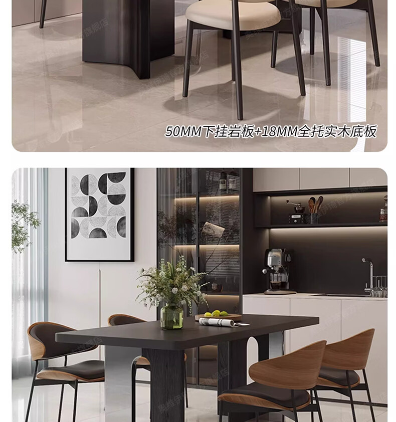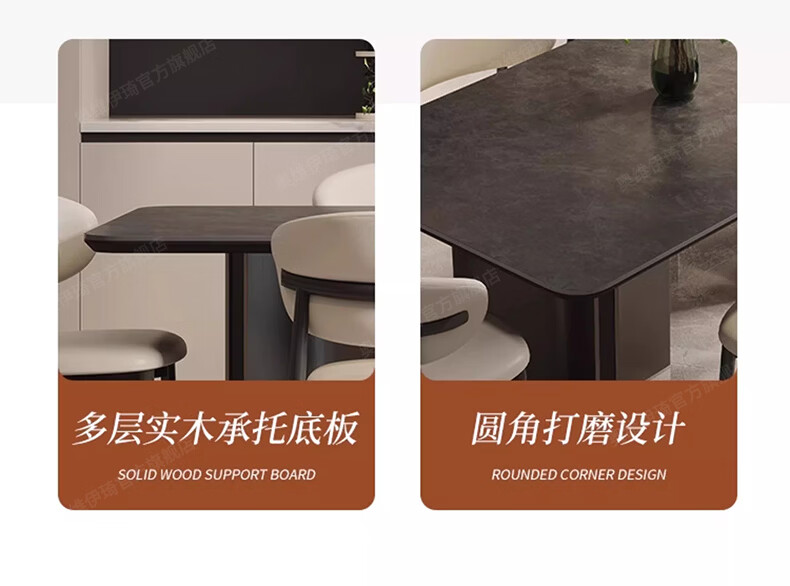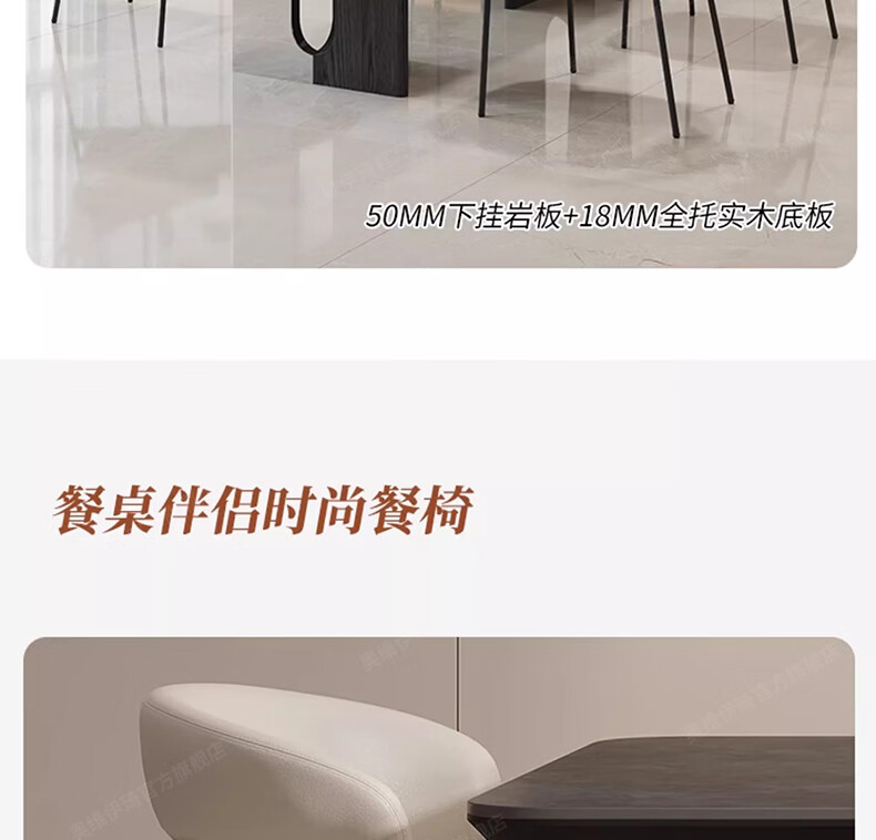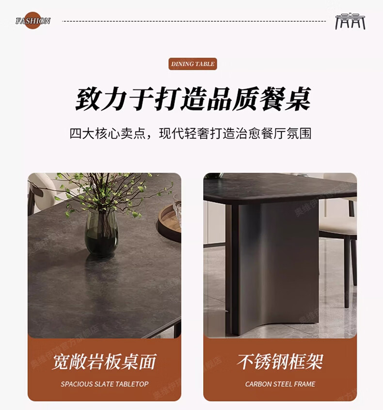 奥维伊琦意式现代简约岩板餐桌家用小户型长方形轻奢餐桌椅饭桌子 主图热销款:【加厚不锈钢脚】奔驰台餐桌+4张羊角椅 130x70x75cm【广东佛山发货/正品保证】